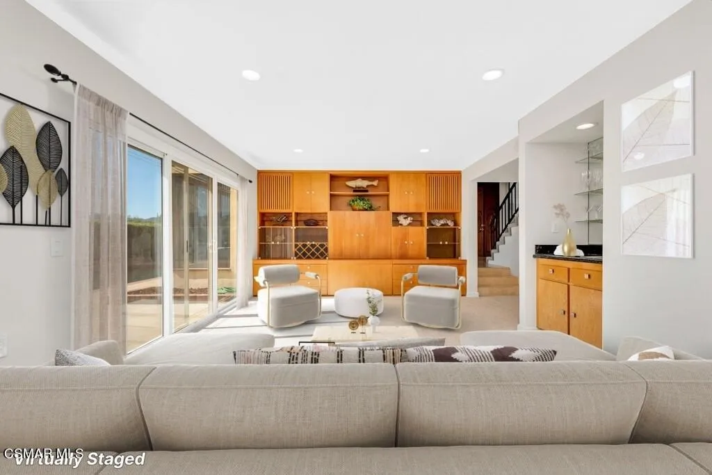 Tucked away on a quiet cul-de-sac in the highly desirable Calabasas Park neighborhood, this light-filled 4-bedroom, 3-bath home offers an exceptional opportunity to enjoy the Calabasas lifestyle.Just moments from Lake Calabasas with private lake access and close to Calabasas Commons, the location is both convenient and inspiring.A dramatic entry with soaring ceilings and striking floor-to-ceiling windows creates an immediate sense of openness, filling the home with natural light. The versatile floor plan includes one bedroom downstairs, three bedrooms upstairs, and a spacious bonus room that opens to the backyard--ideal for entertaining, relaxing, or creating the space that fits your lifestyle.This home has recessed lighting and newer carpet and paint throughout and a new HVAC unit all done in 2024. Updated bathrooms offer a fresh, modern touch, while still leaving room to bring your own vision to other areas of the home.Step outside to a private backyard designed for enjoying Southern California living, with multiple seating areas for gathering, dining al fresco, or unwinding in a peaceful setting. The heated pool and spa invite year-round enjoyment--whether it's a sunny afternoon swim or a quiet evening under the stars.Located within the award-winning Las Virgenes School District and just minutes from shopping, dining, and scenic walking paths around the lake. Nearby amenities include the Calabasas Tennis & Swim Center and the Calabasas Pickleball Club. The quaintness of Old Town Calabasas with it's Saturday Farmers Market and social gatherings adds to the charm of this perfect location.This is a rare opportunity to create your next chapter in one of Calabasas' most sought-after lifestyle communities.Property is currently tenant occupied. Photos are previously taken and include virtual staging and enhancements; current condition may vary.