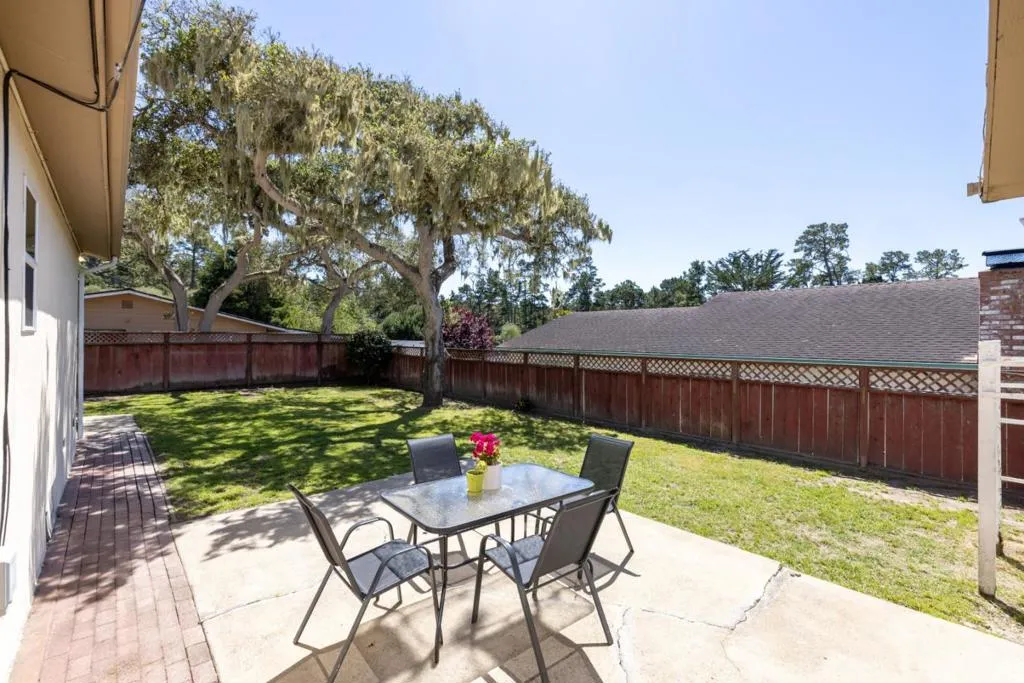 For the first time ever on the market, this welcoming home combines comfortable single-story living with an expansive outdoor setting. Set back from the street with a charming front lawn and mature oak tree, the property invites you in with new luxury vinyl plank flooring and fresh interior paint throughout. The living room is anchored by a cozy fireplace, perfect for relaxed evenings, while the open kitchen features a cheerful garden window that brings in natural light. A bonus den with sliding glass doors extends your living space seamlessly to the outdoors. Three bedrooms, including a primary ensuite, and two full bathrooms provide flexibility for a variety of needs. An attached two-car garage with built-in storage cabinets and laundry area adds everyday convenience. Step outside to the sprawling, oversized backyard with a park-like feel, featuring patios and open space that offer endless possibilities - from play and recreation to peaceful afternoons enjoying the outdoors. A magnificent oak tree anchors the yard, perfect for a hammock or swing, all set against serene views of nearby pine forest. Discover your place in Pacific Grove, just minutes from schools, beaches and parks, where coastal beauty meets everyday comfort in a setting that feels like home from the start.
