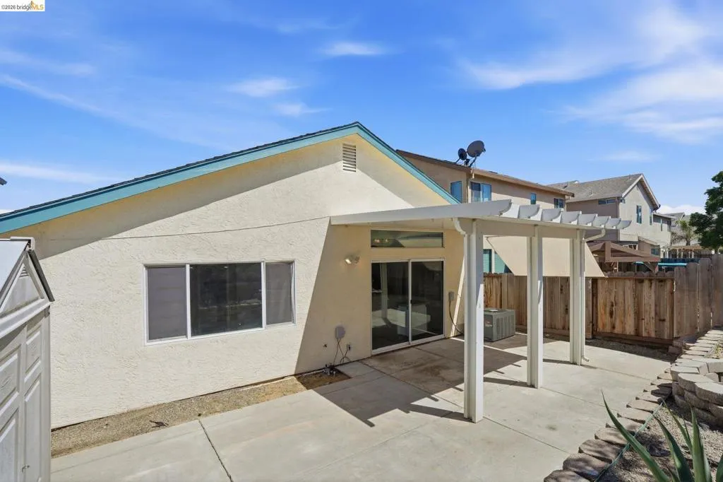 Welcome to this single story home in Oakley featuring 3 bedrooms, 2 bathrooms, and a spacious 2-car garage and owned solar! This move-in ready home offers an inviting layout with abundant natural light and a comfortable living space. The kitchen has been updated with white cabinets and solid counters. The open family room, dining room and kitchen is perfect for entertaining. Enjoy the convenience of low maintenance front and back yards, ideal for easy upkeep. The back yard features a covered patio, planting space along the back fence and a large shed. Conveniently located near shopping, dining, and commuter routes, this home offers both comfort and practicality. Don’t miss the opportunity to make it yours!
