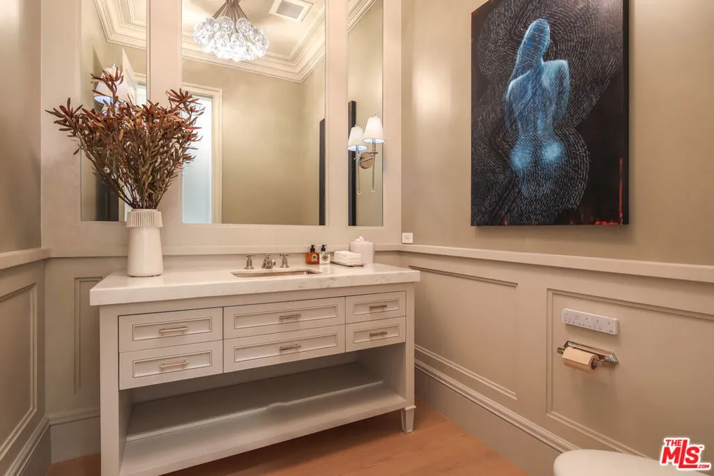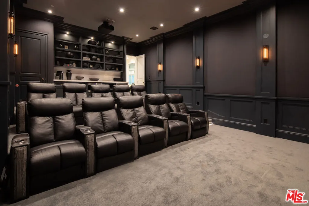 Situated on an over 18,000-square-foot lot in the heart of the Riviera, this stunning traditional estate offers over 10,000 square feet of living space, blending timeless architecture with today's open-concept indoor-outdoor lifestyle. Designed for exceptional flow and abundant natural light, the home lives beautifully for both everyday comfort and effortless entertaining and features an elevator to all three levels. On the main level, formal living and dining rooms are complemented by an open kitchen and family room; the true center of the home. Walls of pocket doors open directly to the backyard, creating seamless indoor-outdoor connection with views over the pool and grounds. The expansive chef's kitchen features generous bar seating, ample prep space, a bright breakfast area, and a windowed nook overlooking the yard, while a substantial butler's pantry supports entertaining at any scale. A mudroom and laundry room off the garage and an ensuite bedroom, currently used as an office, complete the level. Upstairs, the bedroom level is exceptionally bright, with an abundance of natural light throughout. The luxurious primary suite offers dual walk-in closets and two generously sized bathrooms. An adjoining room, currently used as an office, connects directly to the primary suite and includes its own bathroom; this space can easily be separated to function as an additional bedroom. Two more ensuite bedrooms complete the upper level, offering flexibility for a total of three or four bedrooms upstairs. The light-filled lower level is dedicated to recreation and wellness, featuring a large rec room, an impressive two-tier theater, a fully outfitted gym with steam shower and oversized sauna, a bar, and an expansive wine room with capacity for hundreds of bottles. An additional ensuite guest suite with separate entry provides ideal accommodations for visitors. Outside, the resort-style backyard is beautifully landscaped and designed for entertaining, with a sparkling pool and a pool house that opens directly to the pool and includes a full bathroom. Private, serene, and turnkey, this over 10,000 square foot Riviera estate presents a rare opportunity for refined California living in one of the most sought-after neighborhoods in all of Los Angeles. Also available for sale. 13-month minimum lease required.
