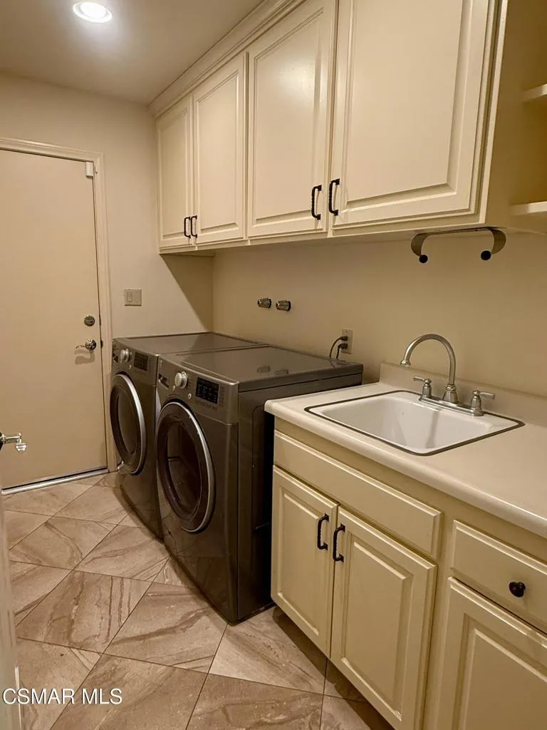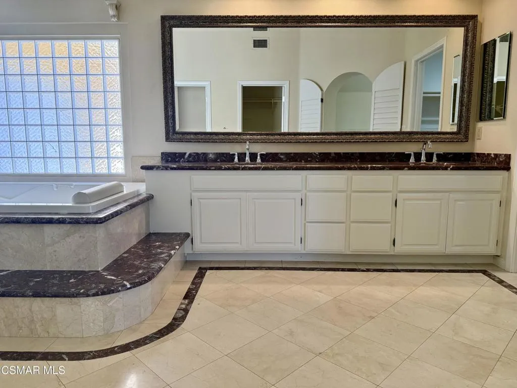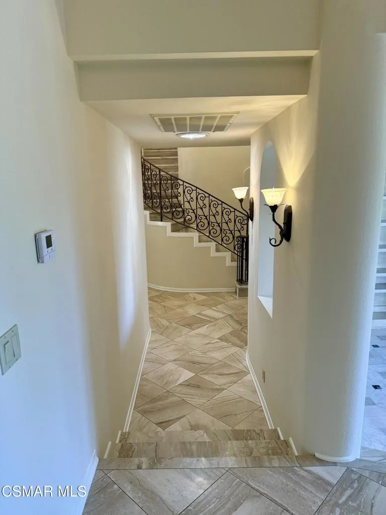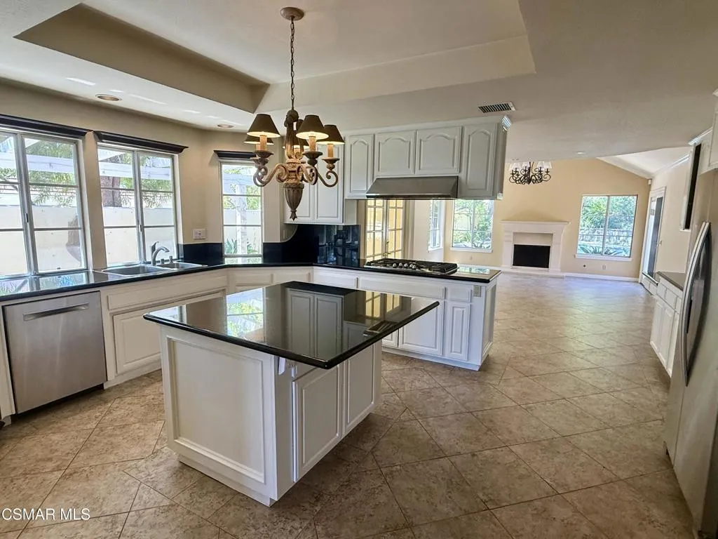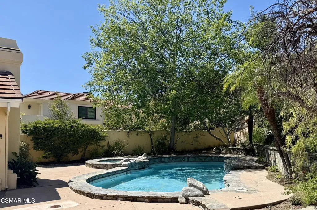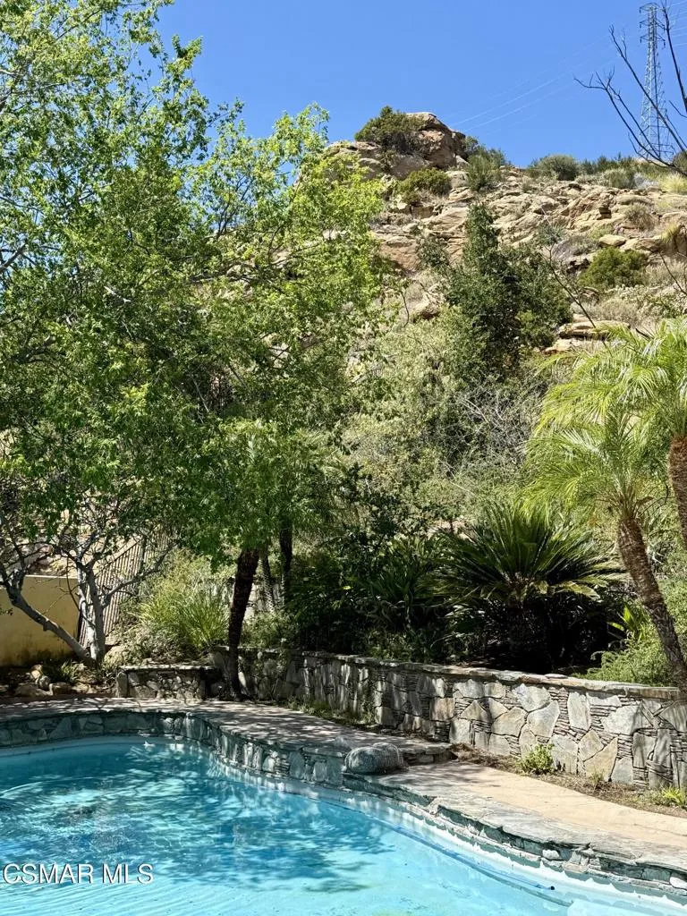 Amazing views from this North Ranch home, located at the end of a cul-de-sac. This six bedroom, four bathroom retreat is almost 4,000sf with a downstairs primary suite. The kitchen has granite counters, stainless appliances including refrigerator, double oven, microwave, dishwasher & trash compactor and a center island w/countertop seating. The open floorplan includes a family room with vaulted ceilings, a fireplace, & French door access to the backyard and pool. Just off the kitchen is the formal dining room with French doors leading to the private front yard. Just off the entry is both a formal living room with fireplace & bar area, including a wine refrigerator and a separate open library or office space. The primary suite is located on the main floor, with its own fireplace. The large primary bathroom includes a double vanity, large bathtub and separate shower and dual walk-in closets. There are two additional downstairs bedrooms with a shared dual entry bathroom as well as a powder room for guests. Upstairs are three additional bedrooms, one of which has a private exterior entrance, as well as a full bathroom. Features include HVAC, fresh paint, marble & wood-like flooring, built in cabinetry, plantation shutters, wrought iron banister and ceiling fans. The inside laundry room includes a washer & dryer and sink and direct access to the private three car attached garage, with additional driveway parking. Nestled on a 32,000sf lot, with amazing views of the area mountains, the private backyard has a swimming pool, spa, patio, and grassy area to enjoy the beautiful weather year round.
