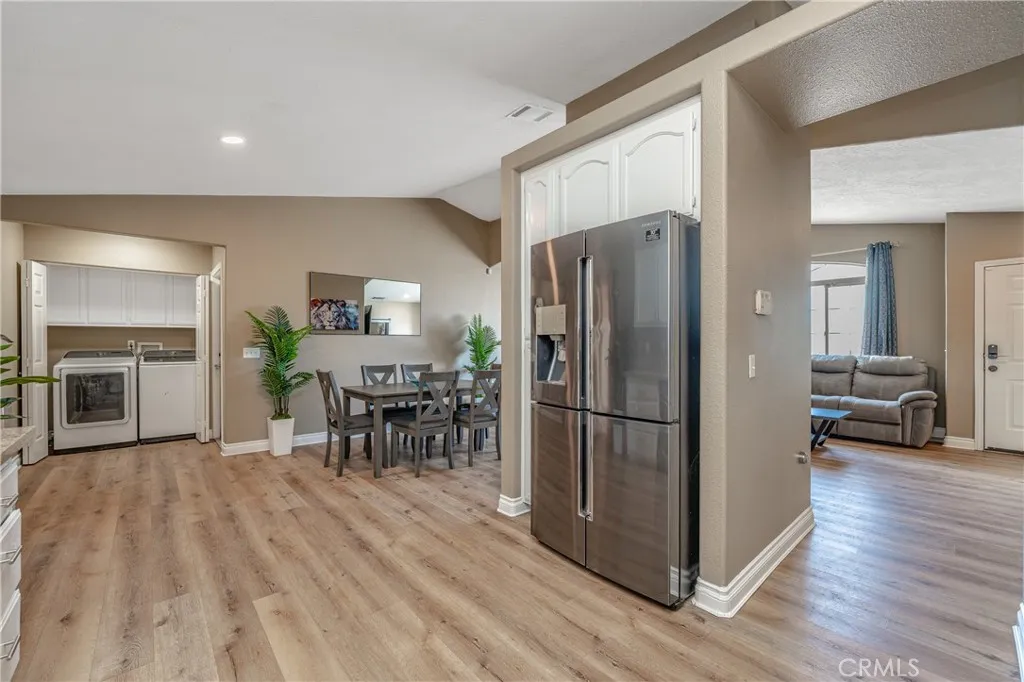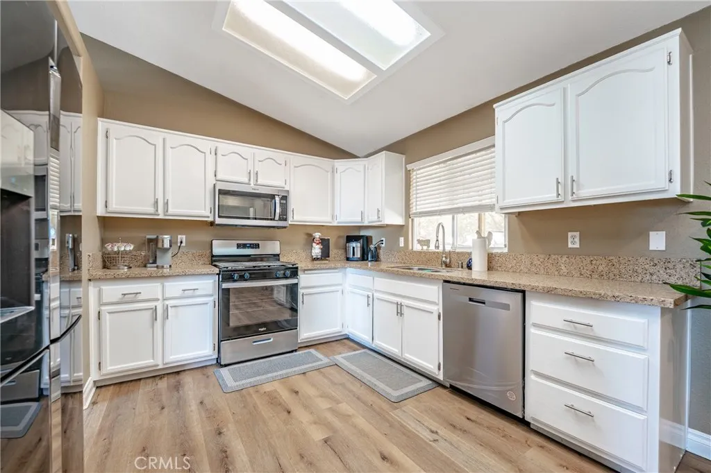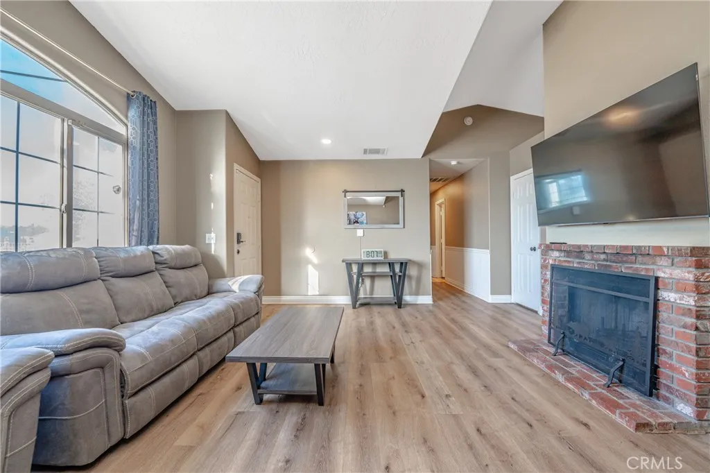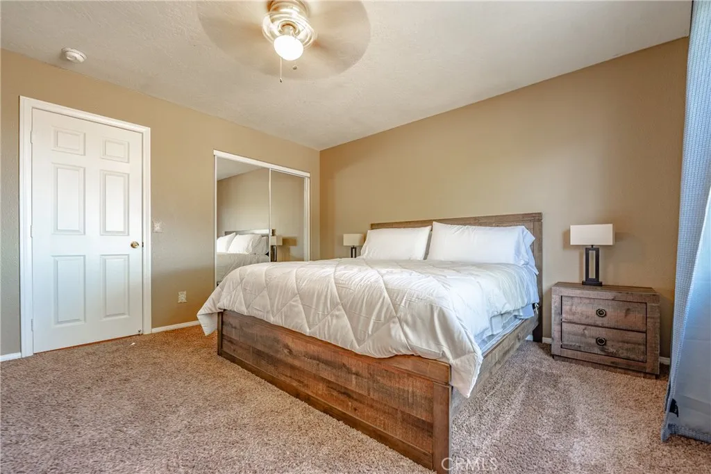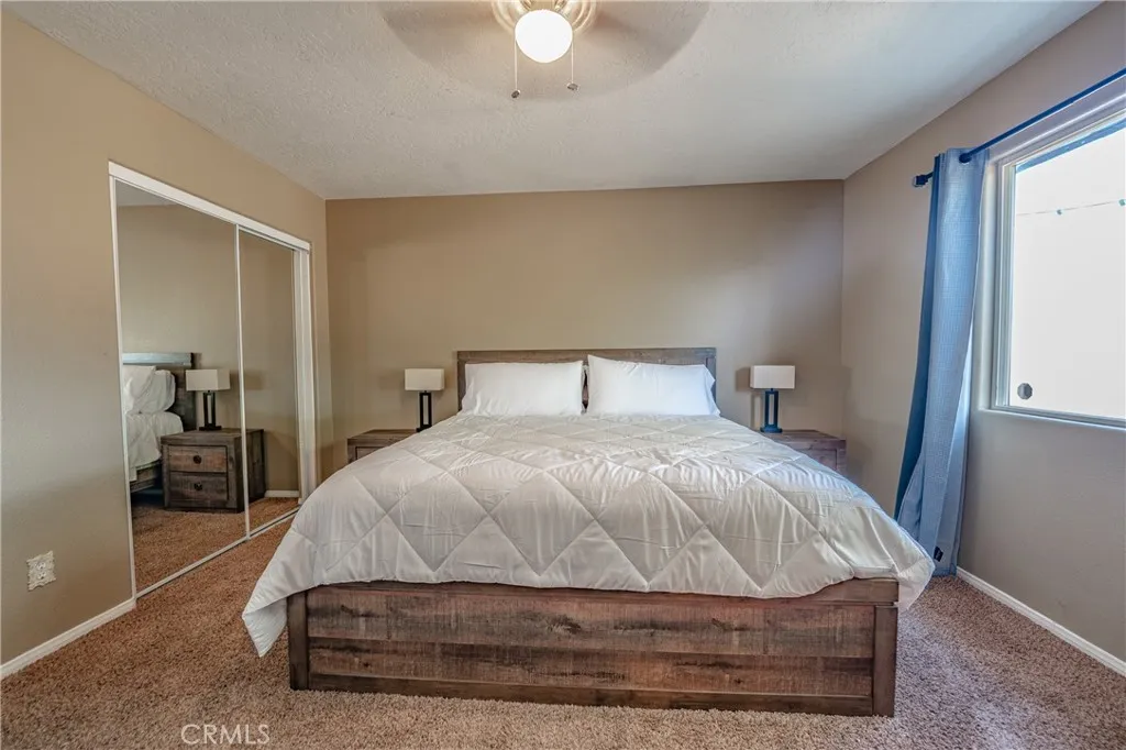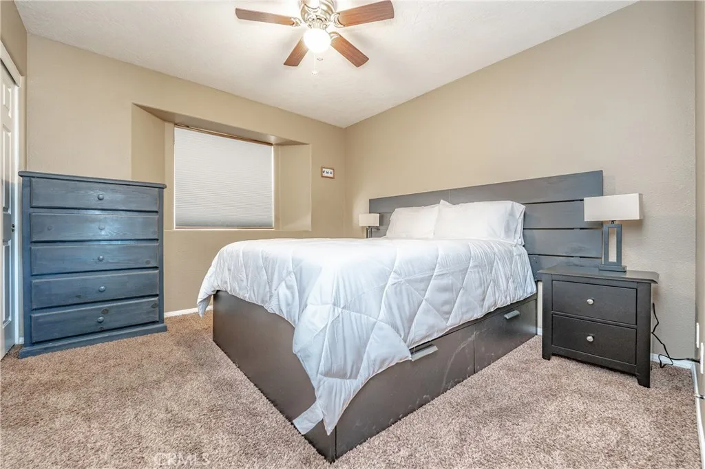 FULLY FURNISHED REMODLED HOME! Utility, WIFI, Landscaping services included. Spacious 3 bedrooms, 2 baths, 2 car garage. Completely fenced lot with sliding gate. High vaulted ceiling on the great room consist of formal living, dining, and kitchen. Sleeps 8 adults. Living room: high ceiling, fireplace, leather recliners, 65" TV, & games. Modern dining table. Loaded kitchen! Quartz counter, deep sink, faucet & stainless steel appliances. Master bedroom has king bed, fireplace & 55" TV. Master bathroom has sinks, tub & shower. 2nd bedroom has a queen bed. 3rd bedroom has a queen bunk bed & Full bed. 2nd bathroom has sink, tub & shower. Inhouse laundry. Nice enclosed covered & private patio with seating area. In-house washer & dryer. SUBJECT TO QUALIFICATION.