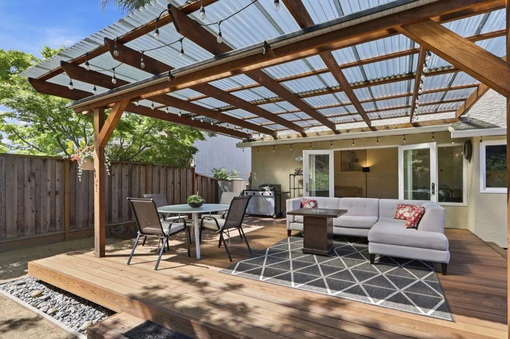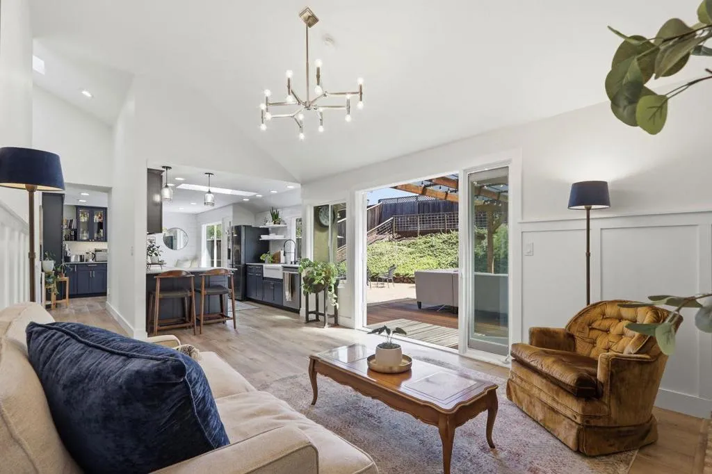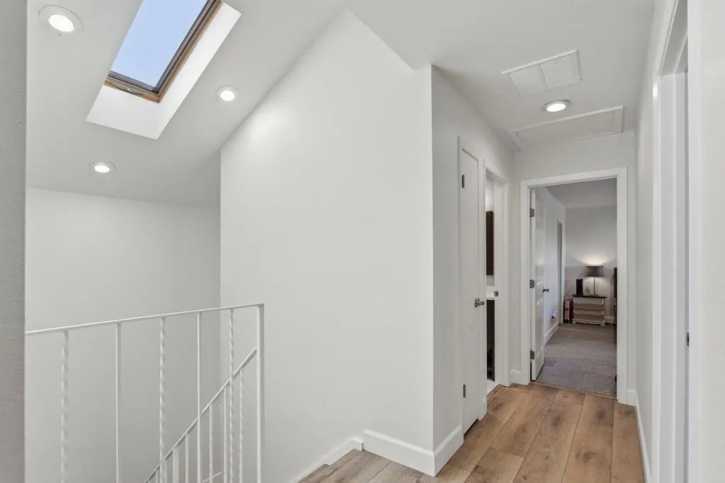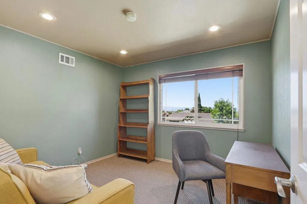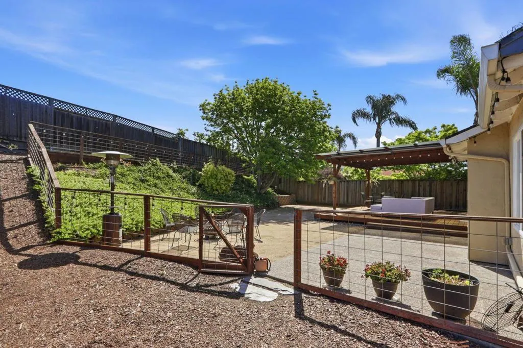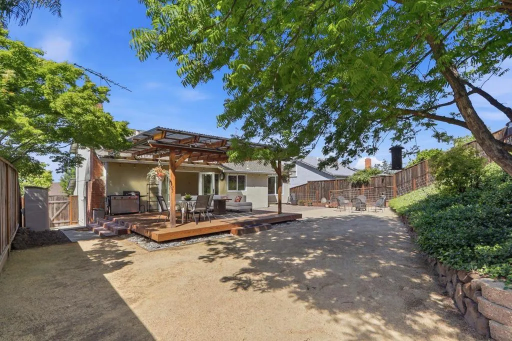 Located in Milpitas, this 1,910 SF home on a 7,280 SF lot features 4 bedrooms and 3 full baths. The first floor offers a versatile room with french doors opening to a private, fenced courtyard. A full bathroom with a walk-in jetted tub and shower makes it ideal for guests or multi-generational living. Up a few steps, natural light illuminates the heart of the home. The updated family room has a gas fireplace, and the remodeled kitchen features heat and stain resistant Dekton countertops, modern appliances, full wall pantry, and a built-in banquette for dining or gathering. Walk out to a covered 20x20 custom redwood deck via french doors for seamless indoor-outdoor entertaining, with roll-down shades for cooler days and lighting for evening living. The large backyard feels private and offers abundant side yard storage, dog run, and drought-tolerant landscaping with automatic sprinklers. Upstairs, a skylight brightens the hallway to four bedrooms with views of the valley or hills, including one with a sleeping loft. There are remodeled full bathrooms in both the hall and the primary suite, which has a stall shower and walk-in closet. LED lighting and owned solar panels add to efficiency, and A/C keeps it comfortable year round. So many features and so much to love! You are home.