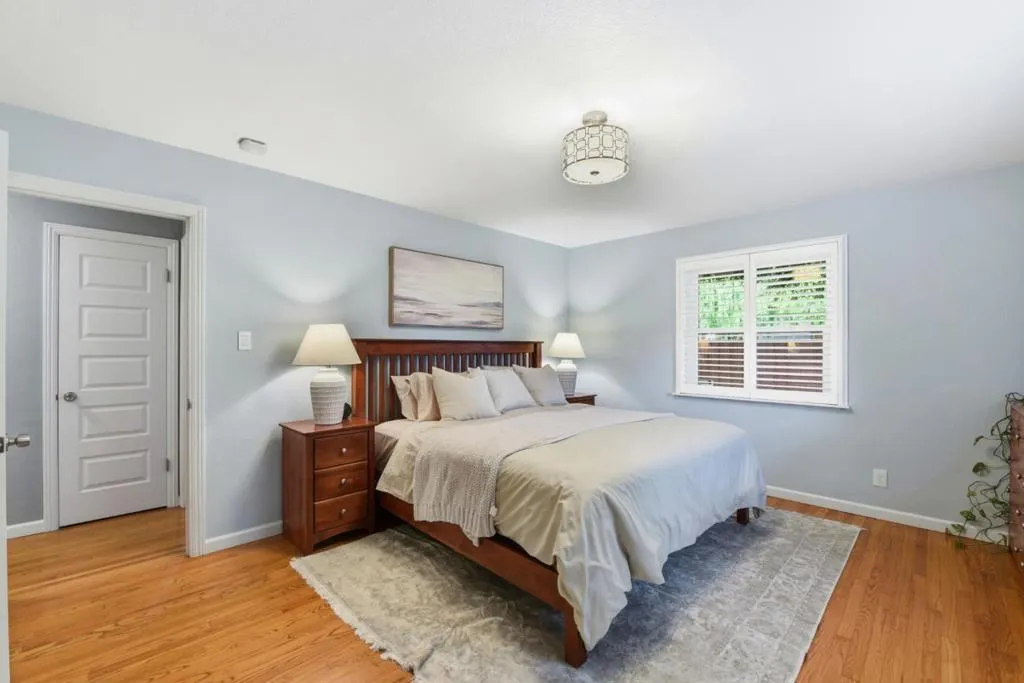 Charming single level home close to downtown Willow Glen. The kitchen was remodeled in 2024 with permits and has quartz counters, gas stove, stainless steel appliances and new lighting. Both bathrooms were remodeled with clean lines and natural stone finishes. There are hardwood floors throughout, a large family room with a gas fireplace, plantation shutters, recessed LED lighting, central A/C, gas stove, gas fireplace and EV charging. If you like plants or want a zen spot, there is a bright garden room off the dining space. There is even a permitted office/living space in the spacious backyard! Perfectly located with easy access to downtown WG, parks, schools and freeways.