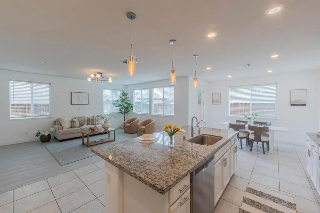 Charming home in a desirable neighborhood is set to impress with great curb appeal and details throughout. Fresh interior paint throughout except bathrooms and closets. New laminate flooring in main and separate family room. As soon as you walk in the entrance you are greeted to high ceilings and abundance of natural light that shines through every room. Kitchen features granite countertops, pantry, stainless steel appliances, and a large island perfect for hosting friends and family. Kitchen opens up into the dining room and main living area. Upstairs you'll find a dedicated laundry room and spacious den area that can be used as a play area, office space, or for entertainment. Primary bedroom has gorgeous feature wall and ensuite that includes dual sinks, soaking tub, and a large walk-in shower and closet. Remaining rooms are all in good size. Outside in the backyard there is ample space to entertain during those Summer nights on the beautiful stamp tile patio. Close to parks, shopping and schools.