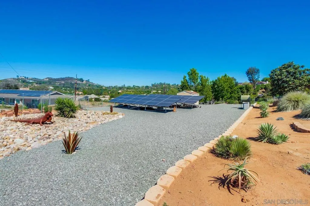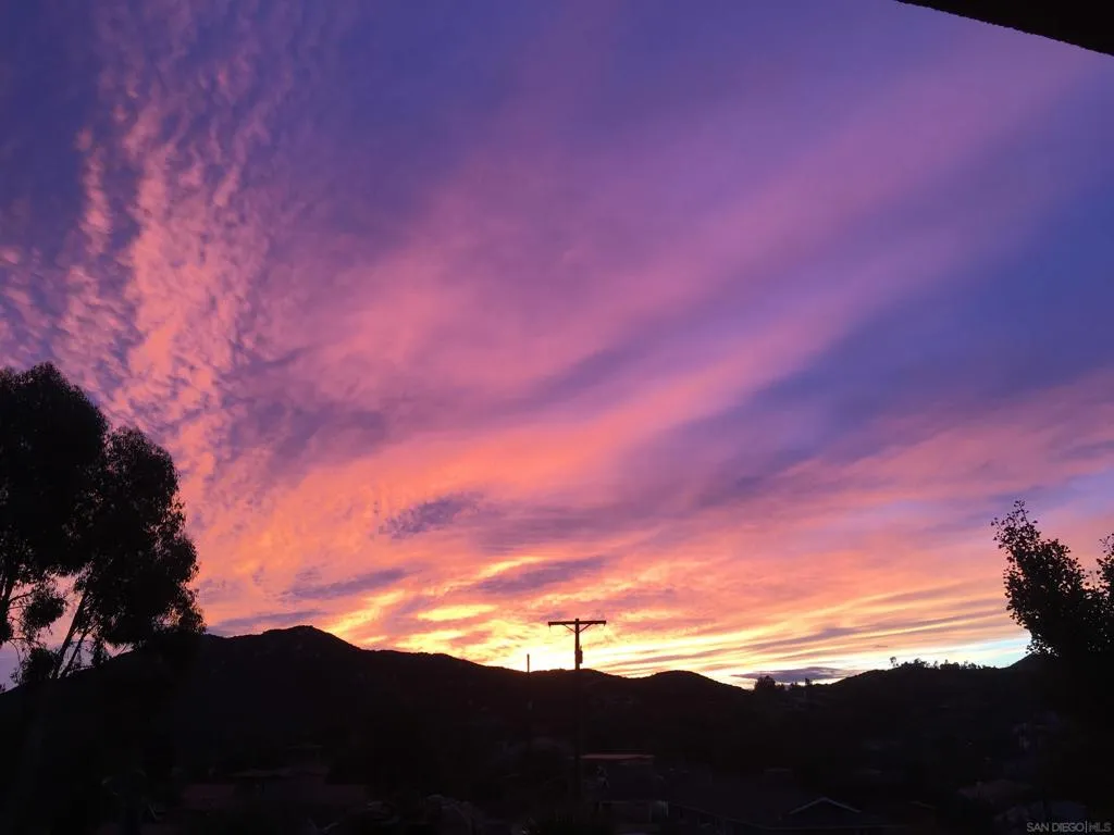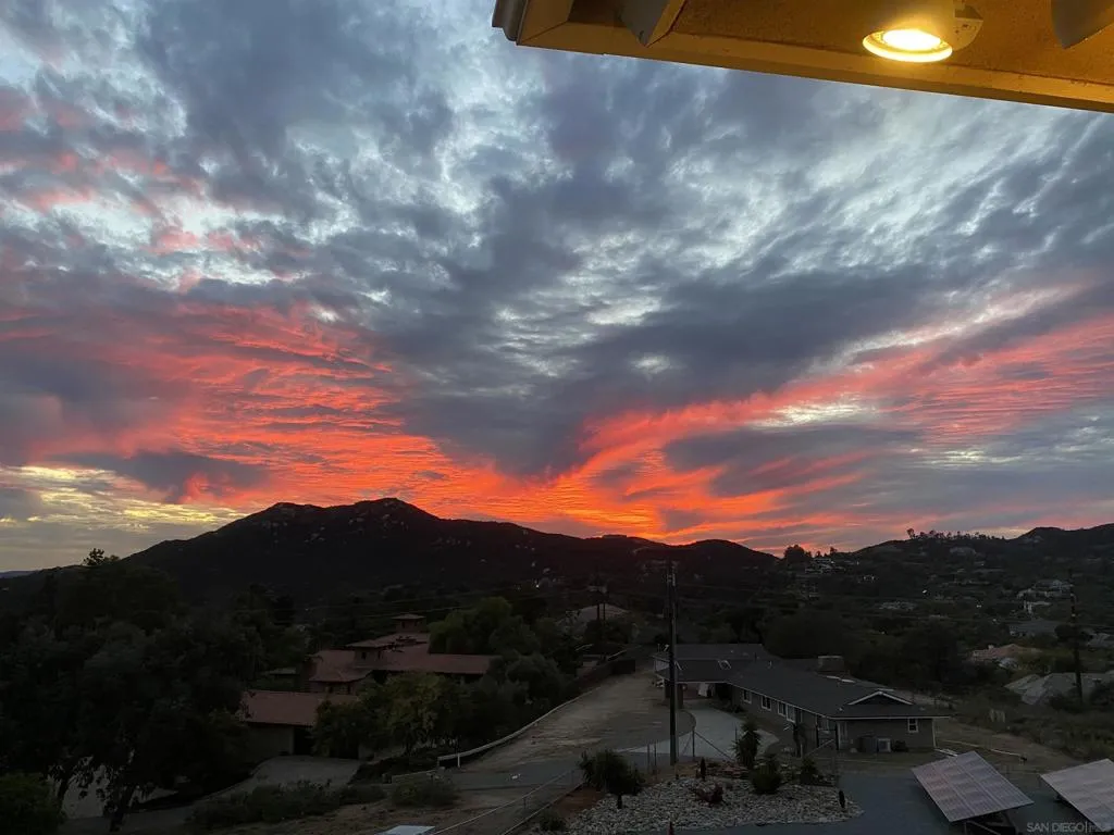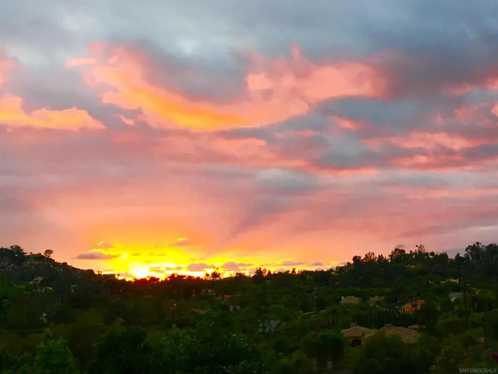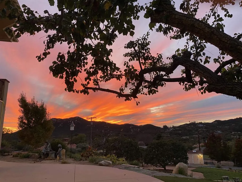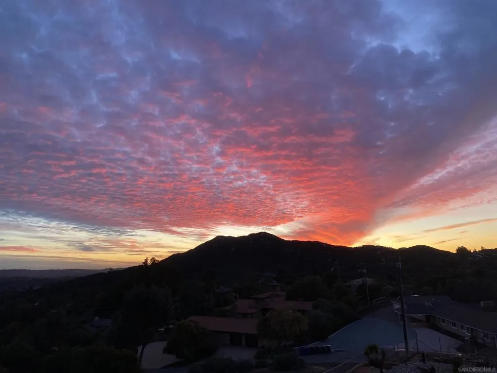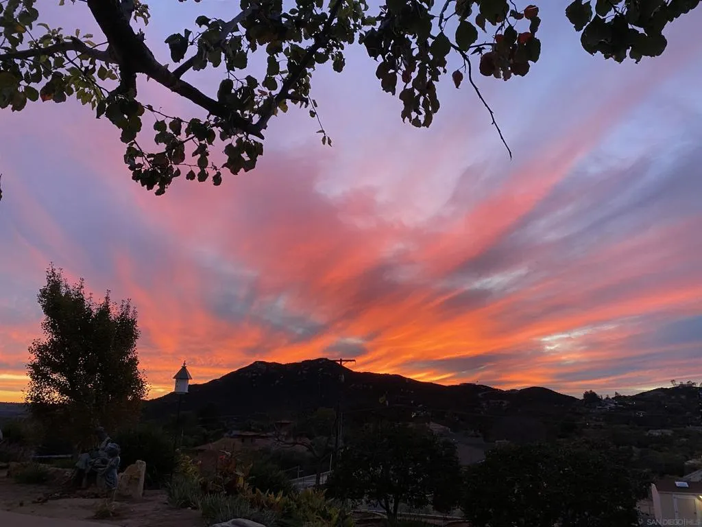 Constructed in 2004, this Mediterranean estate sits on 1.37 elevated acres in Poway with panoramic hill and valley views from virtually every room. The 5,595 sq ft residence includes a fully independent one-bedroom guest flat, a three-car garage, owned solar panels with Enphase battery backup, and grounds that encompass an ornamental koi pond, citrus orchard, terraced gardens, outdoor kitchen and gas fire pit. The level of craftsmanship, systems infrastructure, and thoughtful design throughout is exceptional. The chef's kitchen centers on a massive blue-green granite island with Miele appliances throughout, including built-in column refrigerator and freezer, a hand-carved range hood above an LP gas cooktop, and an artist-painted tile backsplash mural. The formal dining room wraps on three sides with curved windows framing unobstructed hill and valley views. A sweeping curved wrought iron staircase anchors the limestone entry foyer. Upstairs, the master suite includes a sitting room with fireplace and wet bar, a wraparound private terrace, an imported Rosso marble bath with soaking tub positioned before a bank of hill-view windows, a travertine walk-in shower, and a walk-in closet. Secondary bedrooms each have private baths and walk-in closets. A stone LP gas fire pit and citrus grove complete the outdoor program. A broad motor court accommodates eight or more vehicles. The wine cellar features 400-plus bottle redwood racking, dual built-in wine refrigerators, and a secondary storage room accessed through a speak-easy door.