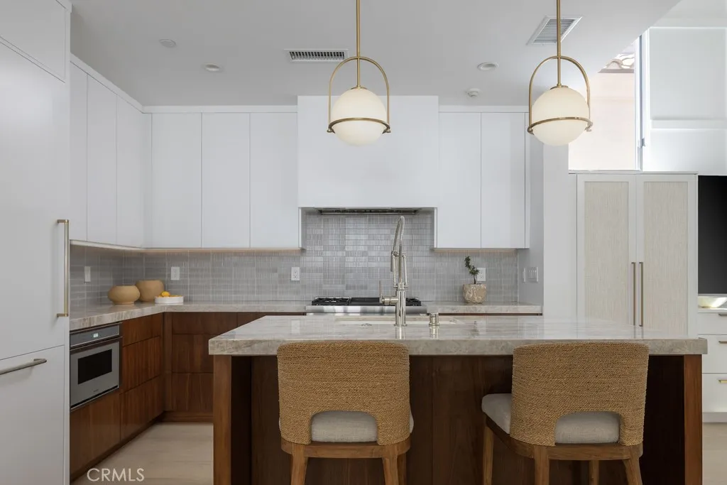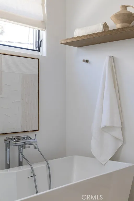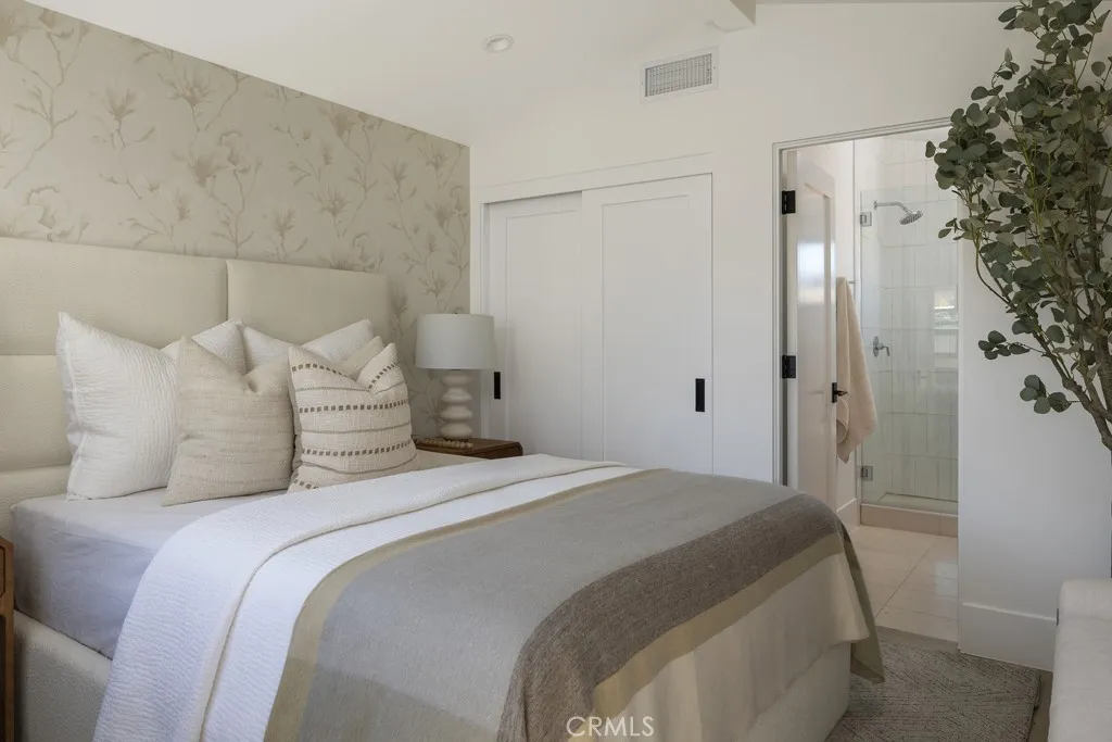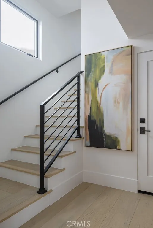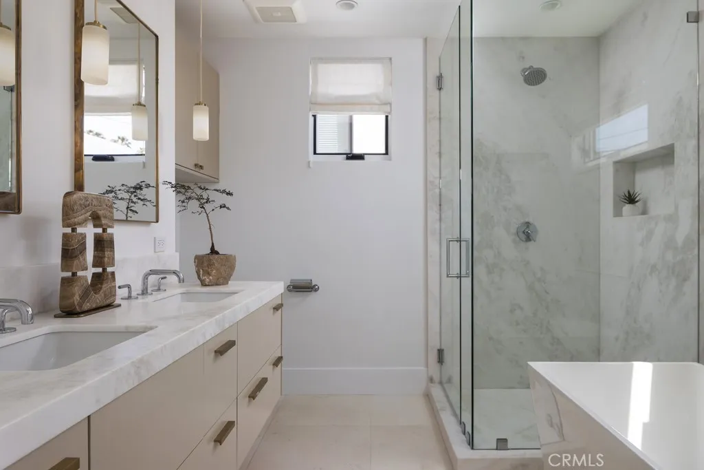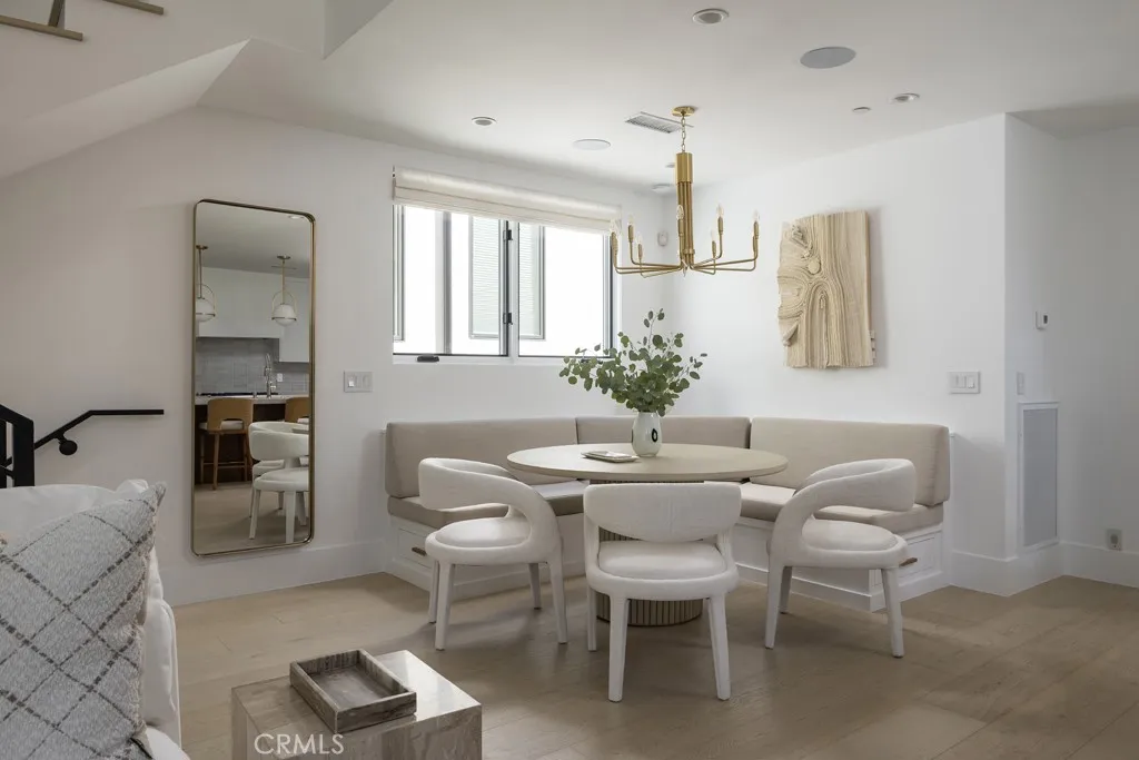 A quiet expression of coastal living, this residence is defined by light, volume, and thoughtful design. Elevated ceilings frame the main living space, where soft natural light drifts across crisp walls and settles into warm hardwood floors, creating a calm and grounded atmosphere. The home unfolds effortlessly to a private covered loggia, an intimate retreat anchored by a handcrafted tiled fireplace. Here, indoor and outdoor living exist in quiet harmony. At the heart of the home, the kitchen and living areas are both refined and inviting, designed for connection as much as for everyday ease. Extensive custom cabinetry and refined wall detailing, creating both functional space and a striking design statement. Further enhancing the residence, Emtek hardware and Waterworks sinks and faucets are throughout the home. The primary suite offers a sense of retreat, complete with a generous walk-in wardrobe and a spa-like bath featuring a soaking tub, oversized shower, and dual vanities. To further the elegance, the primary bathroom showcases honed and book matched slabs with limestone floors. Above, a semi-covered rooftop terrace captures gentle ocean breezes and distant coastal views—an elevated vantage point for both quiet mornings and sunset gatherings. Positioned moments from the sand, the home enjoys close proximity to Big Corona Beach via the Historic Goldenrod Footbridge, as well as the charm and ideal location to the Corona del Mar Village’s restaurants and boutiques.