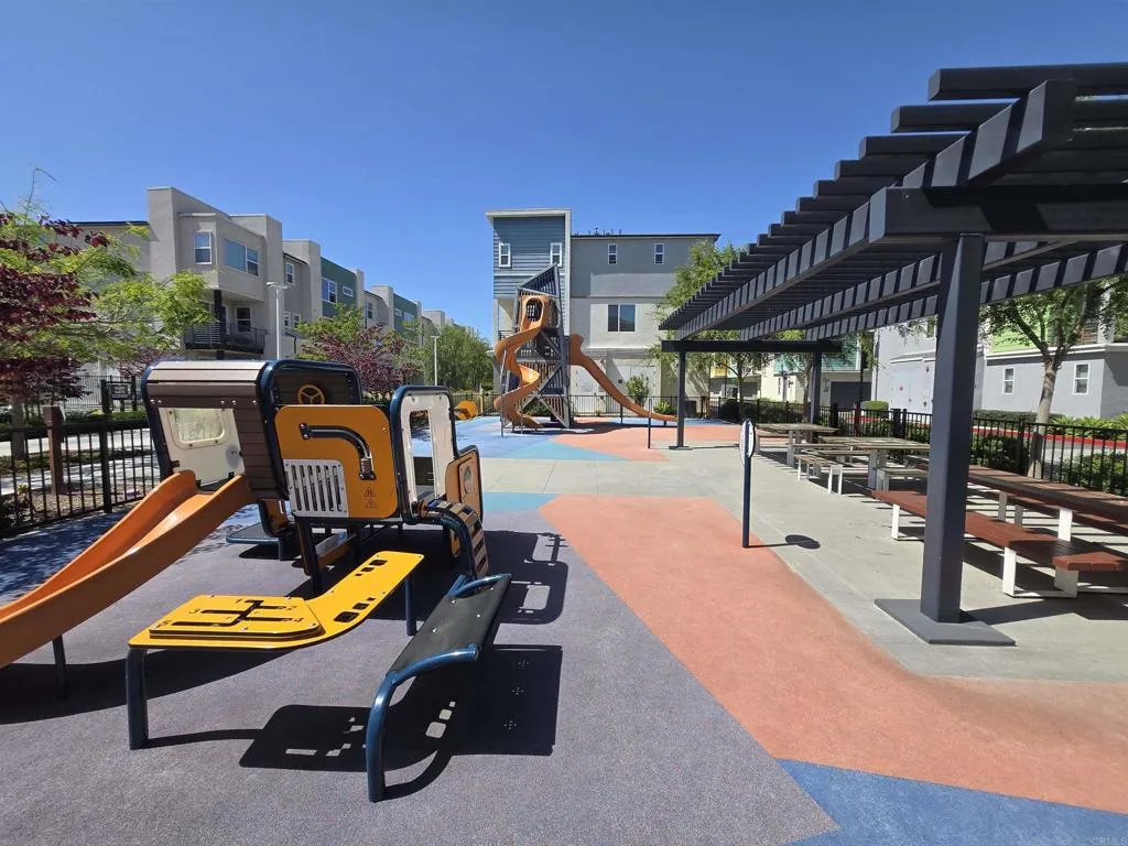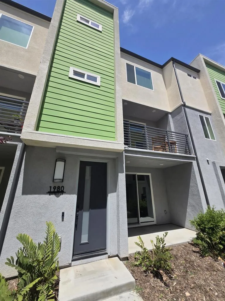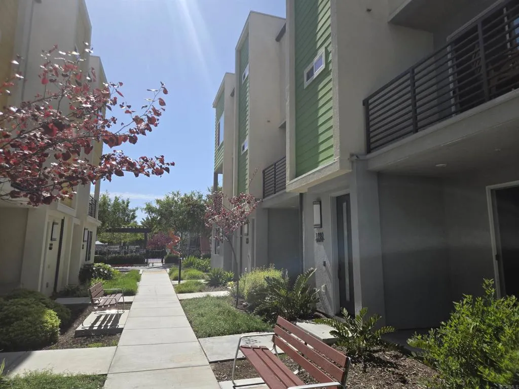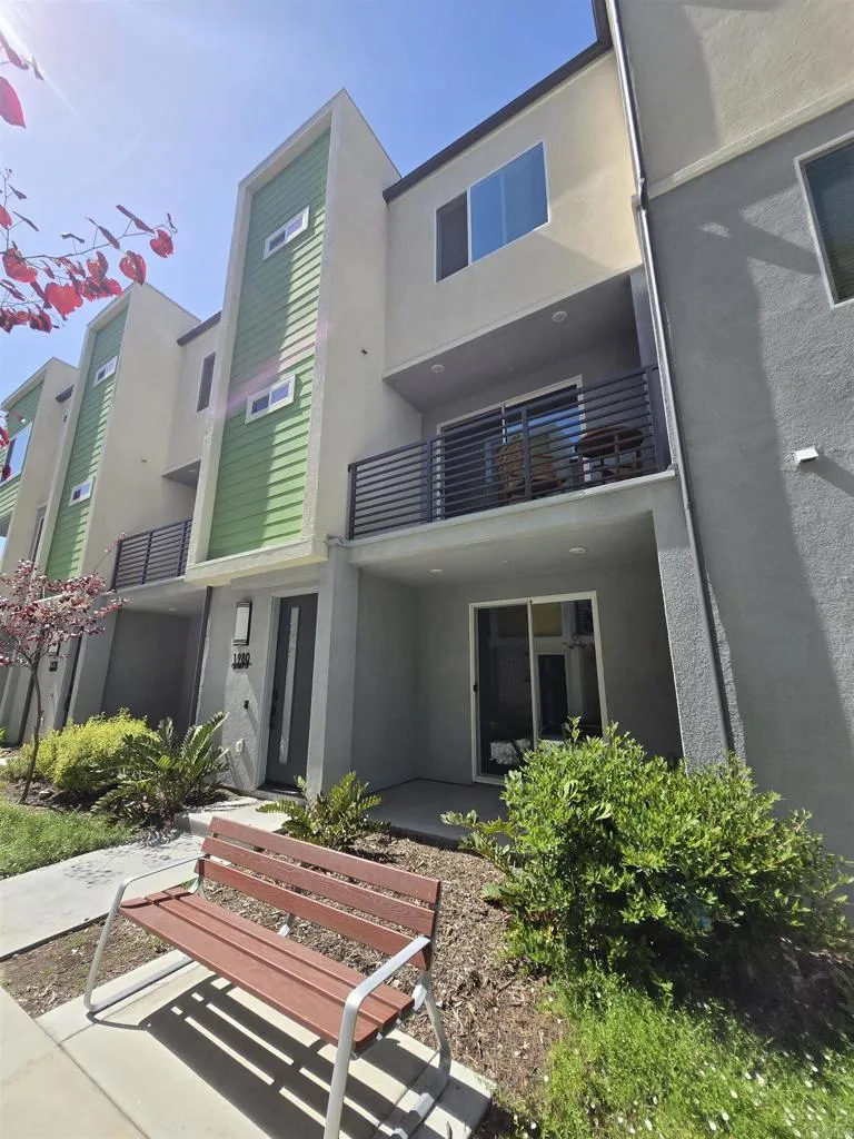 Welcome to this newer construction townhome in the highly desirable Millenia community of Otay Ranch—featuring owned solar for reduced electricity costs, energy-efficient living, and a garage equipped with an EV charger ready for use. This modern residence offers 3 bedrooms, 2.5 bathrooms, and a thoughtfully designed open-concept layout filled with natural light. The versatile floor plan includes en-suite bathrooms in every bedroom, providing privacy and flexibility for a variety of living arrangements. Multiple levels create separation of space, ideal for work-from-home setups or accommodating different schedules. The main living area showcases a spacious great room that flows seamlessly into a contemporary kitchen with sleek cabinetry, quartz countertops, stainless steel appliances, and a large center island—perfect for both everyday living and entertaining. Enjoy a highly walkable lifestyle just steps from restaurants, cafes, parks, and everyday conveniences in the heart of Millenia. Additional highlights include in-unit laundry, central A/C, and an attached 2-car garage with built-in EV charging capability. Conveniently located near major freeways, offering easy access throughout San Diego and surrounding areas. Experience modern living, functional design, and urban convenience all in one exceptional home.