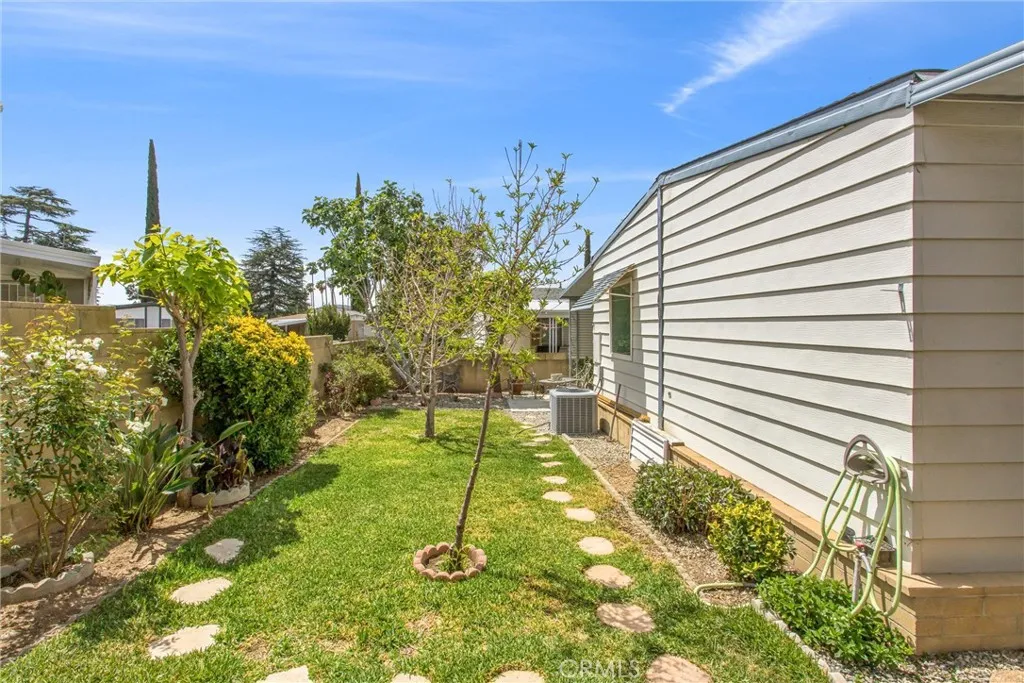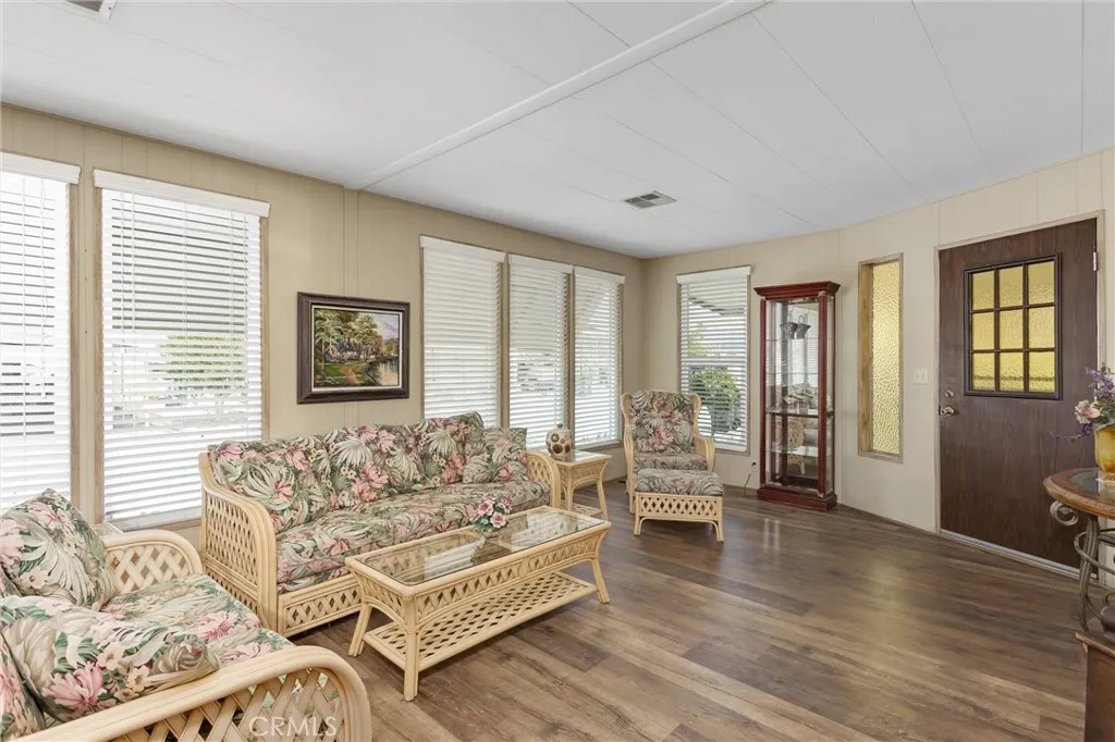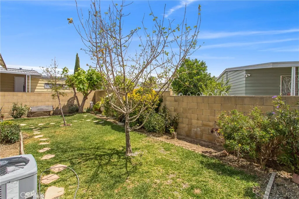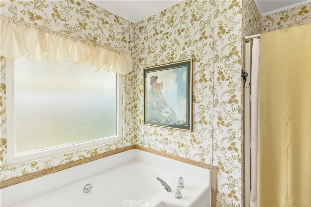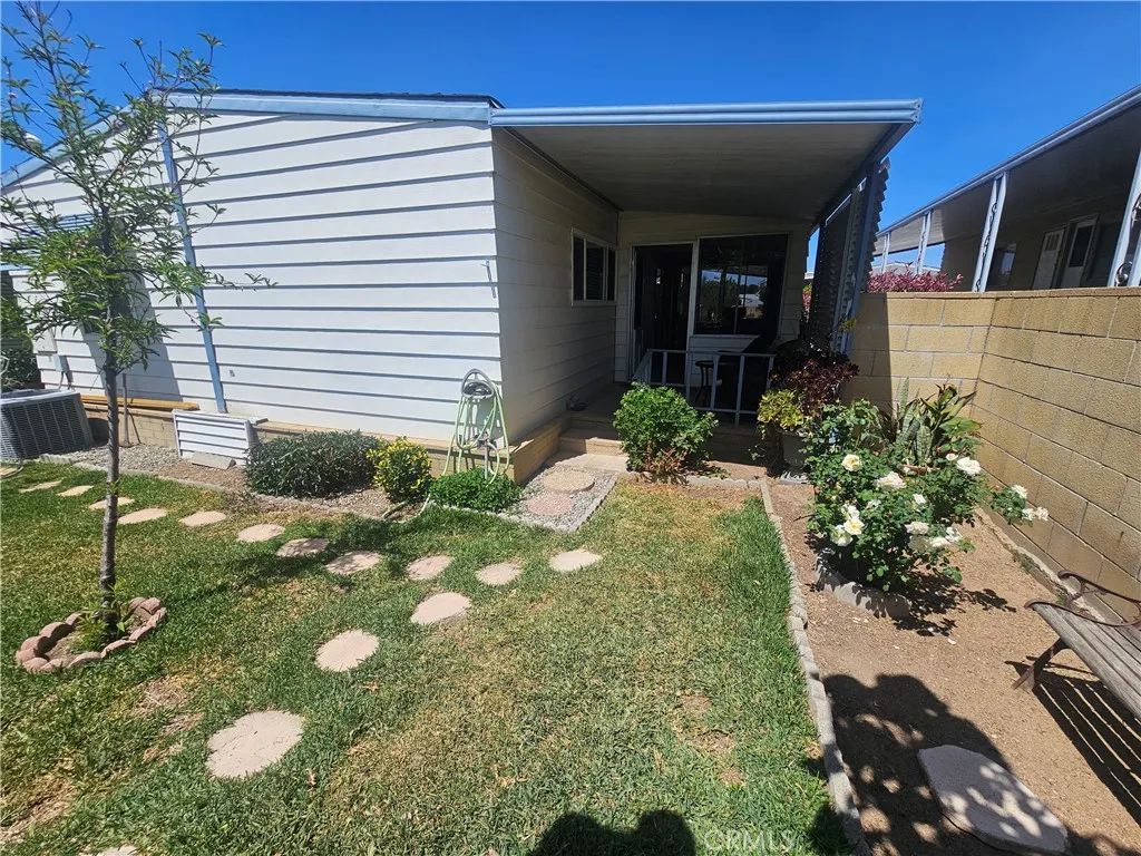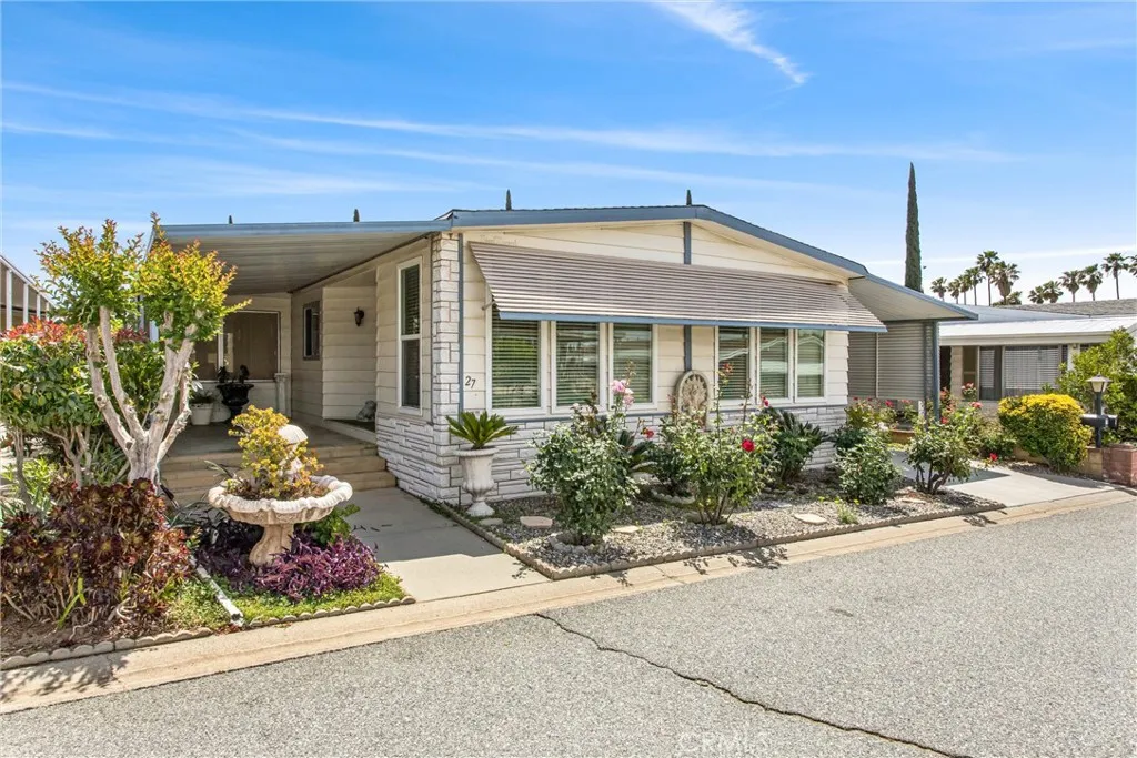 STOP. STOP RIGHT NOW! Look at ME! Enter the park and I'm the 3RD home on the right. #27. (PLZ TAKE YOUR TIME TO READ ABOUT ME!) I'm the GORGEOUS ONE...with roses and landscaping. Step inside and see how Beautiful my soft colors are in my large, spacious living room with formal dining area & built in China Hutch. Love to cook & entertain? CIRCULAR KITCHEN with 4 breakfast bar stools invite conversation, company or just plenty of room to spread out and cook. I have a den/family room off the kitchen that has a sliding glass door to a roomy Enclosed Patio Room. Two large bedrooms, One bathroom has a tub/shower combo and the Primary has a walk-in shower and separate soaking tub, with double sinks. NEWS ALERT! Don't miss ALL NEW Dual Paned windows throughout and a gentle, soft, inspiring & relaxing Mural that was hand painted in Primary Suite to bring joy and provide calmness. I will restore the bedroom if you do not like the painting. Exit my back door through the Patio Room and you will smile. I guarantee it. I have a secret, private little covered patio with a table & 2 chairs just inviting you to relax. Ahhh, but no...Go down my steps and let your eyes grasp the beauty of a stunning, secluded, landscaped, private back yard, fruit trees include fig, apply, & peach. Check out my pictures and get so excited that you call my Agent to see me today! (Ser#A/B33223)