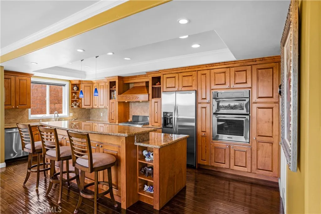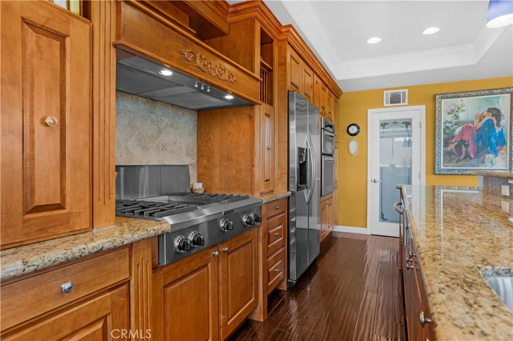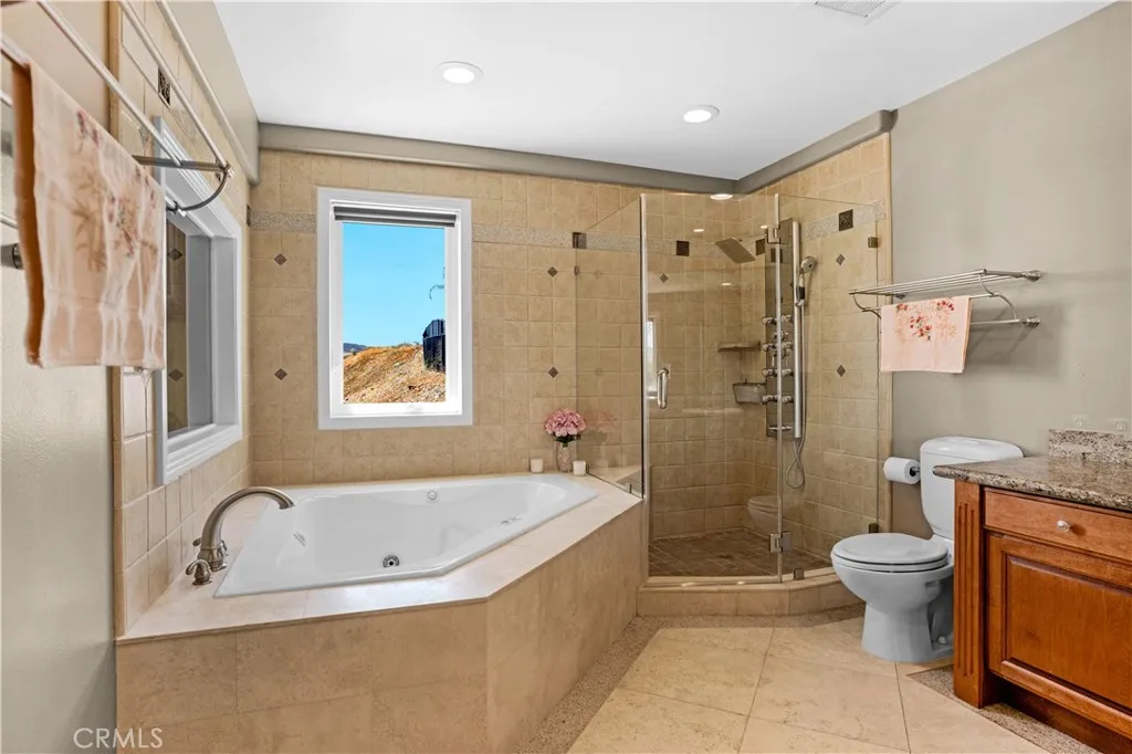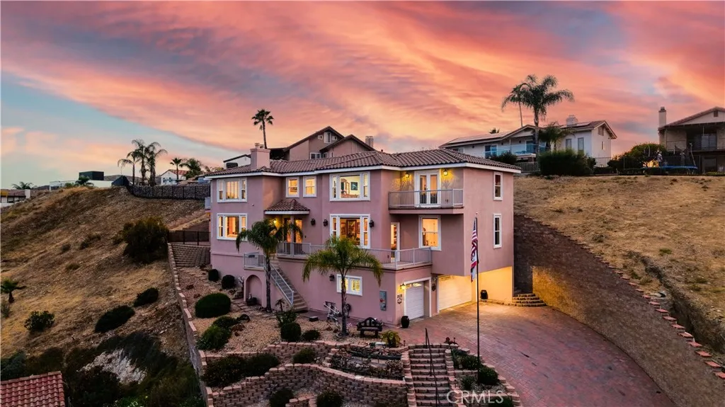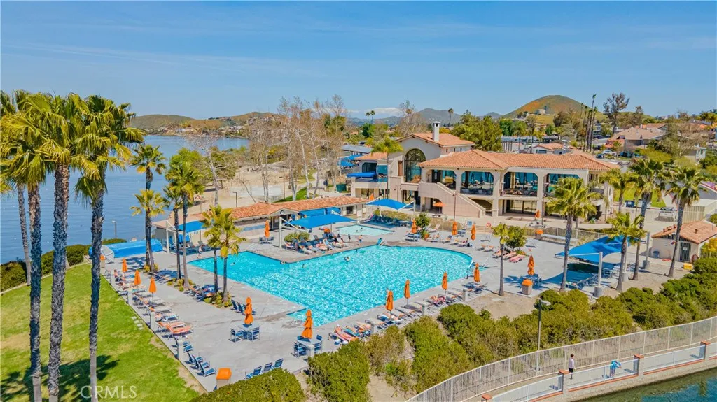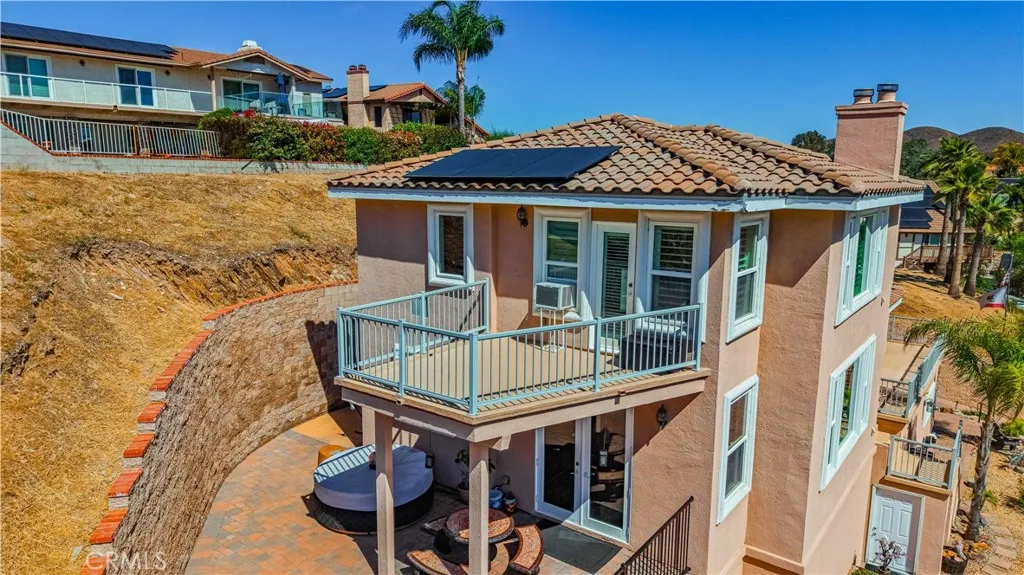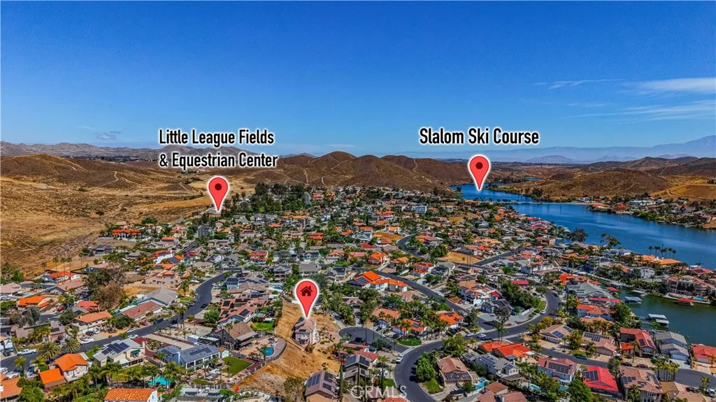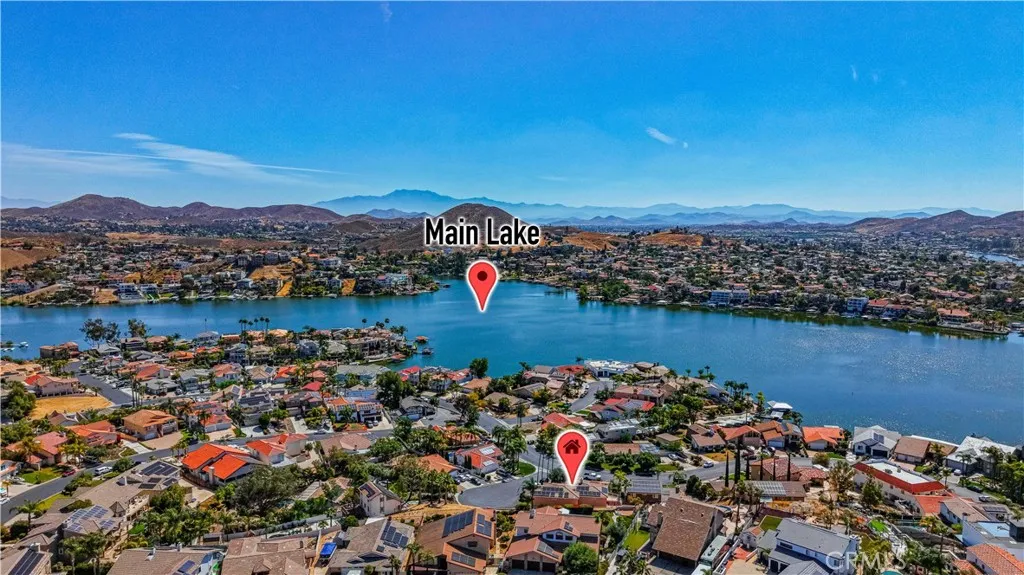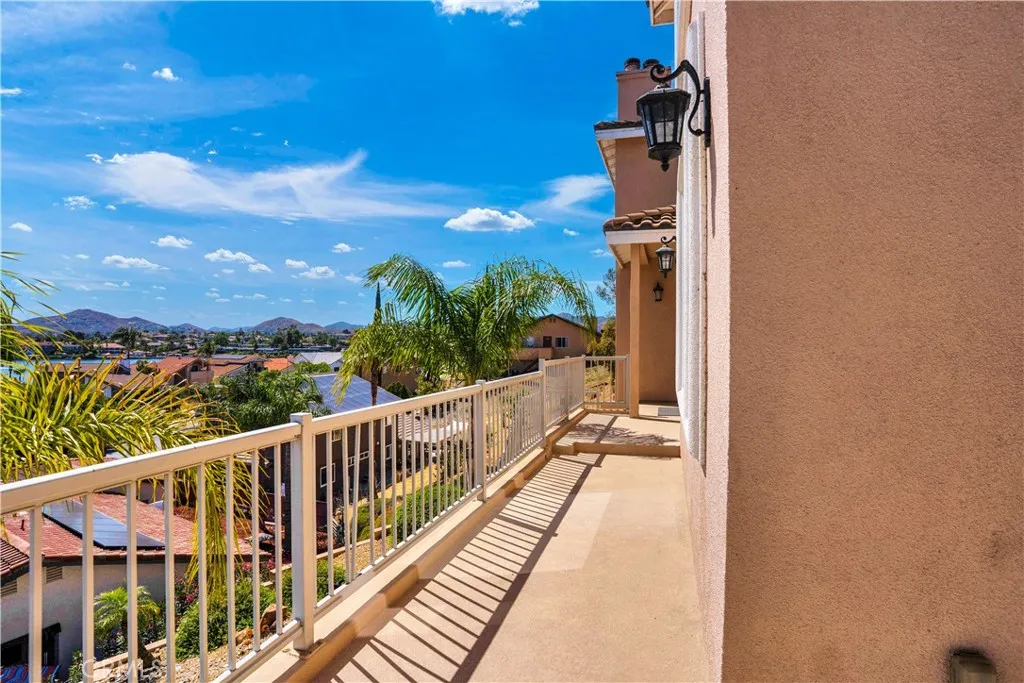 Gorgeous, Beautifully Built 3870 SF custom home with a THEATRE ROOM and LAKE VIEWS from almost every room! Main floor begins with a chef's KITCHEN, custom cabinetry and a granite island. It boasts a stove with center griddle, a double oven and a walk in pantry. Kitchen opens to a FAMILY ROOM with a cozy gas fireplace and big picture windows that look out to the lake. Walk out the French doors to a stone patio where you can soak in the hot tub or enjoy the panoramic view from the round concrete patio table. On the other wing of the main level is the guest bath, OFFICE with built in desk and shelves, LIVING ROOM and the FIRST PRIMARY bedroom with ensuite bathroom. Head upstairs to the SECOND PRIMARY Bedroom with large ensuite bathroom. A walk-in shower, separate jetted tub and large walk in closet complete this retreat. The bedroom is spacious with a gas fireplace and a Private deck. A loft separates the primary bedroom from the other three bedrooms on this level. Two of the guest bedrooms are ensuite providing comfort and privacy for each person. 2 of the 5 bedrooms have been opened to one another to create a lovely suite with a private deck. The house has been thoughtfully designed to have STUNNING lake views from large pictures windows in the bedrooms and living spaces. Soaring 10' ceilings, granite countertops, custom paint, wood floors and dramatic crown moulding make Crusader an elegant property. The final amazing space is a PRIVATE THEATRE in the lower level with WET BAR and 10' SCREEN with projector. The house has a 3 CAR GARAGE and street level BOAT PARKING. At the end of a cul-de-sac, the driveway accommodates the owner's low profile collector car. A whole house water softener system also provides water to the garage area for washing cars without the hard water! Move in just in time to enjoy the 4th of July Fireworks from one of your 3 DECKS! Enjoy this GRAND HOME while being cost efficient-PAID OFF SOLAR and inverter in stalled in 2023, dual AC units, whole house fan and low maintenance landscape. Canyon Lake is a gated golf and lake community with parks, country club, events, equestrian center, ski lakes, baseball field, dog parks, pickleball, basketball courts, tennis courts, lakeside campground and much more. The Lighthouse Restaurant offers indoor and outdoor dining and event space right beside an Olympic-sized pool, sandy beaches and play area. Near the community you can hike, bike, shop and enjoy the best of the Southern CA lifestyle!
