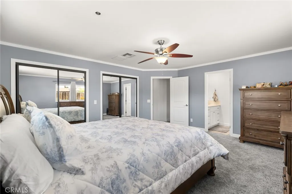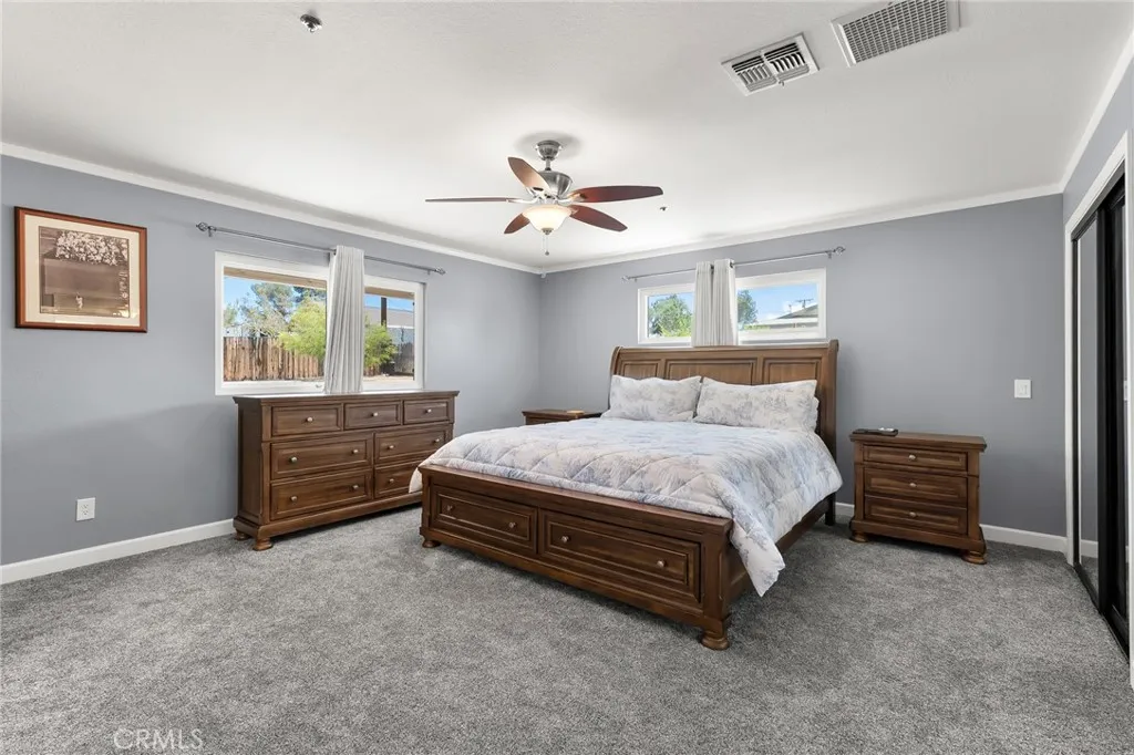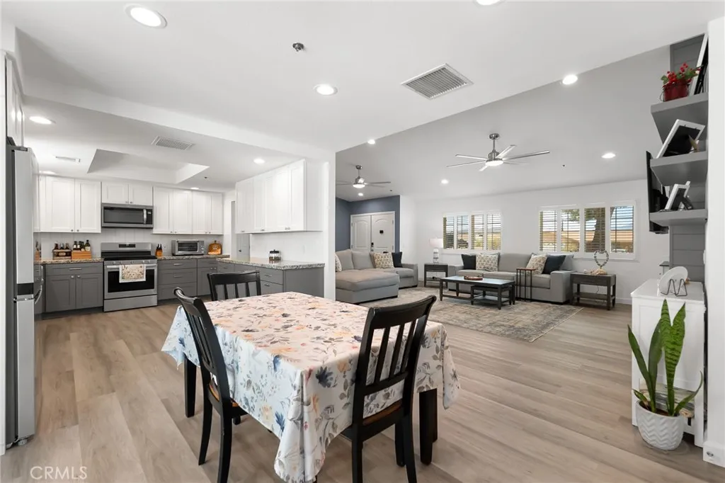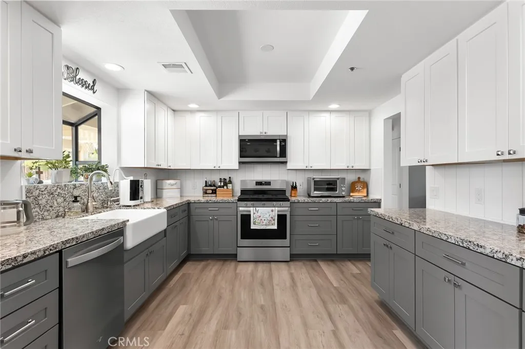 The pictures speak for themselves but once you step into this immaculate and beautiful home you will fall in love. This polished remodel is a home that draws you in with its clean lines and warm touches. Remodeled from top to bottom bringing modern design & updates for comfort and stylish living. So well planned out making every room spacious. Stepping thru the double door entrance brings you into the open concept of a vaulted ceiling, floating shelves, contemporary fireplace and natural warm lighting streaming thru plentiful windows giving you beautiful mountain views. Kitchen boasts of generous granite counters and shiplap touches. Generous granite counter space, stainless steel appliances, custom 2 tone cabinets with self closers, a farm sink and a large garden window are just some of the finishing touches. The shiplap accents continue into the dining and living room bringing continuity of style. Enjoy a meal in the dining room and step out the french doors to a sweet rose garden. Your backyard has expansive concrete patio and covering decked with solar lights. Corrugated planters full of greenery. Desert trees line the yard and all on a bubbler. Beautiful mature trees and a circular concrete driveway welcomes you home. Double gates on each side of house for RV access also.
