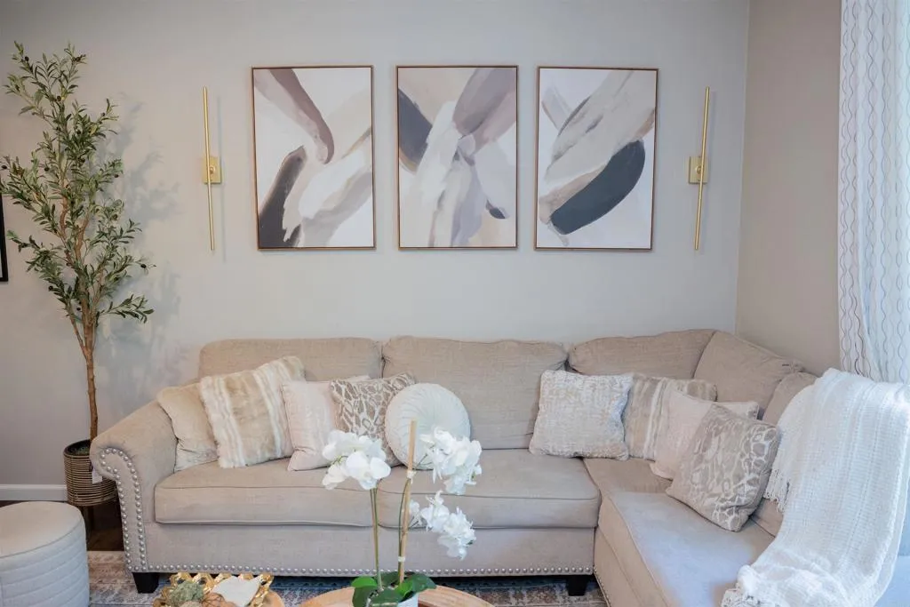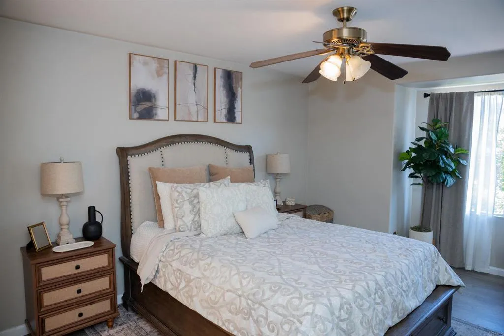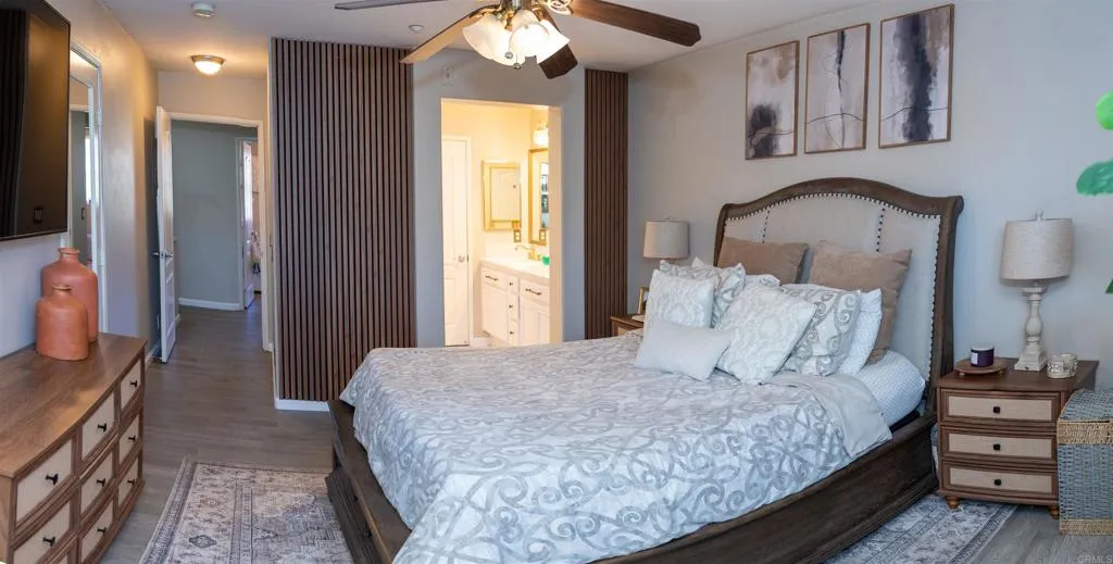 Experience modern suburban living at its finest in this stunning Treviso townhome, perfectly situated in the heart of west Santee. Spanning 1,342 square feet, this residence boasts a thoughtful, high-function layout that includes a full bedroom and bathroom on the main level, catering effortlessly to guests or multi-generational needs. The heart of the home is a bright, open-concept kitchen featuring elegant granite countertops, a brand-new 5-burner cooktop, and a sleek modern backsplash—all flowing seamlessly into a living area that opens onto a private balcony. Privacy is paramount here, as each of the three bedrooms is paired with its own dedicated bathroom. The primary suite serves as a true retreat, offering dual closets and an en-suite bath with dual sinks. Beyond the interior comforts—like the full-size laundry room and ceiling fans—the home includes an attached 2-car garage for easy storage and parking.