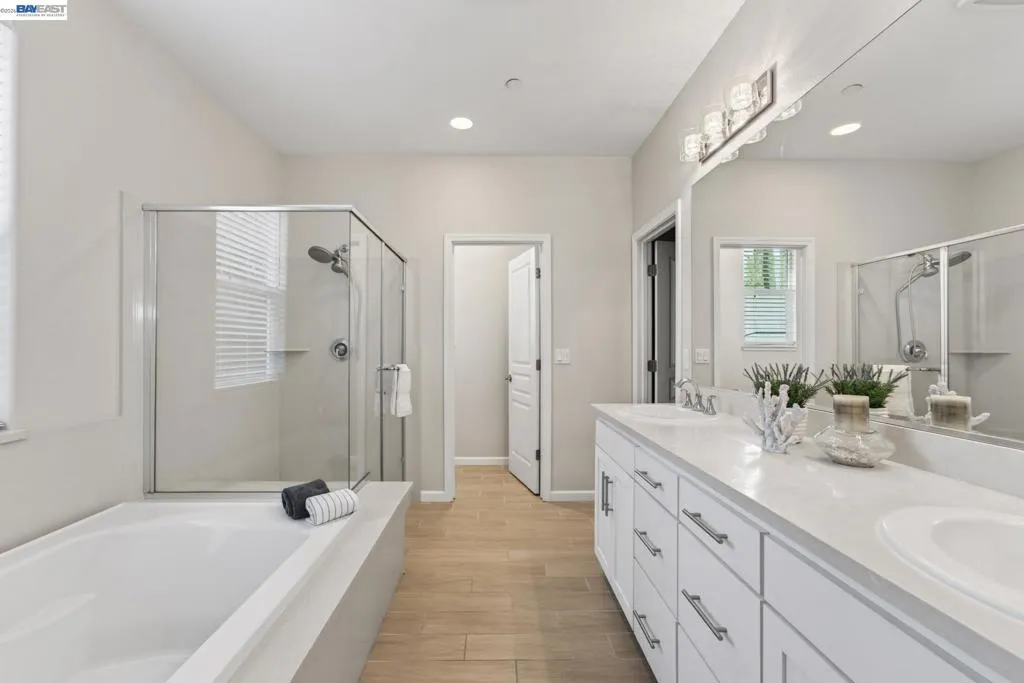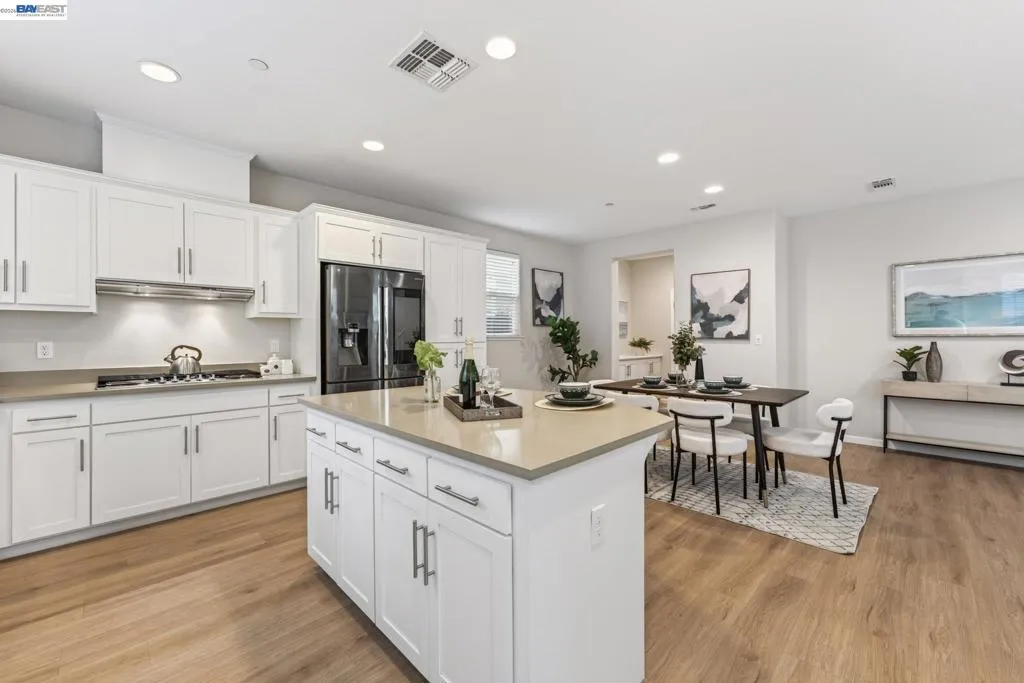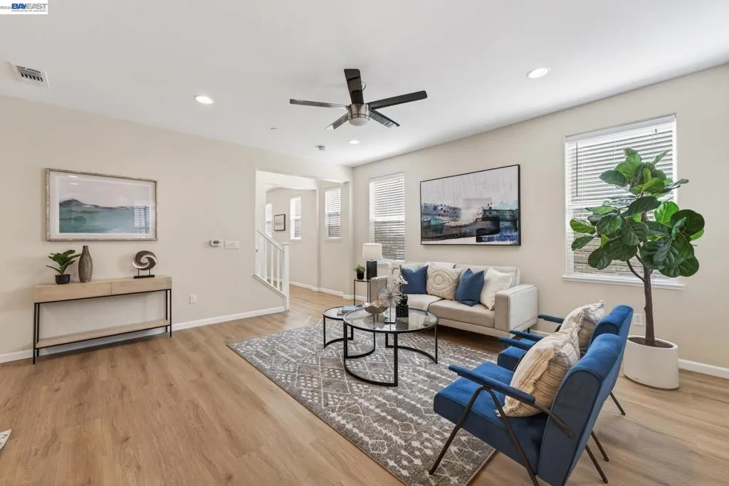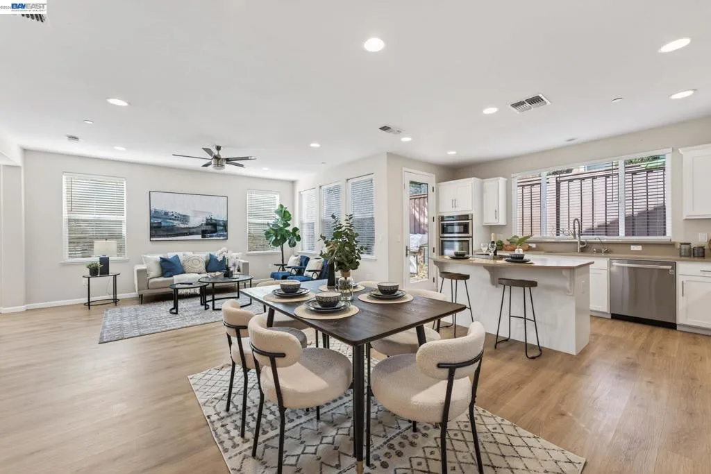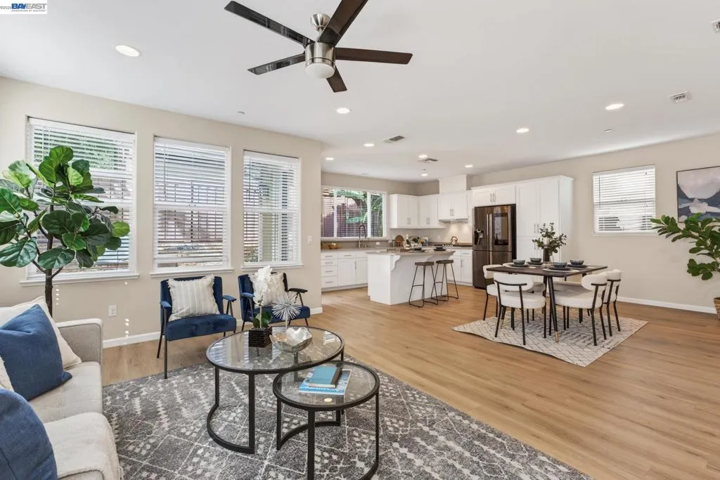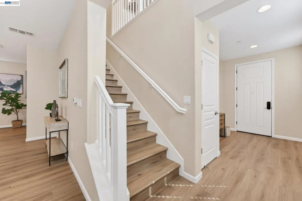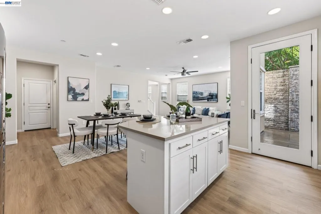 Welcome to 6862 Baird Street in Dublin, a stunning contemporary residence nestled in Dublin’s sought-after Heritage Park community! Built in 2017 by Pulte Homes, this 2,008-square-foot sanctuary perfectly captures the essence of modern California living, offering a sophisticated blend of style, comfort, and convenience. The home’s open-concept main floor greets you with warmth radiating from light colored walls, and beautiful light wood flooring. This bright and airy layout creates a seamless flow between the living, dining and kitchen, making it an ideal space for both quiet family evenings and large holiday gatherings. At the center of the home is a gourmet designer kitchen, featuring white shaker cabinets, elegant tan colored quartz countertops, stainless-steel appliances, ROI and a large central island. The second level opens into a spacious, versatile loft that can easily serve as a high-tech home office, media lounge, or children's play area. This floor also houses three light filled bedrooms, 2 bathrooms and a laundry, all designed with clean lines and modern finishes to provide a private, peaceful retreat. Epoxied 2-car garage comes with shelvings, Tesla charger and water softener system. This beautiful home is perfectly positioned for easy access to top-rated Dublin schools, parks, shopping, library, museum, the scenic Iron Horse Trail, I-580 freeway and the Dublin/Pleasanton BART station!