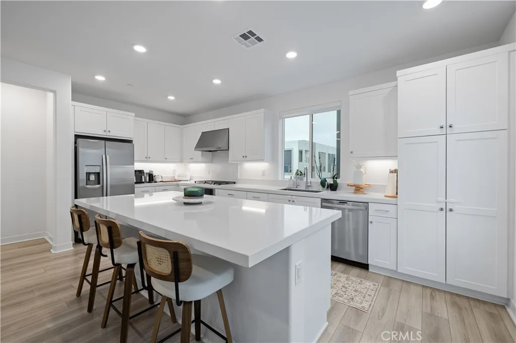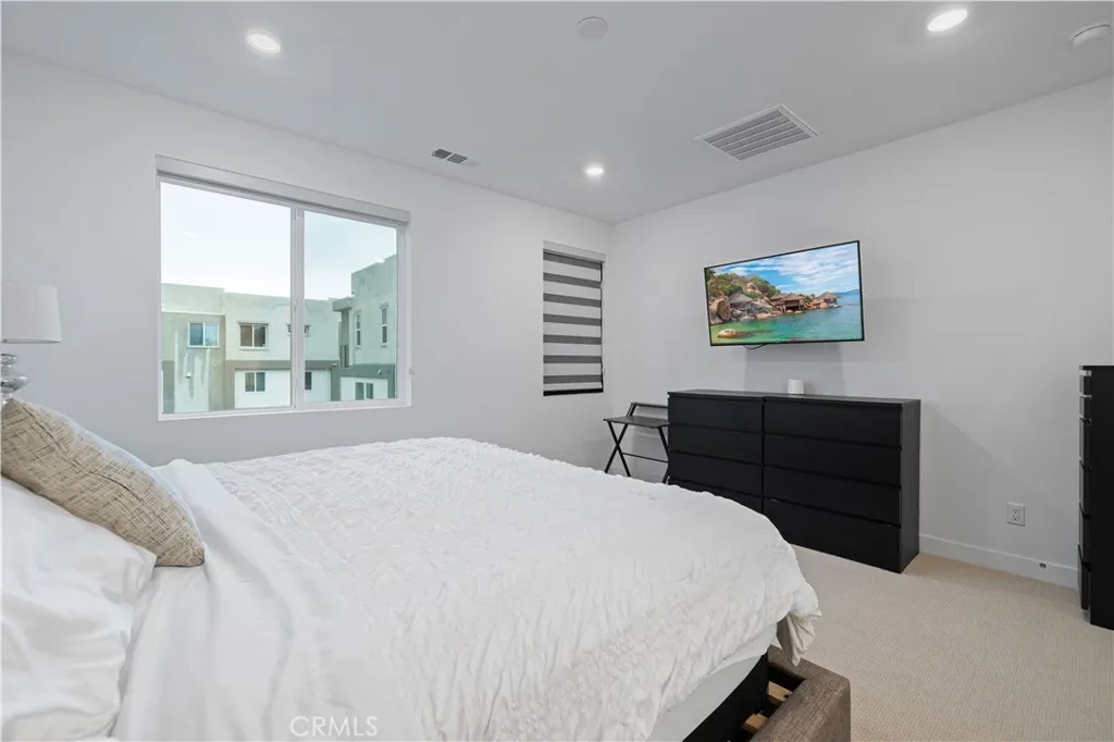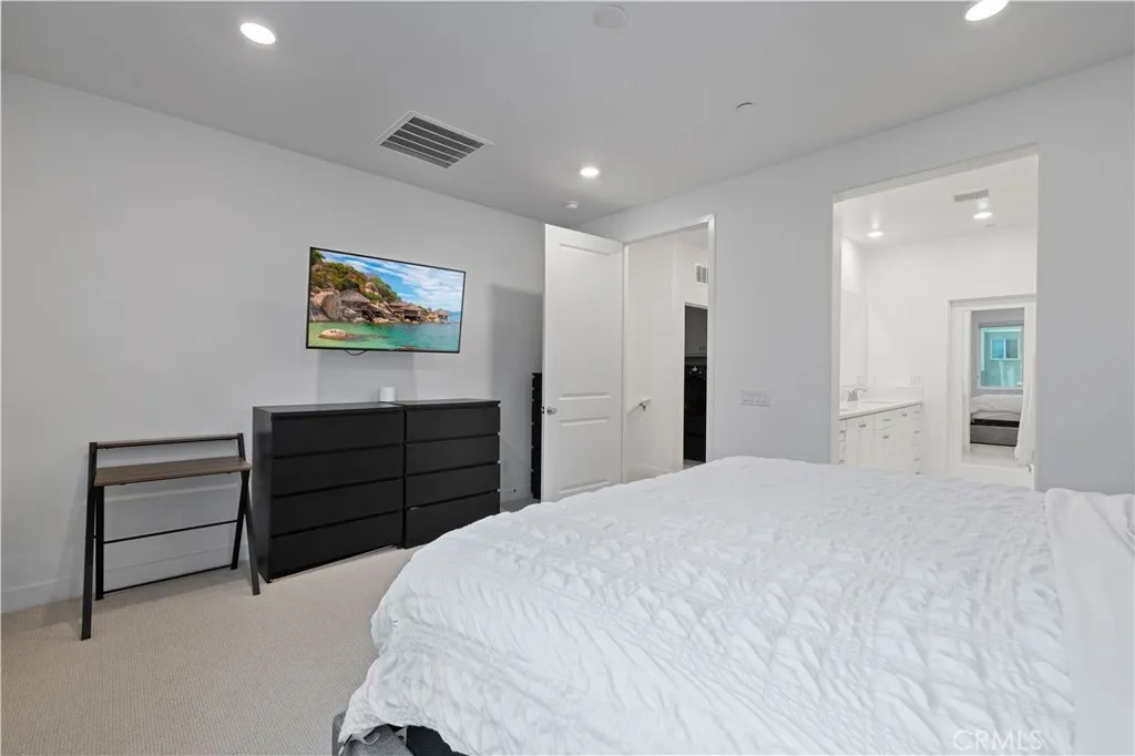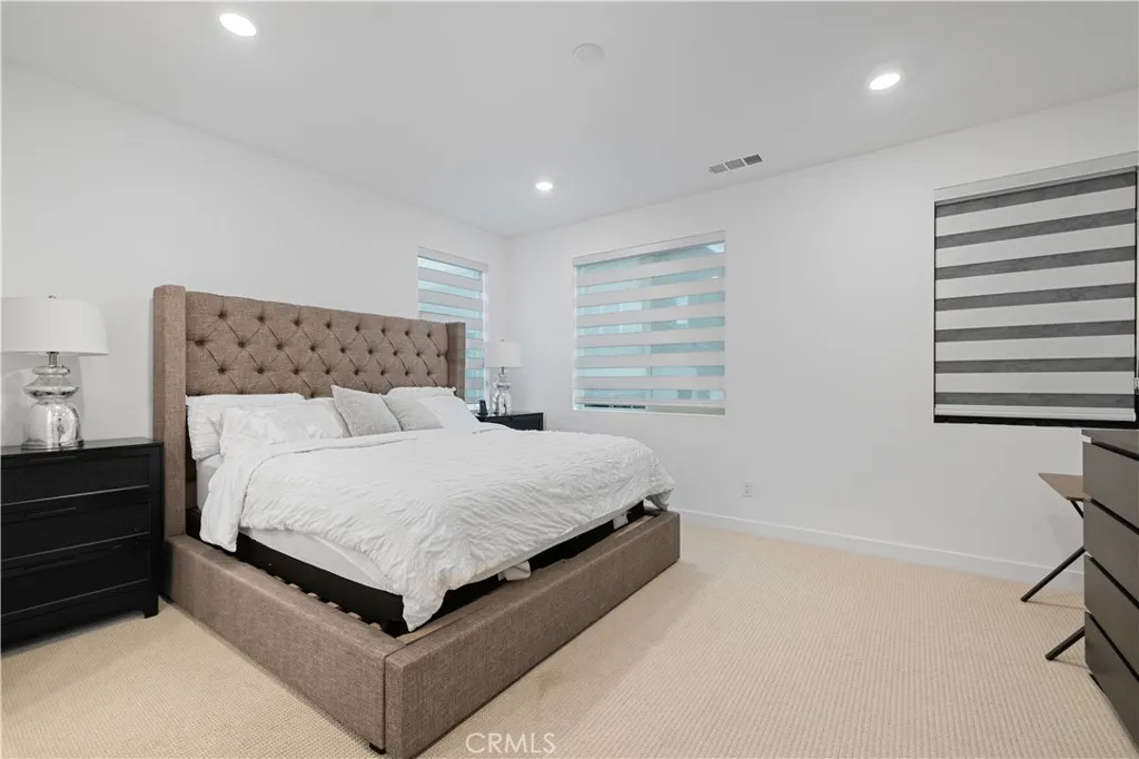 Turnkey Luxury in One of the Best Locations in the Community. Built in 2024, this stunning contemporary 3-bedroom home sits on a prime corner lot with no front neighbors, offering rare privacy and unobstructed hillside views. Perfectly positioned directly next to the brand-new community park, this location delivers extra space, openness, and a setting that’s hard to replicate. Inside, every bedroom features its own private ensuite bath with quartz countertops, creating comfort and convenience throughout. The open-concept main level is designed for both everyday living and entertaining, showcasing a chef’s kitchen with a large quartz island, stainless steel appliances, and abundant cabinetry, all flowing seamlessly into the expansive living room. Stackable sliding doors open to a spacious balcony, blending indoor and outdoor living effortlessly. A versatile main-floor office can function as a third bedroom, ideal for guests, a home workspace, or flexible living. The primary suite offers a true retreat with a walk-in closet and a spa-inspired bathroom featuring dual sinks and quartz finishes. This home is loaded with thoughtful upgrades, including owned solar with battery backup, a whole-home water purification system, and an EV charger — providing efficiency, sustainability, and long-term savings from day one. The garage has been finished with epoxy flooring and custom built-in cabinetry for a clean, polished look. Luxury vinyl plank flooring runs throughout, creating a seamless and elevated feel in every room. Additional features include Wi-Fi-controlled appliances and A/C, recessed lighting, upstairs laundry, zebra blinds, and a welcoming front patio. Located in a vibrant community with multiple pools, a clubhouse, gardens, and parks, and zoned for some of the top-rated schools in the Santa Clarita Valley, with easy freeway access for commuting. Modern design, premium upgrades, and a location that truly stands out — this is one you don’t want to miss.
