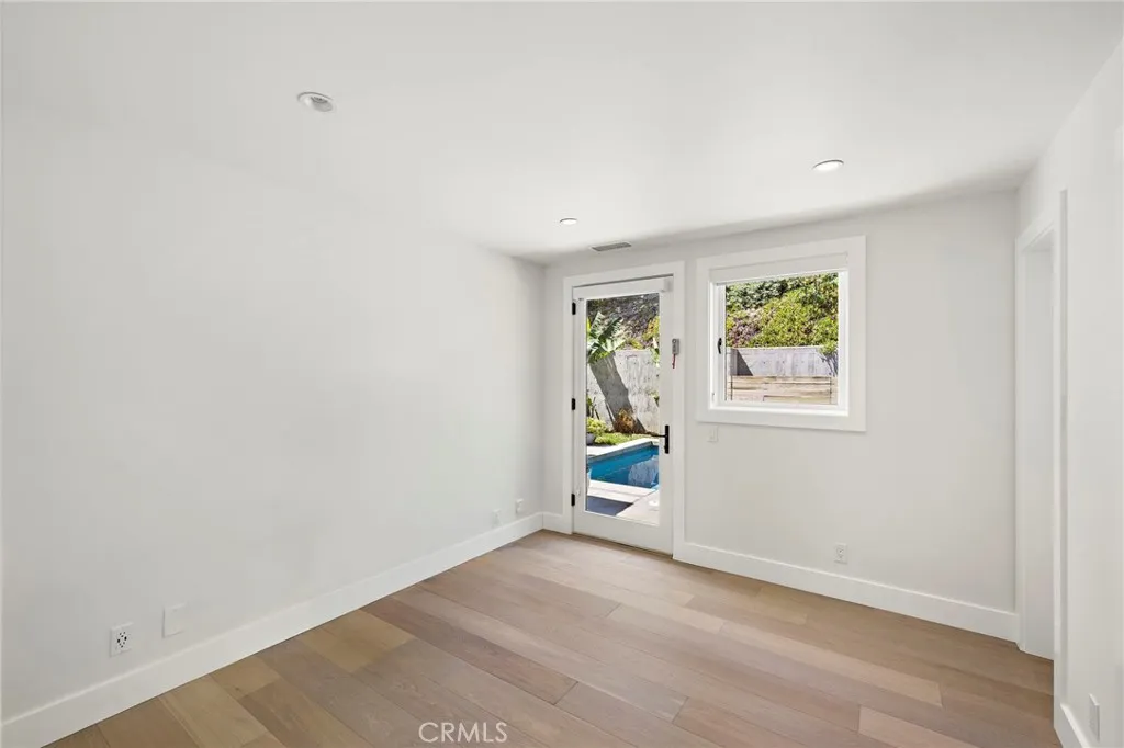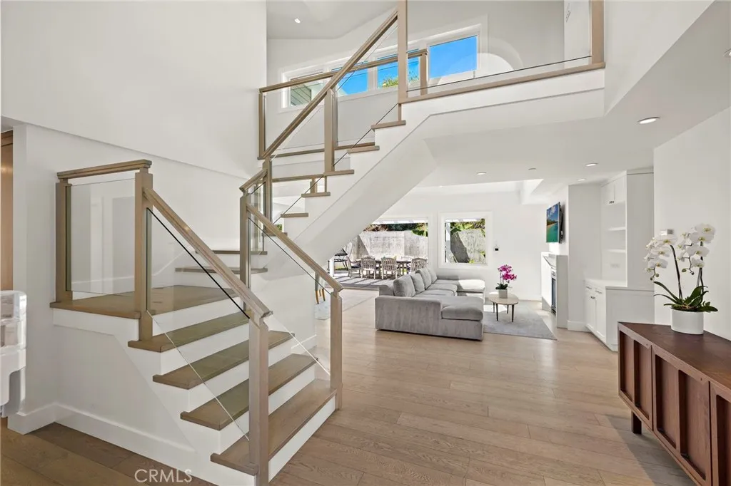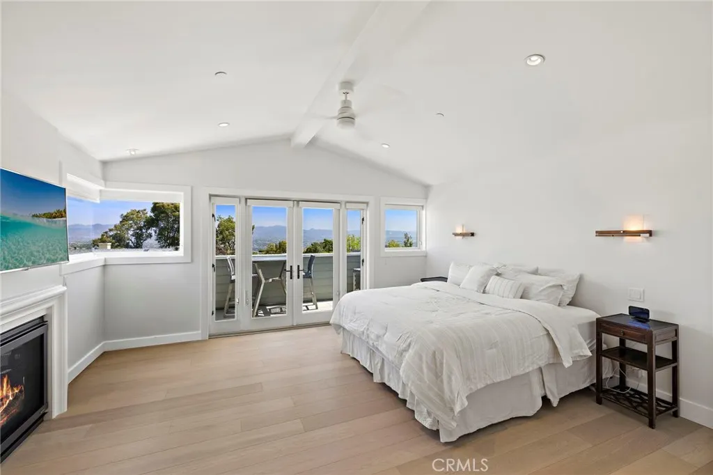 Set on a private lot in Laguna Beach’s coveted Top of the World neighborhood, this newly built pool home offers a rare blend of thoughtful design, quality craftsmanship, and mountain views enjoyed from the front-facing rooms throughout the home. Designed by Gregg Abel in 2016, the residence spans 6 bedrooms and 3.5 bathrooms, showcasing a refined yet welcoming aesthetic throughout. A charming Dutch door opens to soaring ceilings and a light-filled living room, where skylights, custom built-ins, and one of two fireplaces create a warm and inviting atmosphere. Bi-fold doors connect the space to the backyard, creating a seamless indoor/outdoor flow. Beyond the bi-fold doors, the backyard serves as a private sanctuary, thoughtfully designed for both relaxation and entertaining. A covered patio offers generous space for gatherings, while a saltwater pool and spa complete the outdoor setting. The open-concept layout transitions beautifully from the living room to the dining area and into a chef’s kitchen, complete with quartz countertops, an expansive island with breakfast bar seating, a high-end appliance package, and beautiful custom built-ins. The main level includes a bedroom with a full en-suite bath, a powder room, and an additional bedroom that also functions perfectly as a flexible living space or teen hangout. Upstairs, three secondary bedrooms are thoughtfully laid out, including one with a private balcony, along with a well-appointed hall bathroom featuring three sinks and a spacious walk-in shower. The primary suite is a true retreat, highlighted by vaulted ceilings, a fireplace, private balcony, and picture windows that frame sweeping mountain views. The spa-inspired primary bath includes a freestanding soaking tub and a separate walk-in shower. Located just moments from Top of the World Elementary, Thurston Middle School, Alta Laguna Park, and several hiking and biking trails, the home also offers convenient access to downtown Laguna Beach and the coastline. This is a rare opportunity to own a newer-construction pool home in one of the area’s most sought-after hillside communities.