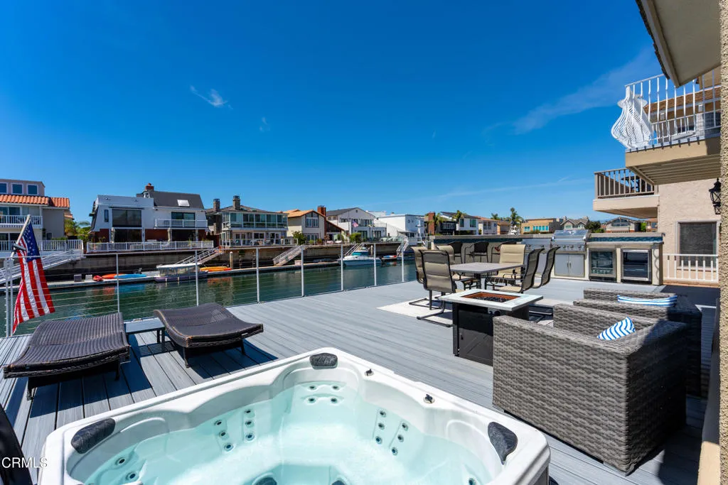 From the moment you arrive, you're greeted by exceptional curb appeal, lush tropical landscaping, warm architectural tones, and a beautifully designed entry that sets the tone for what's inside. Beautifully appointed 3 bed, 3 bath offering ~2,100 sq ft of light-filled living space on the water. Upstairs, all bedrooms provide privacy, including a spacious primary suite with direct access to a private balcony overlooking the water. The kitchen is equipped with stone countertops, center island, and stainless steel appliances, flowing seamlessly into the main living area with a cozy fireplace. Whether you're hosting sunset dinners, enjoying a quiet morning coffee, or gathering around the fire feature under the stars, this space delivers an unmatched coastal lifestyle. Additional highlights include a 45-ft private dock, fully paid solar, EV charging, and a new deck that offers a functional, open layout designed for comfort and coastal living. Ideally located just minutes from beaches, dining, and harbor amenities--experience the ultimate coastal lifestyle.