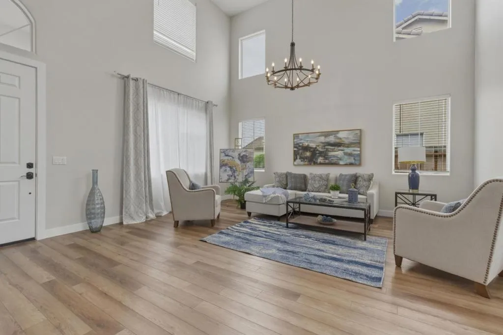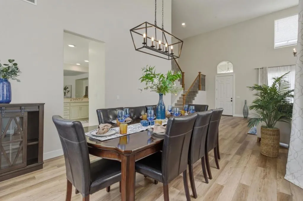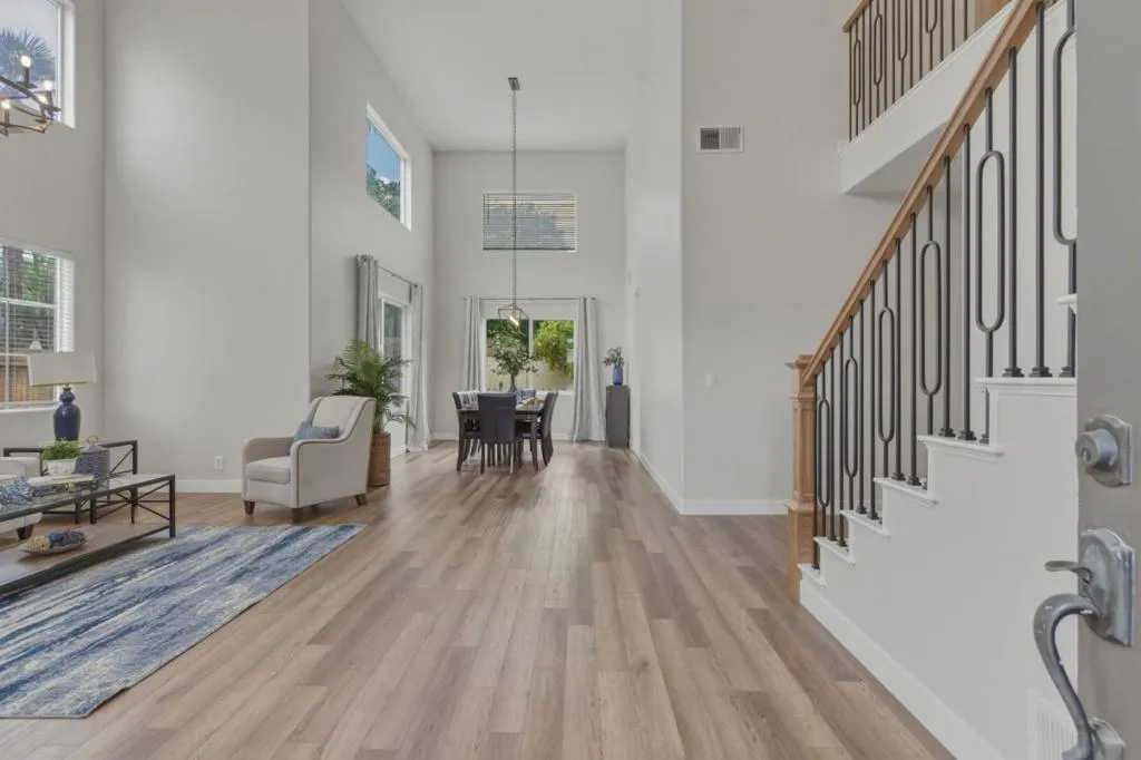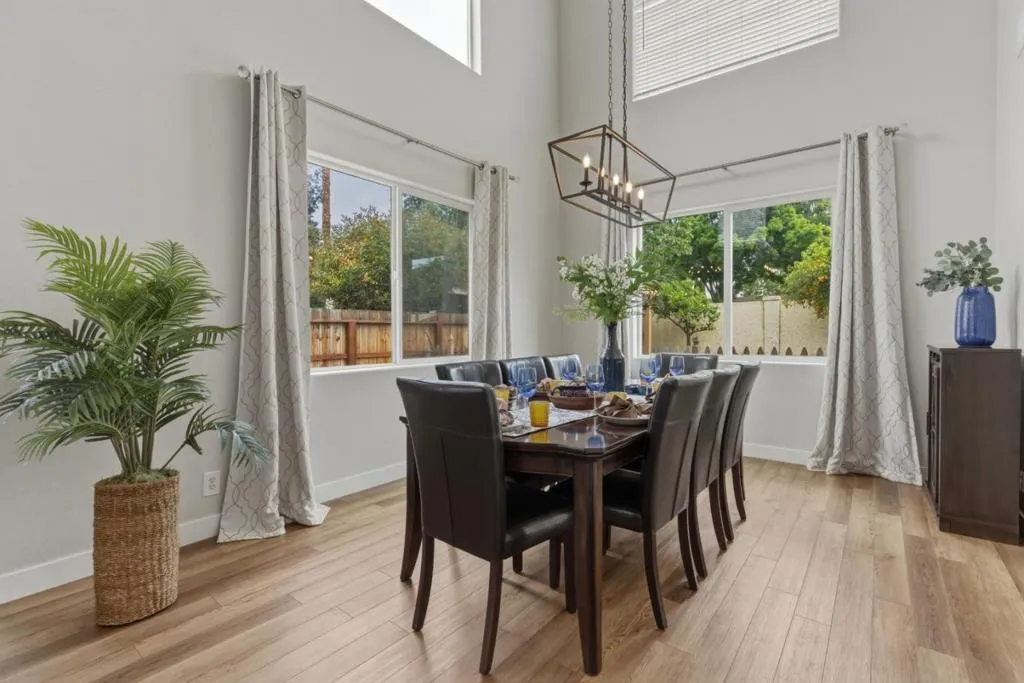 Located in the highly sought-after Scotts Ranch communityknown for its quiet streets, minimal traffic, and strong neighborhood feel. Just minutes from Target, Ladd Lane Elementary, and a neighborhood that truly shines during the holidays.This beautifully updated home offers approximately 3,010 square feet of versatile living space. The curb appeal is undeniable with fresh exterior paint, manicured landscaping, a three-car garage, ample parking, and a charming front sitting area. Enjoy the benefit of a 33-panel owned solar system. Inside, a grand formal living and dining area features soaring ceilings, expansive windows, and abundant natural light. The updated kitchen with stainless steel appliances flows seamlessly into the spacious family room with a cozy fireplaceperfect for everyday living and entertaining. The main level includes a full bedroom and updated bathroom with a walk-in shower, ideal for guests or multi-generational living. Upstairs offers 3 additional bedrooms with custom closet enclosures and remodeled bathrooms. The primary suite features faux wood tile flooring, a soaking tub, fireplace, walk-in closet, and a stunning walk-in tile shower. The backyard is designed for relaxation and entertaining, complete with a gazebo, garden areas, and mature fruit trees.