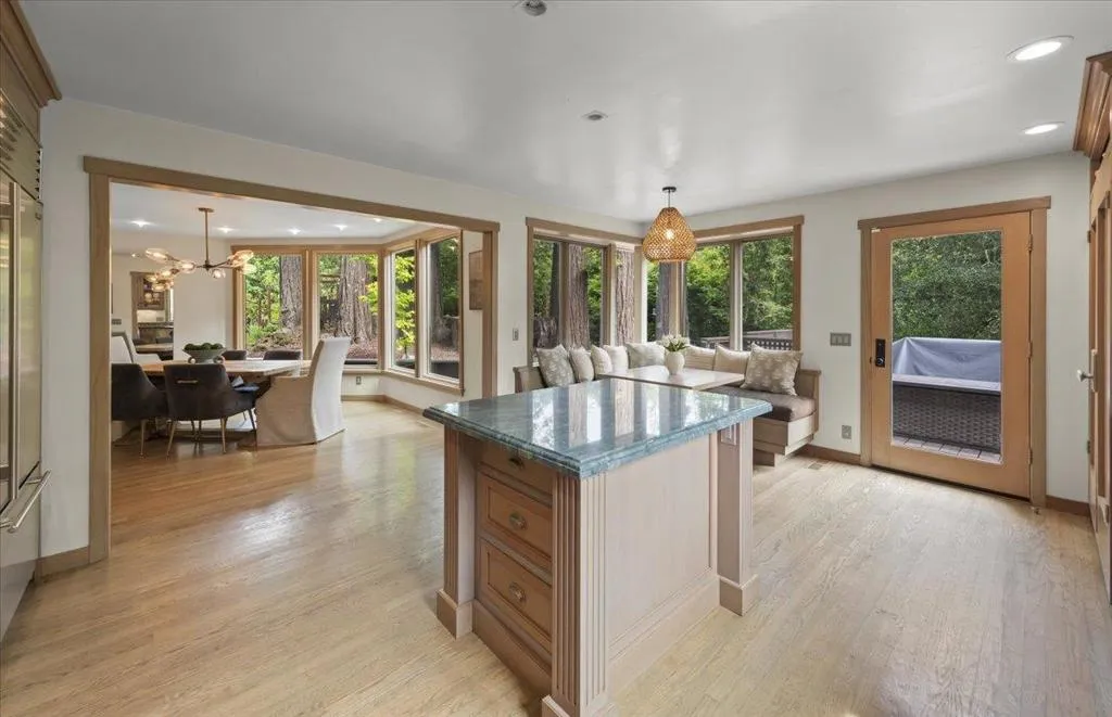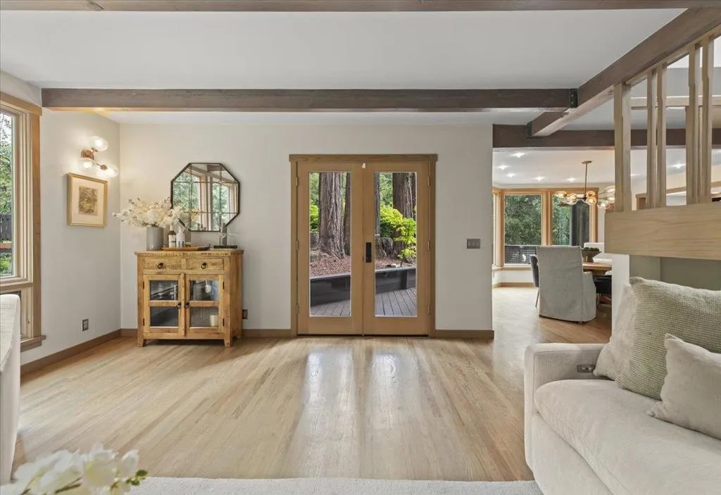 Escape.. to your own private retreat, where luxury meets nature-nestled among serene trees yet just a short drive to Silicon Valley & the coast & close to town. This stunning home is designed for seamless indoor-outdoor living, with expansive windows bring in natural light and bring the beauty of the outdoors in. At the heart of the home, the gourmet kitchen shines with sleek granite countertops, a gourmet Wolf gas range with French top and double ovens, and a spacious pantry, perfect for everything from casual mornings to unforgettable gatherings. Rich hardwood flooring throughout, adding warmth and sophistication to every room. Unwind in the breathtaking living area, where a striking granite-encased fireplace creates a cozy focal point, all set against peaceful, tree-lined views for your perfect backdrop for relaxing evenings. With ample parking for your RV, boat, or multiple vehicles, plus a versatile finished basement ideal for a separate home office, gym, or creative space, this property truly has it all. Experience privacy, luxury, and convenience! This is more than a home, its a lifestyle.
