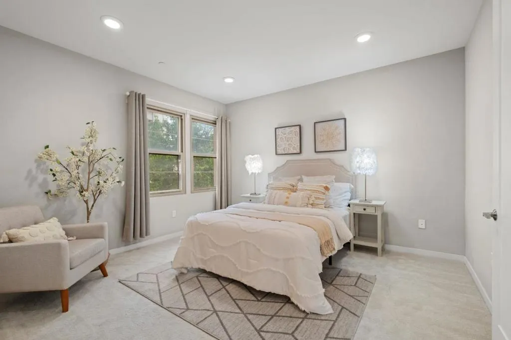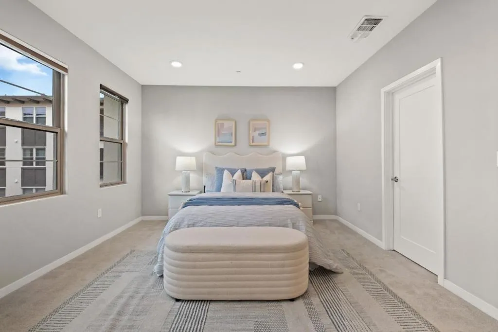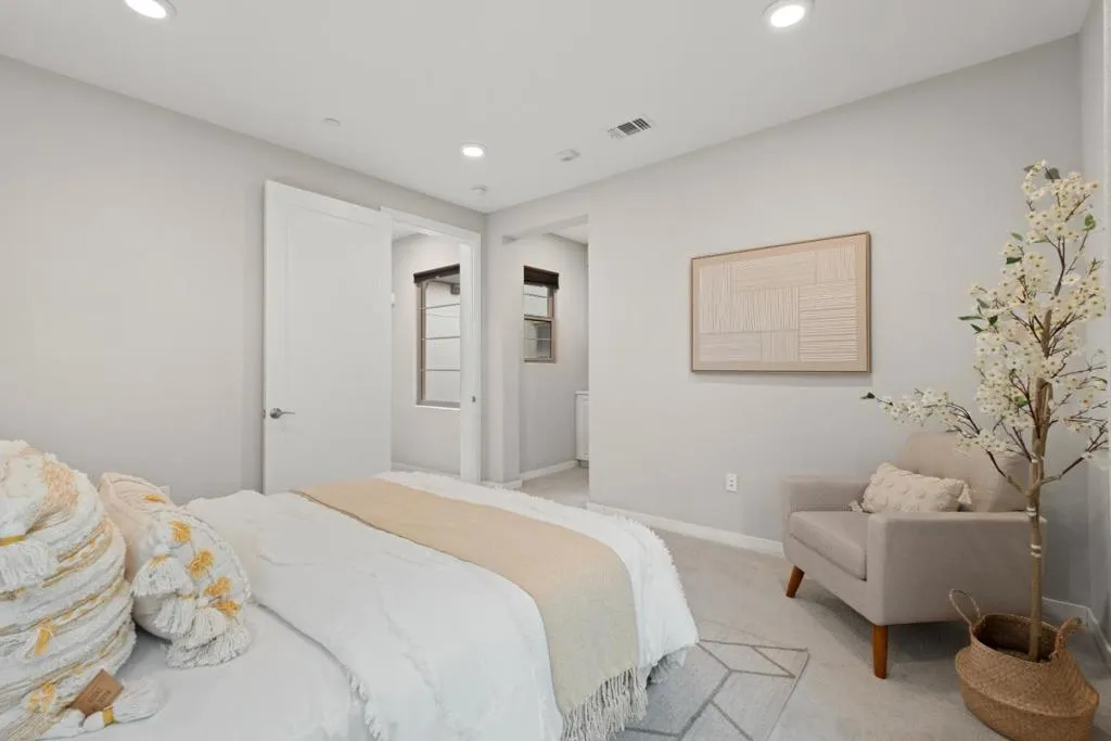*Set within a Community of the award-winning neighborhood, this sought-after Courts design offers an open, light-filled layout with limited shared walls. *The main living area showcases expansive windows that fill the space with natural light. *The open-concept kitchen seamlessly connects to the dining & living areas, featuring a large center island, ample cabinetry, stainless steel appliances & extensive storage. Adjacent built-in cabinets & a dedicated pantry area. *A spacious bedroom on the second floor offers versatility, perfect for guests, a home office, or multi-generational living. The primary suite is well-proportioned and comfortable, with an ensuite bath featuring dual sinks, a soaking tub, and a glass-enclosed shower. *Additional highlights include a 2-car garage, in-unit laundry, recessed lighting, & well-maintained finishes, plus a private balcony/patio. *Community amenities include a clubhouse, BBQ area, playground, trails, & parks. Ideally located near San Jose Municipal Golf Course, Sprouts, H Mart, shops, & dining. Easy access to Google Shuttle, BART, Great Mall, & major tech employers like Nvidia, Google, Apple, & Supermicro. Disclaimer: County records show 2 bedrooms; prior seller added a door to the 2nd-floor office & converted it into a bedroom.