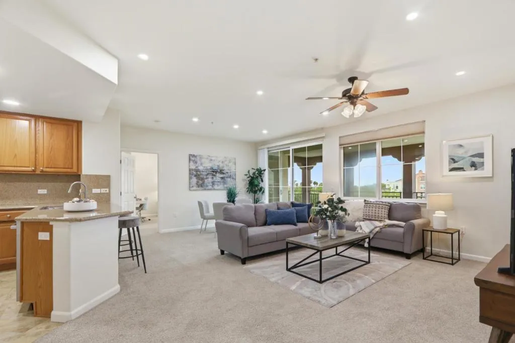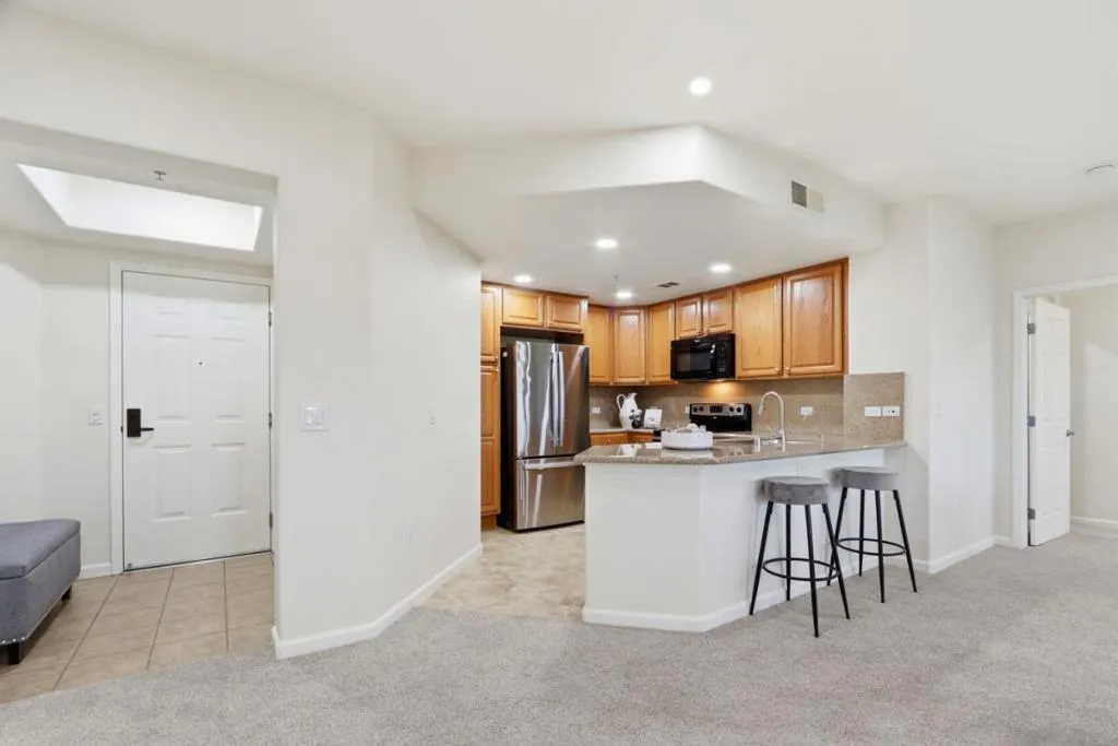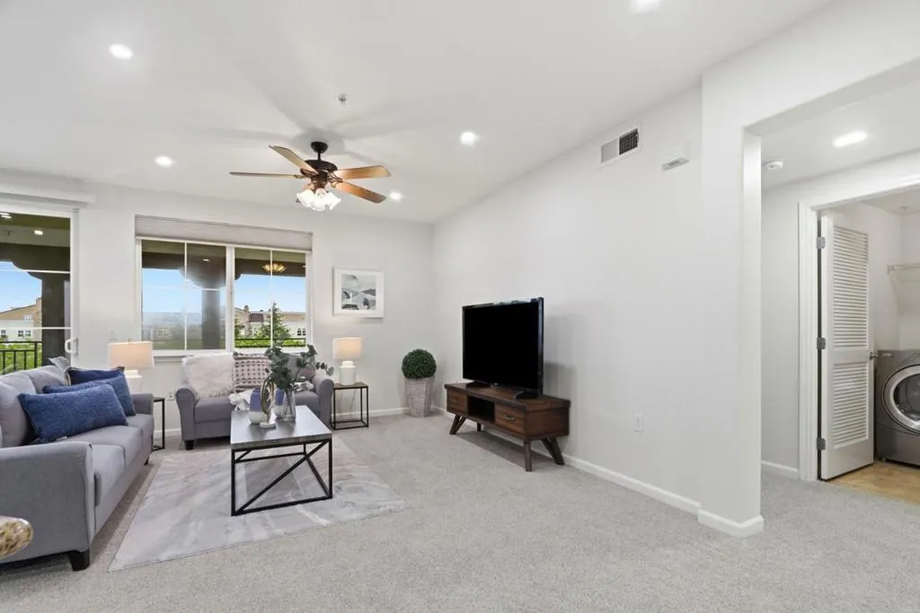 Welcome to updated 2BD/2BA home in prime Milpitas location! Approx. 1,309 sq ft with fresh designer paint and new plush carpet,move-in ready. Gourmet kitchen with granite countertops and stainless steel appliances, including electric oven range, microwave, and refrigerator. Enjoy meals in the designated dining area, featuring a breakfast nook in the living room. This home features a mix of carpet and tile flooring, creating a warm and inviting atmosphere.Take advantage of the indoor laundry facilities for added convenience.Spacious private patio with mountain views and garden bed perfect for relaxing or entertaining. The property also boasts a host of amenities such as a security gate, and a well-maintained heated pool with a spa, cabana, well equipped gym and HOA covers water including hot water in the unit. Close proximity to VTA, BART, Great Mall ,880, 680,Milpitas library makes it more desirable. Don't miss out on this well-rounded and cozy home.