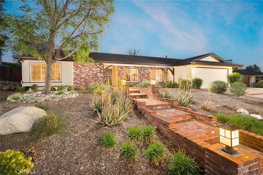 Spacious and beautiful near the Thompson Creek Trail, this home offers a desirable and comfortable layout with many quality original features still in place. The home has a beautiful presence, elevated above the street and approached by an attractive brick walkway surrounded by thoughtfully designed drought-tolerant landscaping. A brick front facade welcomes you to the entry, and adds character and warmth. Inside, a comfortable entry reveals the expansive living room with large corner windows and connects directly to the formal dining room, where built-in cabinetry adds both character and storage. The kitchen has been meticulously maintained, with updated countertops, recessed lighting, a built-in electric stovetop, and an adjacent breakfast nook suited for casual meals. The family room is one of the more notable spaces in the home, centered around a brick fireplace and detailed with rich wood wall paneling. A large built-in bookcase provides additional storage and space for decor. Just off the kitchen and family room, a wet bar with ample cabinetry adds to the home’s functional layout and utility. The home offers four bedrooms and three bathrooms, all off of an extra wide hallway. The bedrooms are well sized, including a large primary suite with space for a sitting area. The ensuite features a generous vanity, sizable shower and walk-in closet. The backyard offers a variety of spaces to enjoy. A brick patio provides a shaded area for outdoor dining, and expands beyond with ample space to entertain or lounge. Meandering pathways lead to different sections of the yard, which include multiple seating areas, a pergola, a fire pit area, an above-ground spa and an intimate space perfect for a bistro table to enjoy morning coffee or an evening glass of wine. The yard is landscaped with drought-tolerant plants and is anchored by a majestic palo verde tree, blanketed in yellow flowers. There is additional side yard space for for potential RV or additional parking, garden beds, or additional storage. This lovely home offers a practical layout, original character, and a sprawling lot in a peaceful, established and sought-after neighborhood.