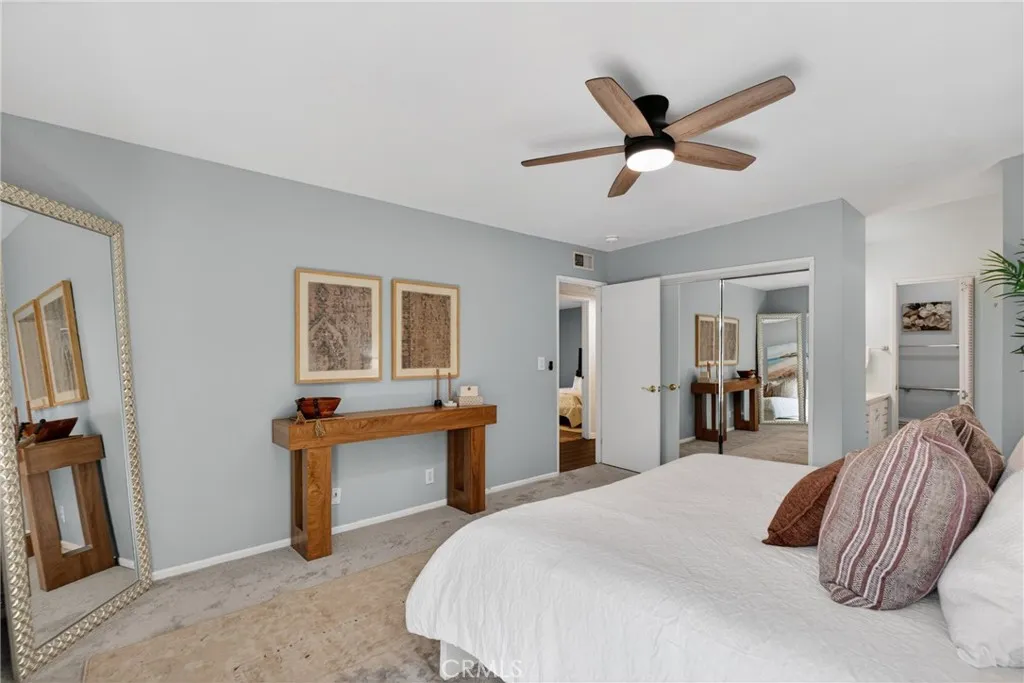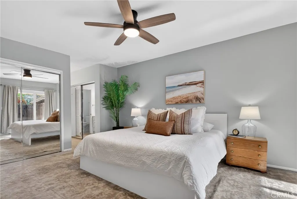 Welcome to single story living at the highly desirable community of the Valencia Racquet Club. This charming 3 bedroom, 2 bath property offers 1,307 sq ft of comfortable living space with numerous upgrades throughout, and lives like a single family home. Step inside to a light and bright living room featuring a gorgeous brick accent fireplace and views of the private backyard. Adjacent dining area offers easy indoor outdoor flow with sliding glass doors leading to the patio. The kitchen is warm and inviting with painted cabinetry, updated hardware, newer sink and faucet, updated stove and vent, and plenty of counter space including a breakfast bar for casual dining. All newer windows, sliders, carpet, vinyl flooring, upgraded fans and light fixtures add to the home’s clean, modern feel. Down the hall are two nicely sized secondary bedrooms, a full guest bathroom with a shower/tub combo and new sink, and the spacious primary suite. The primary bedroom features dual closets and a private enclosed patio, as well as an ensuite bath with walk-in shower, new sink, updated toilet, and hand rails for added accessibility. Additional highlights include: updated A/C and furnace, copper plumbing, newer electrical panel and rain gutters, newer AstroTurf in the front yard, upgraded ceiling fans are found throughout, and a pull-down attic ladder in the garage. The quaint backyard offers a peaceful retreat with a covered patio and no direct neighbors in front, plus plenty of guest street parking. Residents of the Valencia Racquet Club enjoy fantastic amenities including a community pool, spa, tennis courts, sport court, clubhouse, and playground-all with low HOA fees and no Mello Roos. Conveniently located near the 5 freeway, Santa Clarita Park, award-winning schools, shopping, restaurants, and more.