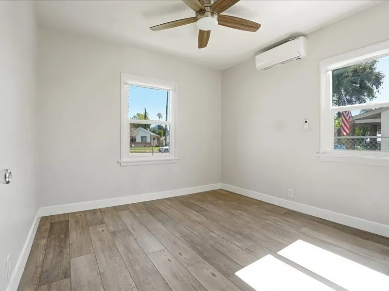 Centrally located in the downtown area of Fontana. Nice tree lined streets. Shopping and parks are nearby. Property has new interior and exterior paint, new windows, new flooring, cabinets, countertops, appliances, and mini split ac system. The home has a two car garage, and a nice long driveway. There is also an outdoor deck in the back yard. Grass in front and back yard. Ready for you.