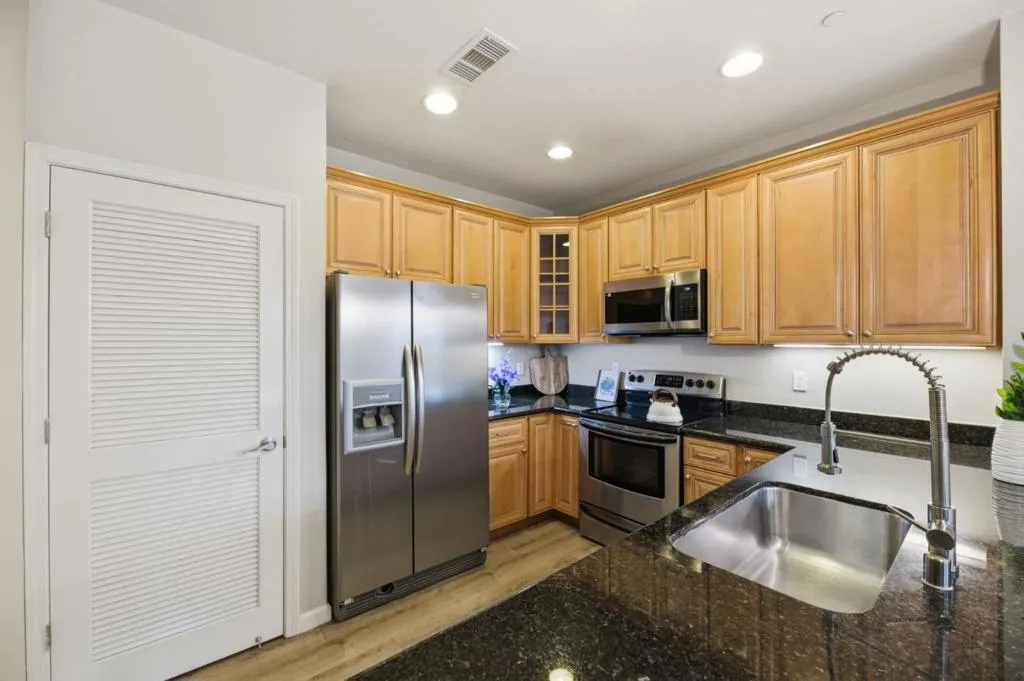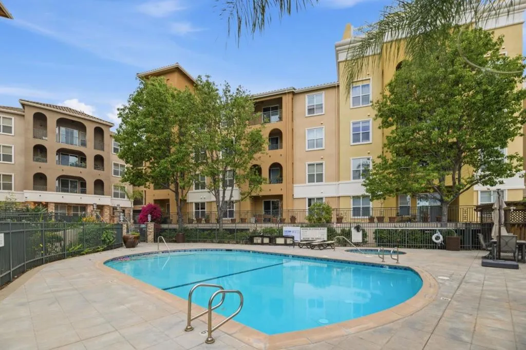 Welcome to Villa Fontana, one of San Jose's most desirable gated condo communities in the heart of Willow Glen. Unit 119 is a ground-floor 2 bed/2 bath, 1,170 SF residence featuring an open-concept layout with high ceilings, cherry hardwood floors, and abundant natural light. The kitchen impresses with granite countertops and stainless steel appliances. Both bedrooms are generous primary suites, each with its own granite-appointed bathroom. Slide open the glass door to your semi-private patio, a rare outdoor retreat with no stairs and no elevator. Two assigned underground parking spaces, in-unit washer/dryer, and central air/heat round out the interior. Resort-style amenities include a pool, spa, fitness center, home theater lounge, community room, and BBQ area, all within a secured, gated community. HOA: $616/month. The Fruitdale light rail station is a 5-minute walk, with direct access to downtown San Jose. Minutes to Santana Row, Valley Fair, I-280, and SJC airport. Zanottos Market is right across the street. This is effortless Silicon Valley living at its finest.