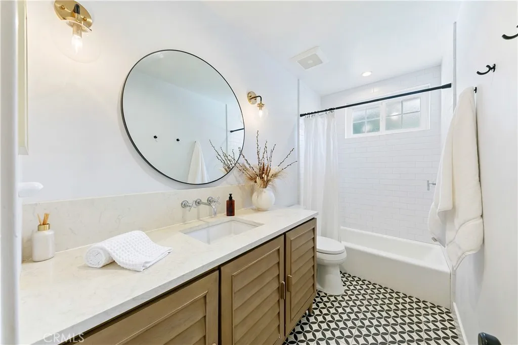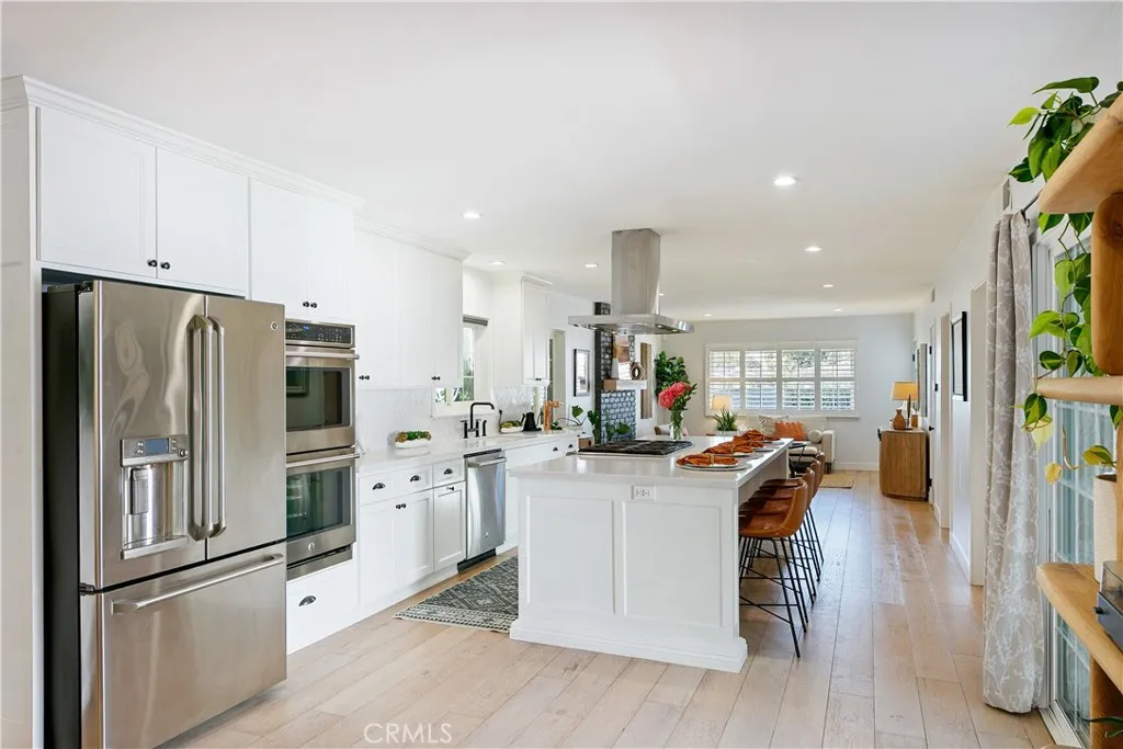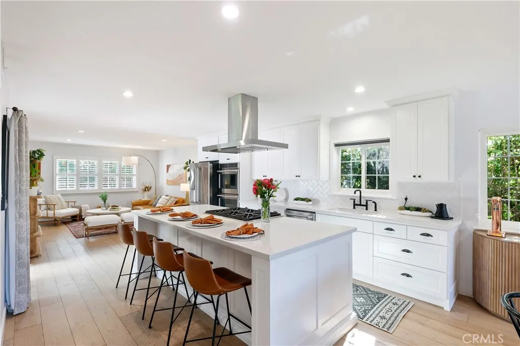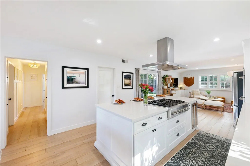 Some homes are built. This one was considered, every detail redesigned for the way people live: gathered together, cooking something amazing, with the afternoon coastal breeze drifting through an open kitchen window. Set in one of West Torrance’s most established neighborhoods, a place where families put down roots and stay, this fully renovated home strikes the rare balance between livability and elevated design. The kitchen is the heart of it all. Designed for the cook who doesn’t want to miss the conversation, it opens seamlessly to the living space and features a central island with seating for four, a full suite of stainless appliances, and stunning Della Terra New Carrara slab counters that bring the feel of a high-end culinary space home. Just off the kitchen, a dedicated laundry room keeps daily life tucked neatly out of sight, and bonus pantry storage means you’ll never run out of room for the things that matter. The living room is anchored by a full run of custom cabinetry that makes a space feel intentional rather than improvised. Wide plank hardwood floors carry you through to a separate front seating area beside the dining room, where a gas fireplace with reclaimed wood mantle is exactly where you want to be on a cool coastal evening with a good book. The main bathroom was renovated with a designer’s eye: hand-painted Zia cement tiles, a quartz countertop with deck-mount faucet, and Kohler fixtures throughout. The primary bedroom is generously sized with ample closet space and enough space to take time away to recharge. Outside, the front yard makes a statement. A beautiful olive tree anchors the space, while lush bay laurel hedges create a natural privacy screen from the street. Two raised planter beds are ready for an herb garden or a full kitchen garden. Out back, brand new low-maintenance turf, pet-friendly, with drainage, gives you a clean, versatile space for entertaining or play. A blackberry bush and rose garden line the side yard. The infrastructure matches the aesthetic: tankless water heater, copper and PEX plumbing, automatic sprinklers, 240V garage outlet for your EV, and pre-wired and plumbed for A/C when you want it. One mile to Redondo Beach. Minutes to everything. Ready for whatever comes next.