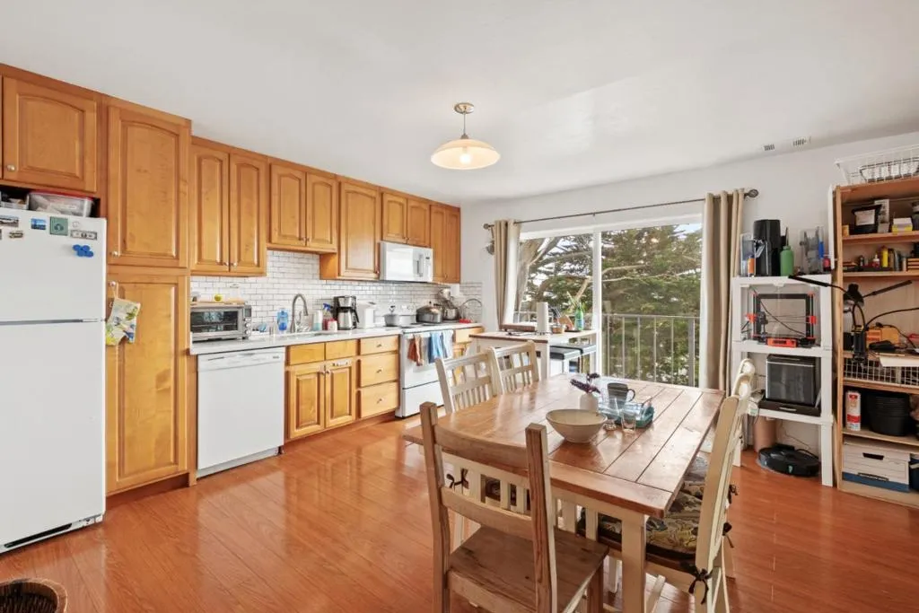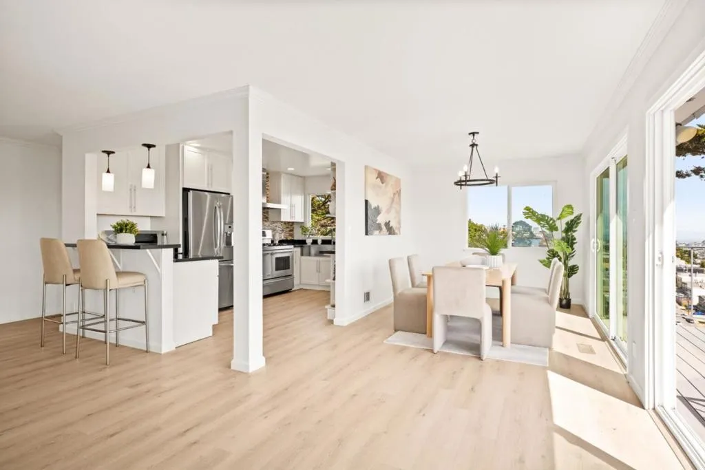 Perched on a hillside in San Francisco's Sunnyside neighborhood, 339 Melrose Ave offers sweeping Bay to ocean views & exceptional potential. This move in ready 3 level home features 5 bedrooms total & 3 baths, plus 2 kitchens w/a flexible layout suited for multigenerational living, renovation, or reimagining. The upper level showcases a spacious living area w/fireplace, large windows, & direct access to a view deck, filling the home w/natural light. The updated open stadium kitchen & dining area flow easily for everyday living & al fresco decked entertaining. The primary suite serves as a private retreat with an ensuite bath and walk-in closet, complemented by a second bedroom with its own walk-in closet, a hall bath, and a third bedroom or office. The 2 Lower Levels offer 2 additional bedrooms & a full kitchen, recreation space, along with an updated bath, a versatile space for guests, office, or extended living. The house stands on a lot that offers the possibility for terraced gardening, multiple patios, or playground areas. Generous sq ft & strong bones create a rare opportunity to customize a view property in a prime location. Sunnyside offers a quiet residential feel with easy access to Glen Park, Noe Valley, BART, & major commuter routes.