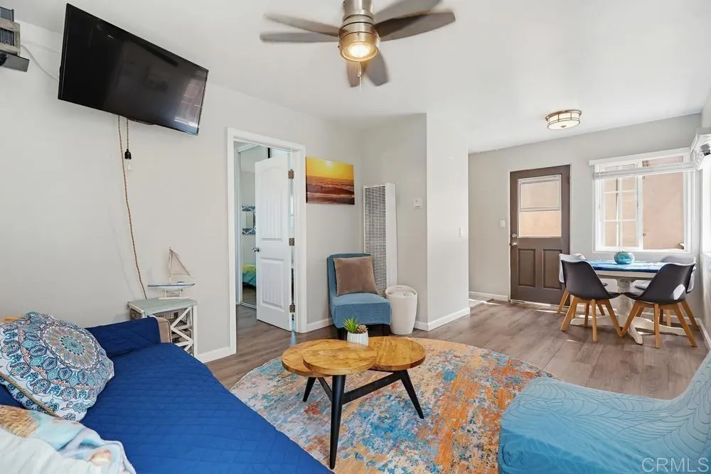 Beautiful Mission Beach home with ocean views and a fully attached second unit. Ideal as a duplex or single-family home with ADU. Located just five homes from the beach, this property offers the perfect blend of coastal living and income potential. The main residence features 3 bedrooms, 2.5 bathrooms, and over 1,900 square feet of living space. Highlights include vaulted high-beam wood ceilings, abundant natural light, plantation shutters, dual-pane windows, a spacious loft, ample storage, 2 fireplaces, and attached 2 car garage. Enjoy indoor-outdoor living with an enclosed patio, 2 decks, and 2 balconies capturing the ocean breeze, views and Sea World fireworks. The second unit offers a private 1 bedroom, 1 bathroom layout with its own entrance and balcony, granite countertops, stainless steel appliances, and washer/dryer hookups. Perfect for rental income, guests, or extended family. All within walking distance to restaurants, shops, and just a few blocks from Belmont Park and the iconic roller coaster. Live in one, rent the other, or enjoy the entire property as your own beach retreat.
