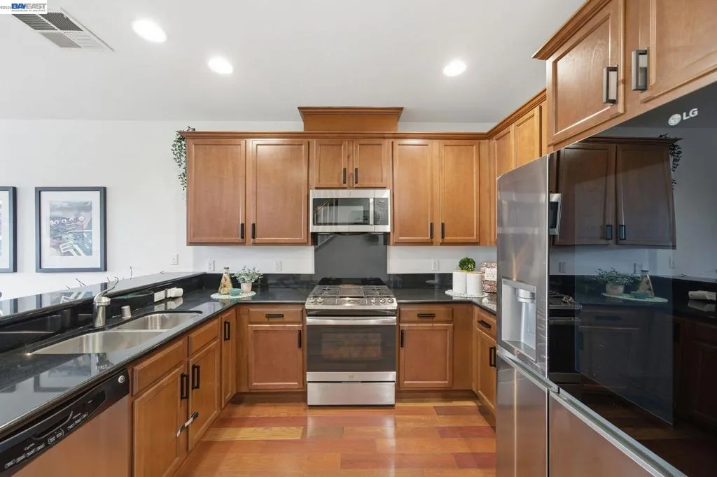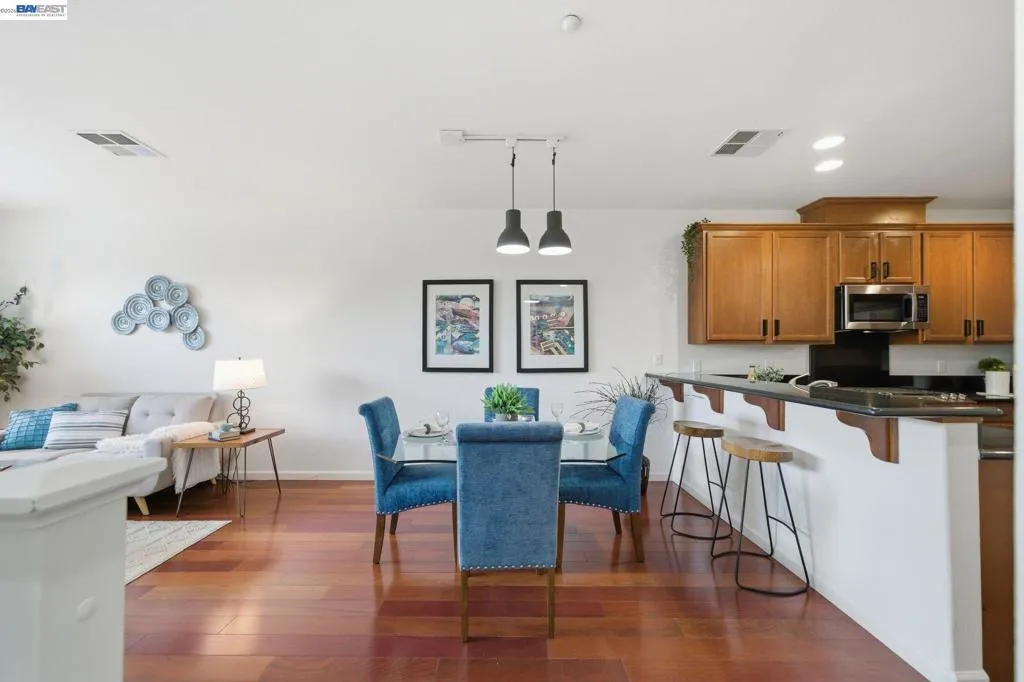 Located in Hayward’s prestigious Cannery Park development, this beautiful Spanish Revival townhome-styled condo has the features today’s discerning buyers are looking for. Upscale details throughout, awesome commute access, walking distance to Hayward’s revitalized downtown … it’s all here. As you enter, you immediately notice the spacious living area with beautiful flooring that flows throughout. The 2-car garage is on this level, along with a powder room and laundry room. Up the stairs is the main living area, including the upscale kitchen with solid surface counters and ample cabinetry, making meal preparation both efficient and enjoyable. The living spaces are designed to maximize both functionality and flow, offering a welcoming environment for relaxing or entertaining and the overall attention to detail and upscale finishes provides a sense of peace and tranquility. Natural light fills the home, enhancing the clean lines and modern finishes. Picture yourself sharing meals with family and treasured guests alike! One bedroom is on the main level for convenience, with a second on the upper level that includes its own bathroom. The primary suite is on top level as well for quiet and privacy and features a beautiful en-suite bathroom, a large closet and ample room to relax and unwind. With its central Hayward location, this home provides easy access to major commuter routes, BART, and key employers throughout the East Bay. Nearby, you’ll find local parks, shopping centers, and dining options, as well as the vibrant downtown Hayward area. Outdoor enthusiasts will relish easy access to nearby trails and recreational spaces, with everyday conveniences just minutes away. Plus, enjoy community-hosted movie nights and fun events that add joy to your new lifestyle here! This is an excellent opportunity to own a turn-key home in a community known for its accessibility and urban lifestyle. With its combination of upgrades, location, and livability, 1012 Martin Luther King Jr. Drive is only missing one thing … YOU!