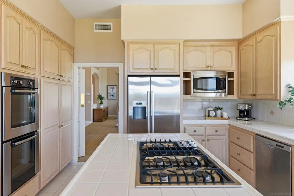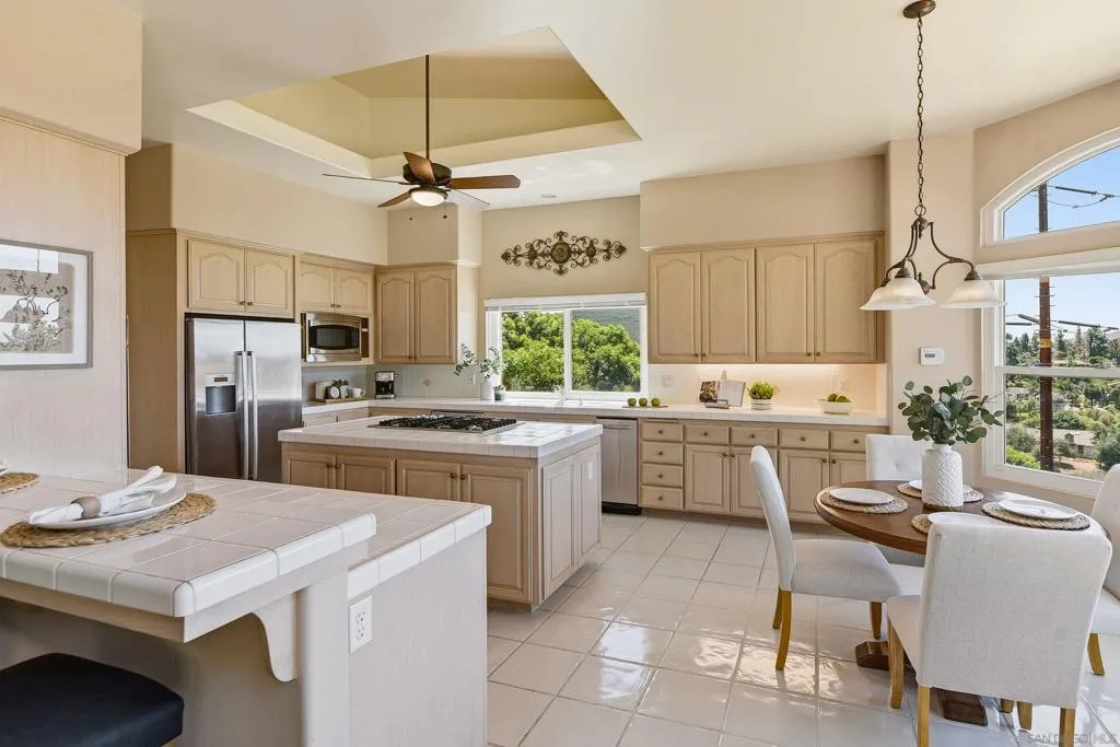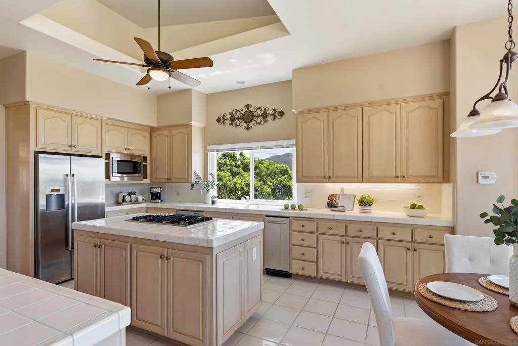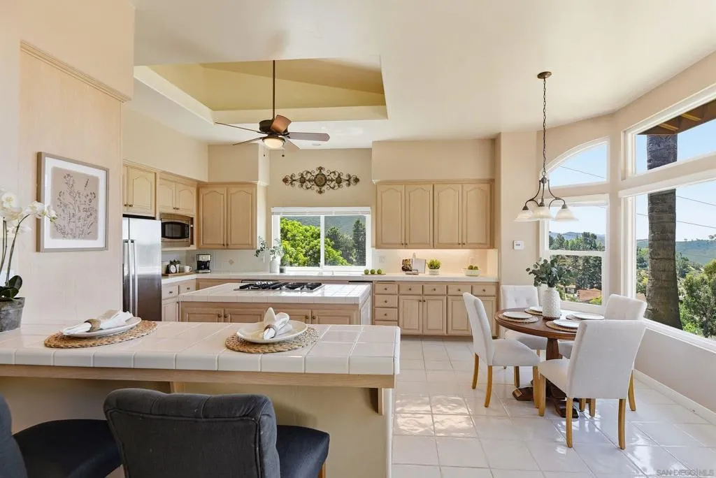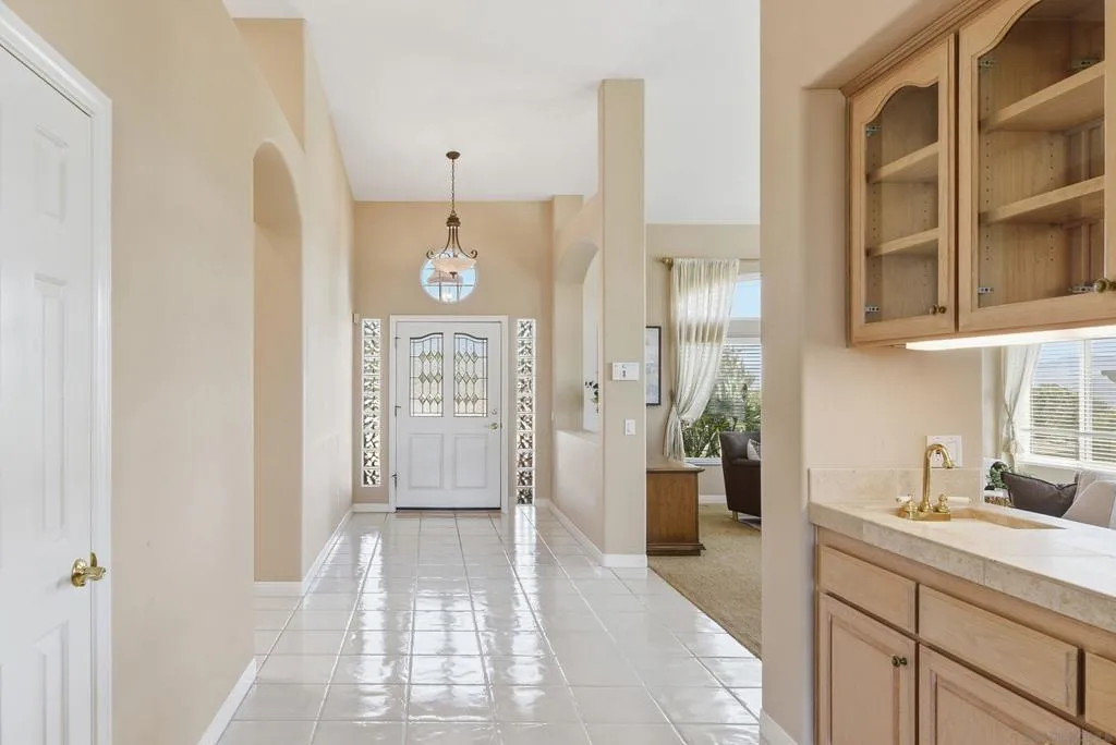 Tucked away in the coveted southwest enclave of Escondido, this single-level retreat delivers the kind of privacy, scale, and serenity that’s increasingly hard to find. Set on an expansive .62-acre lot, the property offers a quiet, elevated setting with sweeping views toward Lake Hodges—so captivating, you may not even notice the PebbleTec pool at first glance. Spanning approximately 3,018 square feet, the home is thoughtfully designed with space exactly where you want it. Soaring ceilings create an open, airy feel, while the 21x16 family room anchors the home with comfort and versatility for both everyday living and entertaining. The oversized 22x14 kitchen is a true centerpiece, featuring a massive island that invites gathering, conversation, and effortless hosting. The 25x16 primary suite offers a generous and private retreat, complemented by three additional bedrooms and well-appointed bathrooms that provide flexibility for family, guests, or work-from-home needs. With its rare combination of usable land, functional layout, and tranquil surroundings—all just minutes from conveniences—this is Southwest Escondido living at its finest.