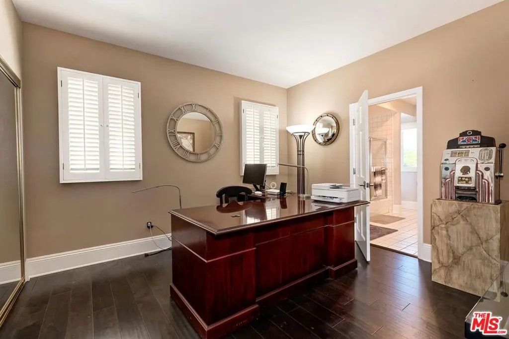 Step into this Studio City feel good gem on a storybook street in Colfax Meadows! Immaculate Traditional with a Contemporary Flair! Manicured curb appeal from the street to the back wall.. Grand scale from when you hit the double door entry. Two story, double wide entry hall, a stately living room with soaring ceilings and windows with impressive fireplace mantle. A dinner party sized dining room and butler's pantry transitions into a marvelous cook's Kitchen with attached spacious family room separated by a casual dining space. What a feeling of elegance this home gives you! A stainless kitchen with subzero and wolf appliances.. impeccably appointed with the finest materials and color schemes. Tile floors and beautiful window treatments throughout the first floor. A wine bar with built in refrigerator, powder room, separate maids suite and laundry room round out the lower floor. Impressive landing staircase calls you to the second floor with wood floors, 2 more bedroom suites, and 2 more with adjoining bathroom (Jack and Jill). A spacious primary bedroom suite has tile floor with a third fireplace and built in night stands, double walk in closets and his and hers bathroom that it's new owners will be fighting over which one is more beautiful. Generous bedroom sizes and some wood flooring too! The lush entertainers backyard boasts a covered patio with fan. You will enjoying the relaxing in the shade with views of the pebble tech pool with raised jacuzzi. Immaculate yard, Impressive brickwork, hardscape and block walls surround the yard for privacy. Located in sought after Colfax Meadows, the Carpenter school district and walking distance to Tujunga Village, this home has so much to offer!