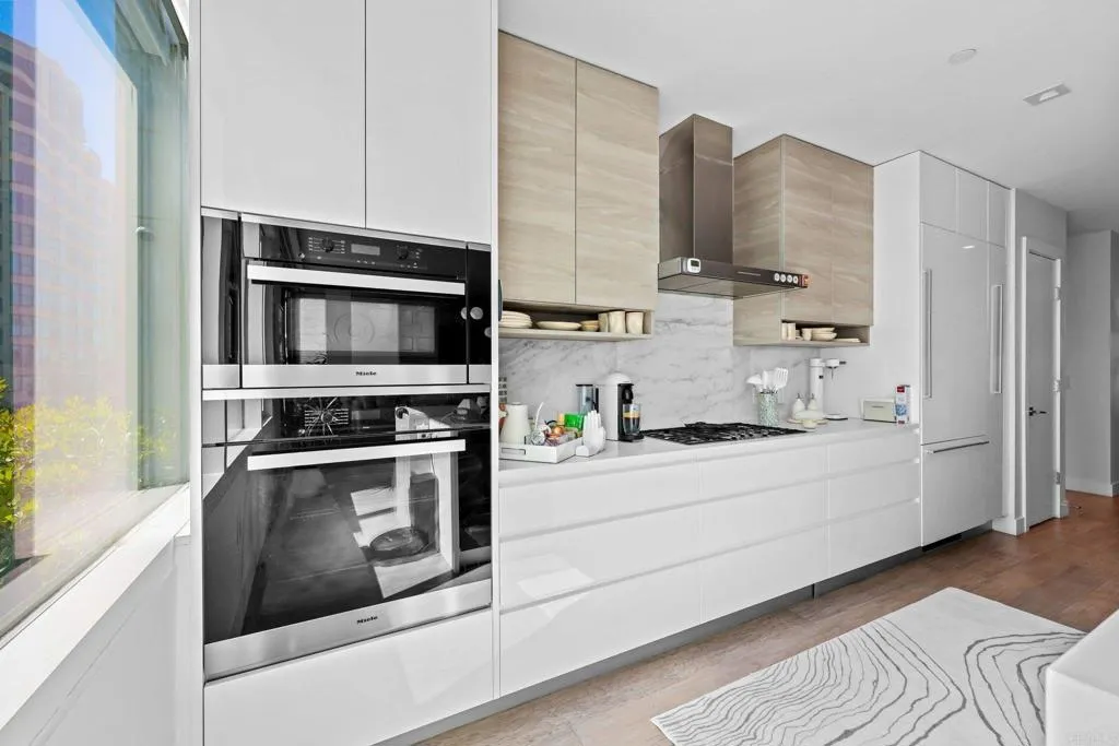 Welcome to sophisticated urban living at 41 West in Bankers Hill, one of San Diego’s most coveted boutique addresses. This elegantly designed residence offers a seamless blend of modern luxury, thoughtful design, and effortless comfort. The open-concept layout is framed by expansive windows that let natural light through, highlighting refined finishes and a clean, contemporary aesthetic. The chef-inspired kitchen featuring high-end Miele appliances flows gracefully into the living and dining areas, creating an ideal space for both elevated entertaining and everyday living. The spacious primary suite provides a private retreat with a well-appointed bath and generous closet space. A second bedroom offers flexibility for guests, a home office, or additional lifestyle needs. Set in a premier location just moments from Balboa Park, Little Italy, and Downtown San Diego, this residence delivers unmatched access to world-class dining, culture, and outdoor living. Residents of 41 West enjoy the privacy of boutique living paired with upscale building amenities in a truly walkable, vibrant neighborhood. A rare opportunity to own in one of Bankers Hill’s most distinguished modern communities.