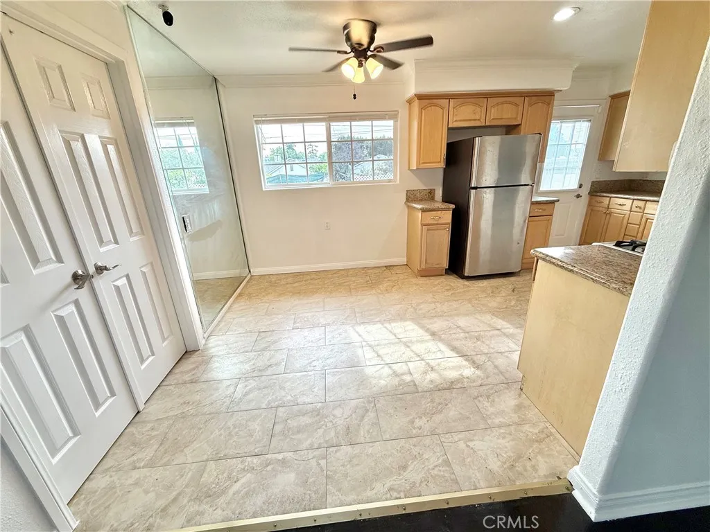 Freshly Updated North Pomona Home in a great neighborhood. Seriously, drive by. and you will even see the RV parking, Mountain Views & Alley Access. Welcome to this refreshed North Pomona home offering versatility and beautiful mountain and valley views. The property has undergone a cosmetic refresh that enhances its bright, clean, move-in-ready feel. Inside, the home now features refinished original hardwood floors throughout the main living areas and 3 of the bedrooms (the fourth has vinyl plank flooring). The entire interior/exterior has been freshly painted for you to move right in. The spacious chef’s kitchen offers granite countertops, a walk-in pantry, and flows seamlessly into the living and dining areas—ideal for everyday living and entertaining. Bathrooms have been remodeled, including a private primary suite with its own bathroom and shower. Additional highlights include dual-pane windows for energy efficiency, custom hallway and bathroom storage, crown molding, a large walk-in closet, and a dedicated laundry room. The home also features a permitted roof installed in 2023. Outside, the exterior has been freshly repainted, complementing recent light repairs and updates. The detached garage has been upgraded with new drywall, recessed lighting, fresh paint, and includes a convenient toilet—perfect for a workshop, entertaining overflow, or future conversion. The garage is securely accessed via a wrought-iron sliding gate from the alley, with RV parking available. Enjoy outdoor space with room for entertaining, gardening, or adding a pool, all while taking in scenic mountain and valley views from both the front and backyard. Located in a desirable North Pomona neighborhood, this home offers a rare combination of fresh updates, functional space.