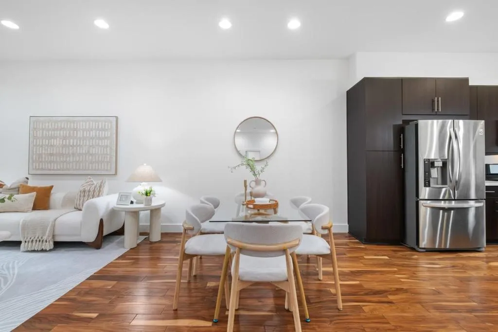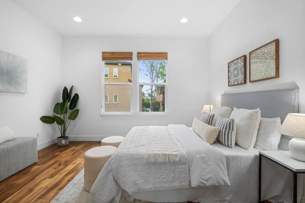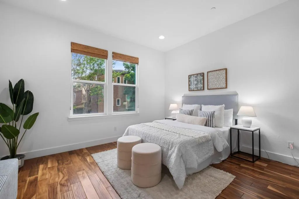 *Desirable layout with main living area, kitchen, and all bedrooms on one level, plus a private ground-floor bedroom with full bath. Former model unit with refined finishes and balanced design. *Bright natural light throughout. Open-concept living area connects to an updated kitchen featuring a large island, ample cabinetry, stainless steel appliances, and new quartz countertops, sink, faucet, and backsplash. *Indoor-outdoor living with two private balconies on the main level, including a garden-view patio with a bi-fold door opening the full wall. Additional private patio on the first floor. *Primary suite includes a walk-in closet. Attached 2-car side-by-side garage with epoxy flooring, Tesla EV charger, water softener, & filtration system. Unobstructed views with good spacing from neighboring units. *Community offers HOA amenities including BBQ areas, playgrounds, & outdoor gathering spaces. *Convenient location near VTA Hostetter Station and BART, with easy access to Costco, 99 Ranch Market, and H Mart. Walking distance to Villa Sport Athletic Club. Zoned for Ruskin Elem, Sierramont Middle, and Independence High (per GreatSchools). Close to major employers like NVIDIA, Google, Apple, & Supermicro. *Disclaimer: County records show 2 bedrooms; first-floor room has no closet.
