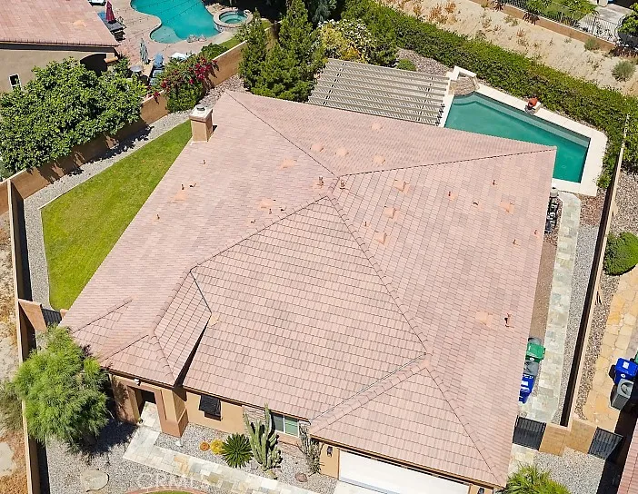 Discover this stunning pool home located in a desirable gated community in Indio. Featuring 5 bedrooms and 3 bathrooms, this spacious residence offers a thoughtfully designed split floor plan ideal for both privacy and functionality. The expansive primary suite overlooks the backyard oasis and includes a luxurious en-suite bathroom with dual sinks, oversized counters, and a beautifully designed walk-in closet with custom wood organizers. Step outside to an entertainer’s dream backyard, complete with a custom pool featuring elegant water elements, a cozy fire pit, mature landscaping, a grassy area, and an oversized covered patio perfect for relaxing or hosting gatherings. Additional highlights include a 2-car garage with brand-new epoxy flooring and a built-in electric vehicle charging system.