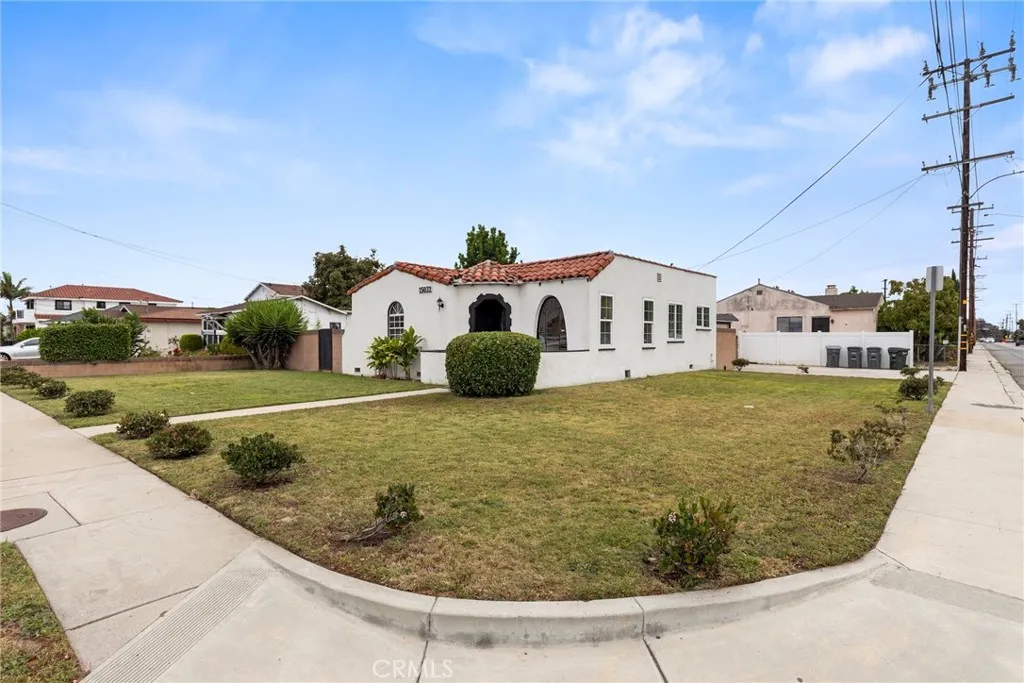 Charming 1930s Spanish-Style Home on Expansive Corner Lot! Welcome to this quintessential 1930s Spanish single-story home, perfectly situated on a massive 7,500+ sq ft corner lot. Full of character and modern updates, this 2-bedroom, 2-bathroom gem offers the best of both worlds. Step inside to an open floor plan featuring classic coved ceilings and abundant natural light. The beautifully updated kitchen boasts white quartz waterfall countertops, custom soft-close cabinetry, and stainless steel appliances—perfect for both everyday living and entertaining. A rare find, this home includes a true primary suite along with a second fully remodeled bathroom, both designed with tasteful finishes. Additional upgrades include dual-pane windows and air conditioning for year-round comfort. Outside, enjoy expansive front and back grassy yards ideal for gatherings, play, or relaxation. The detached bonus room (approx. 300 sq ft, unpermitted) offers incredible flexibility as a home office, gym, or entertainment space—and presents excellent potential for conversion into an ADU for additional income. Parking is no issue here, with a 2-car garage and an extra-long, wide driveway that can accommodate multiple vehicles, RVs, or a boat. Located in the heart of Gardena, you’ll enjoy convenient access to freeways, shopping, dining, and are just minutes from the South Bay beaches, SpaceX, and the Westside. An exceptional opportunity for first-time buyers or anyone seeking space, charm, and versatility in a prime location.