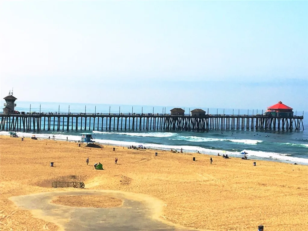 Beach lovers delight! Every day is a vacation at this 2 bedroom / 2 bath townhouse condo which is located on the sand in the only beachfront condominium complex in Huntington Beach. Unobstructed view of the pier and ocean - exit the private gates to the beach and Main Street! Let the sound of the ocean serenade you to sleep each night * Top level condo (nobody above you) with 2 bedrooms downstairs and living area, kitchen and bonus room up * Large living room bank of windows facing the world famous Huntington Beach pier and another row of windows facing the ocean. * Two good sized bedrooms, one with attached full bathroom and the other with a bathroom directly across the hall. Bonus room could be used as 3rd bedroom. * Cute kitchen with newer appliances. * Separate dining room with faux fireplace off kitchen. * Newer dual pane windows. * Portable AC unit provided! * Guard gated community w/ private underground parking spot, storage locker and additional open parking spaces. * Community features pool with ocean/sand views, BBQs, community room, gym and private firepit / picnic area. * Close to award winning schools, shopping, entertainment and major freeways. * Trash, water and community gardener included. **** Sorry, NO smoking or pets permitted ****