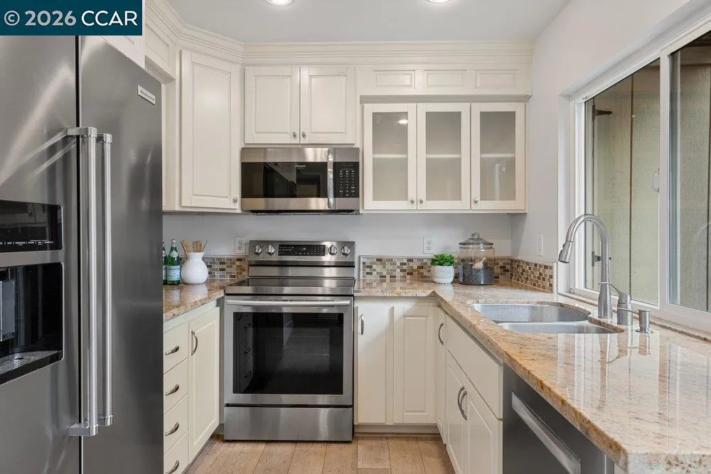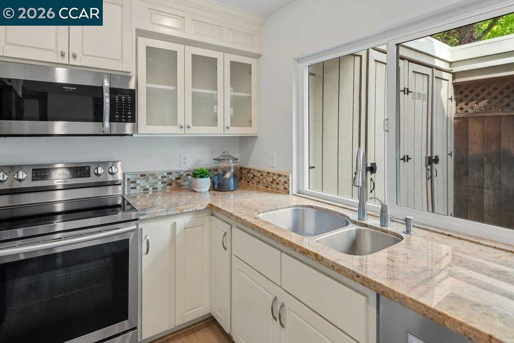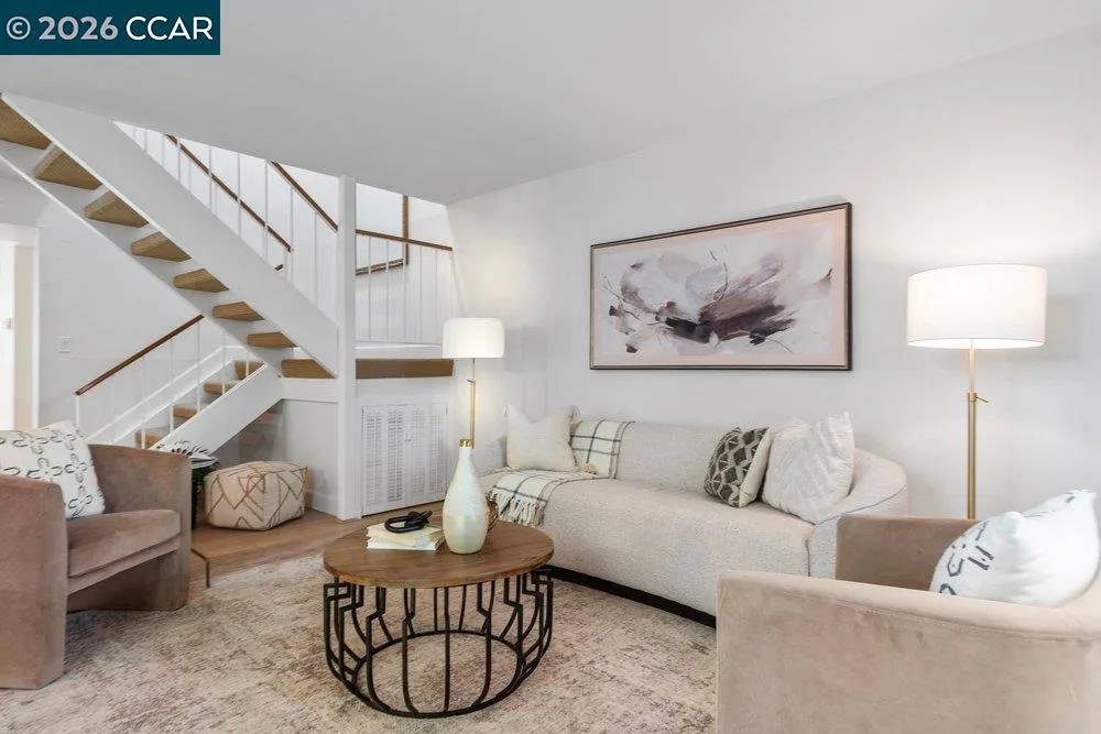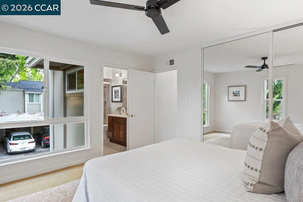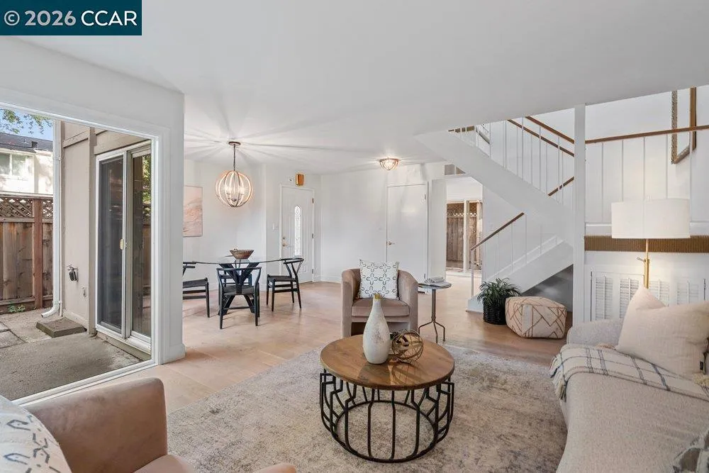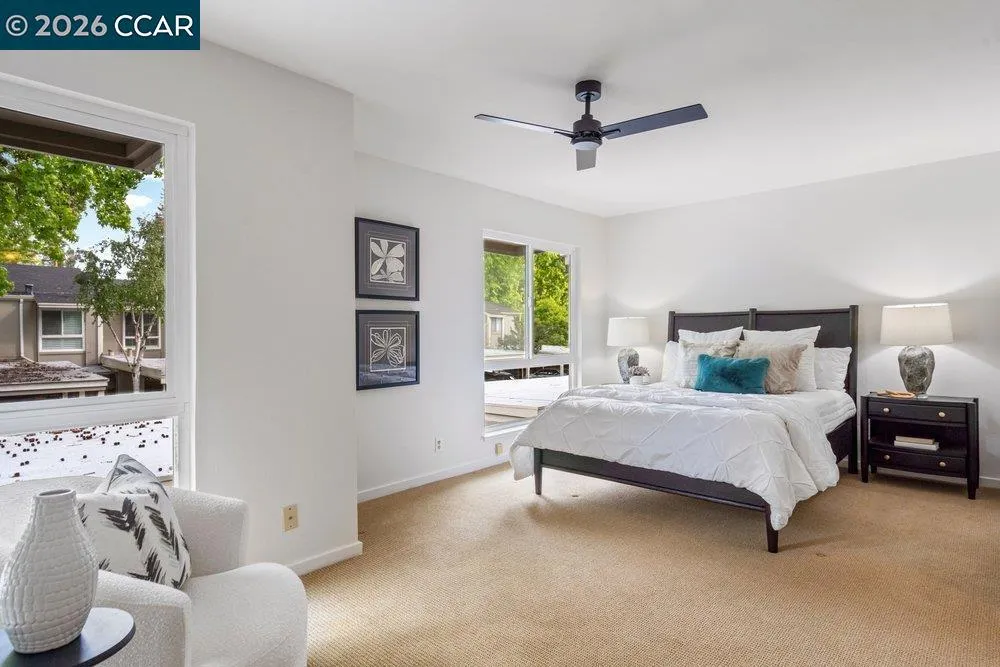 Thoughtfully reconfigured from its original 3-bedroom layout into two spacious en-suite suites, this rare end-unit townhome offers a distinctive blend of comfort, privacy, and flexibility just moments from downtown Danville. Freshly painted throughout and move-in ready, it represents exceptional value for buyers who value both lifestyle and location. The inviting main living area is open and airy, with views to two private patio spaces that provide pleasant options for outdoor seating, container gardening, or simply enjoying the outdoors. A convenient downstairs half bath for guests and a dedicated laundry room add everyday functionality. Upstairs, both generously sized bedroom retreats offer comfort and versatility, each with en-suite style access designed for privacy and ease. Set within a desirable community, this special home enjoys an exceptional location just moments from Trader Joe’s, Starbucks, and Downtown Danville with its popular shopping, dining, parks, and everyday conveniences, while also offering convenient access to Interstate 680 for commuting and regional travel. A two-car carport completes this rare opportunity to enjoy comfort, convenience, and move-in ready value in one of Danville’s most sought-after settings. Upstairs, both generously sized bedroom retreats provide comfort and versatility, while the updated baths and conveniently located upper-level laundry add everyday ease. Set within a desirable community near downtown Danville, this special home also features a two-car carport and exceptional access to downtown. A rare opportunity to enjoy location, livability, and move-in ready value in one of Danville’s most sought-after settings.