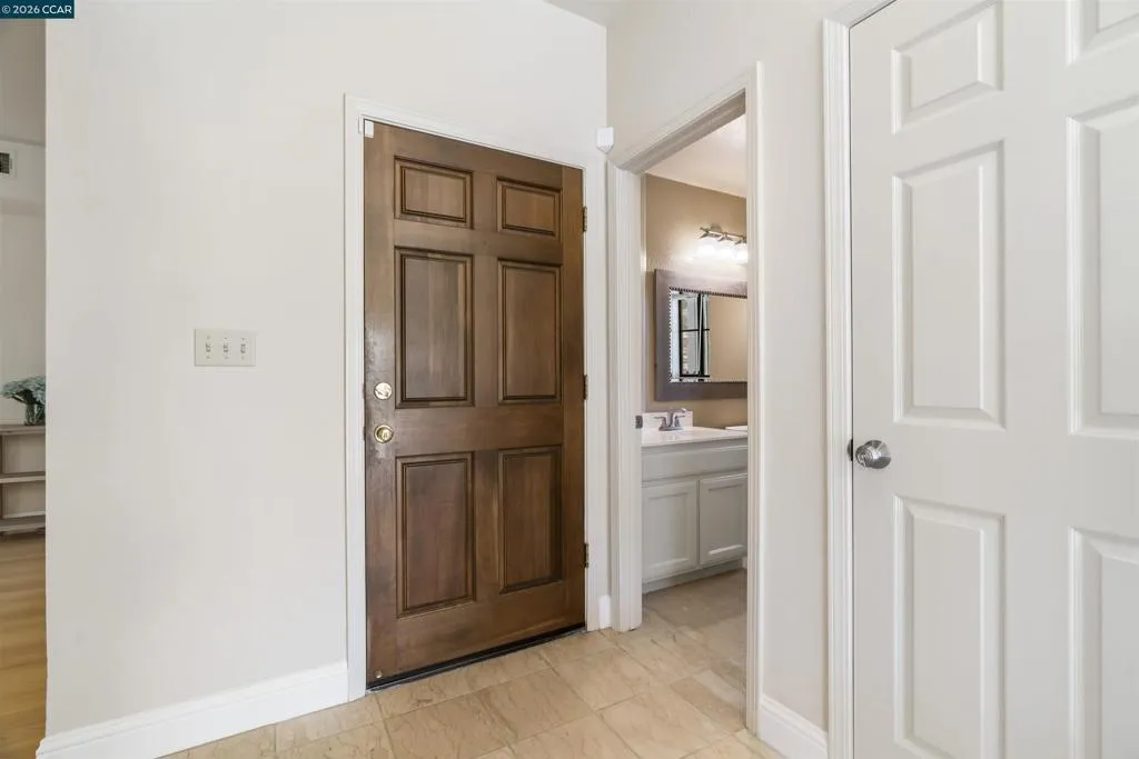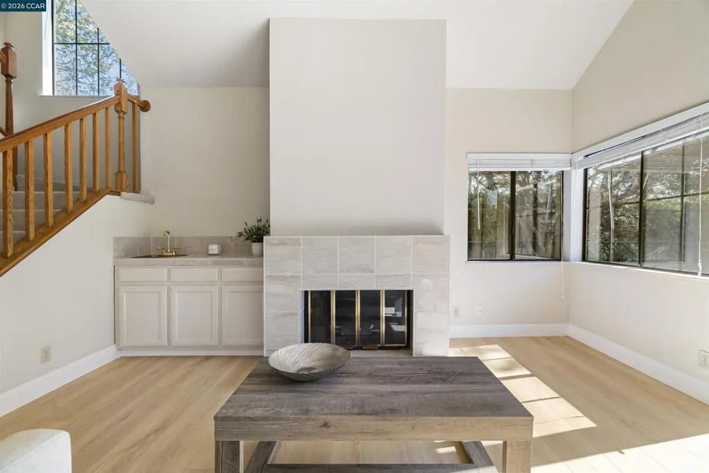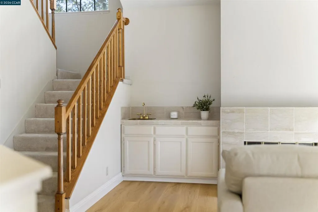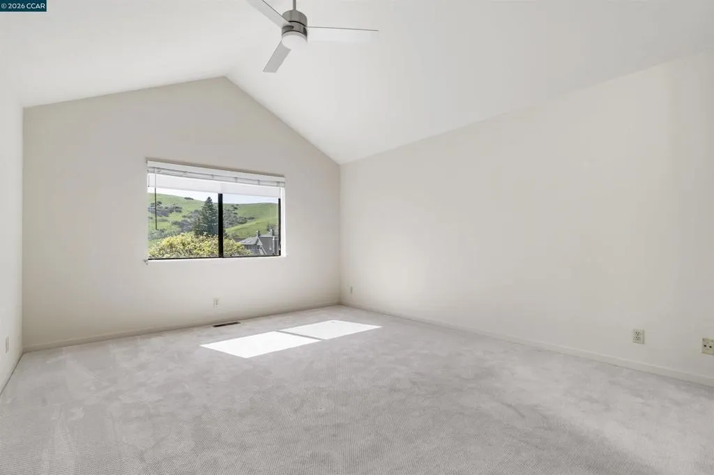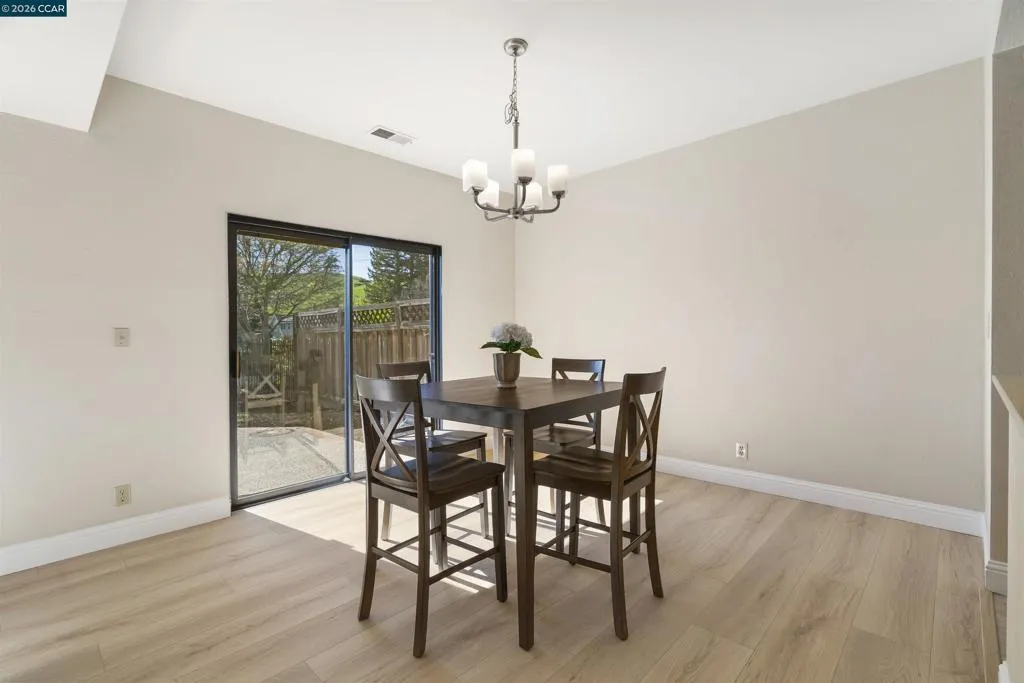 Fabulous Blackhawk Townhome with Gorgeous Views!! Beautiful Eagle Nest Townhome with 1,976 sq.ft. apx. on .11 ac. lot apx. inside the gates of Blackhawk. Charming Entrance! Marble tile foyer. 1st floor powder bathroom. Inviting kitchen with GE Range and recent stylish painted cabinetry, hardware and new Whirlpool stainless refrigerator. The adjoining family room conveniently located next to the kitchen is an ideal entertainment area or workspace area. New stylish laminate flooring in the family room, living room and dining area. The beautiful living room and dining area have picturesque views of the surrounding hills and access to the charming rear yard and outdoor patio. Well-designed floorplan with three bedrooms, two full baths and a convenient laundry room on the upper level. Primary Suite with volume ceilings, ceiling fan/light, and picturesque views. The adjoining primary bathroom with new elegant luxury vinyl flooring, two vanities, separate tub and shower and a walk-in closet. The upstairs secondary bedrooms share a lovely jack and jill bathroom. Gorgeous new laminate flooring in the Family Room and Living Room and Dining Room. New Carpet in 2025. Neutral Paint throughout. Fabulous place to call home for great indoor-outdoor living and views!