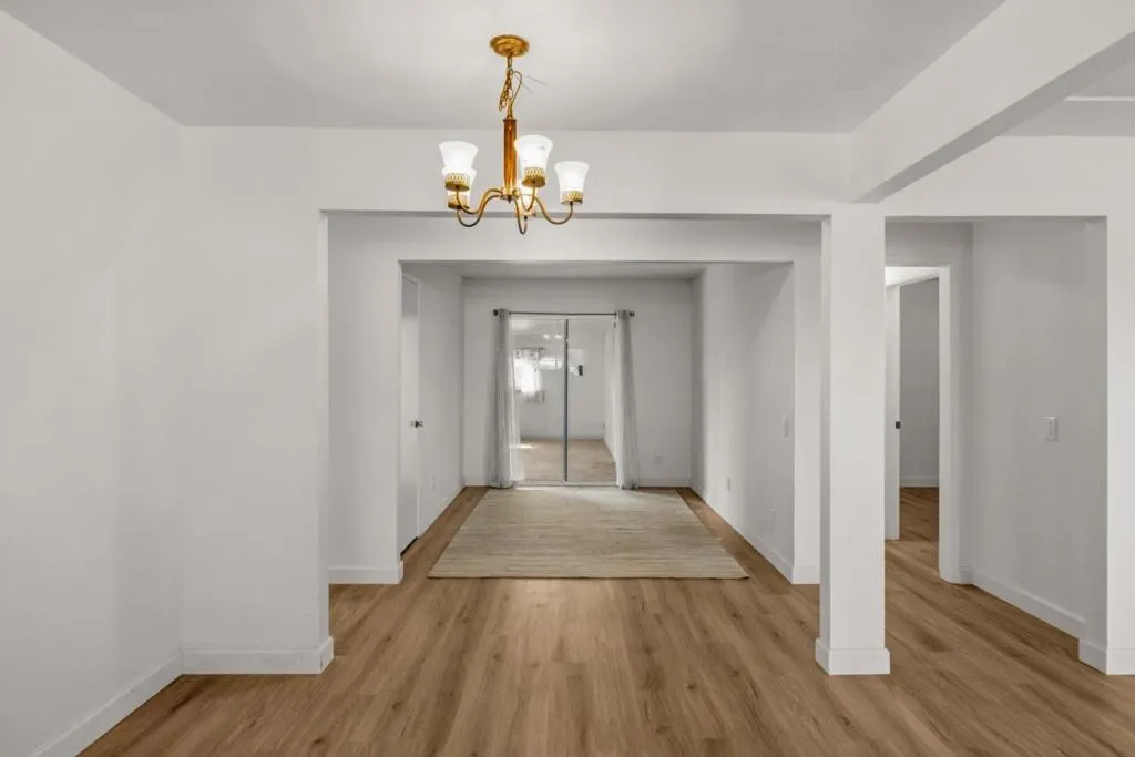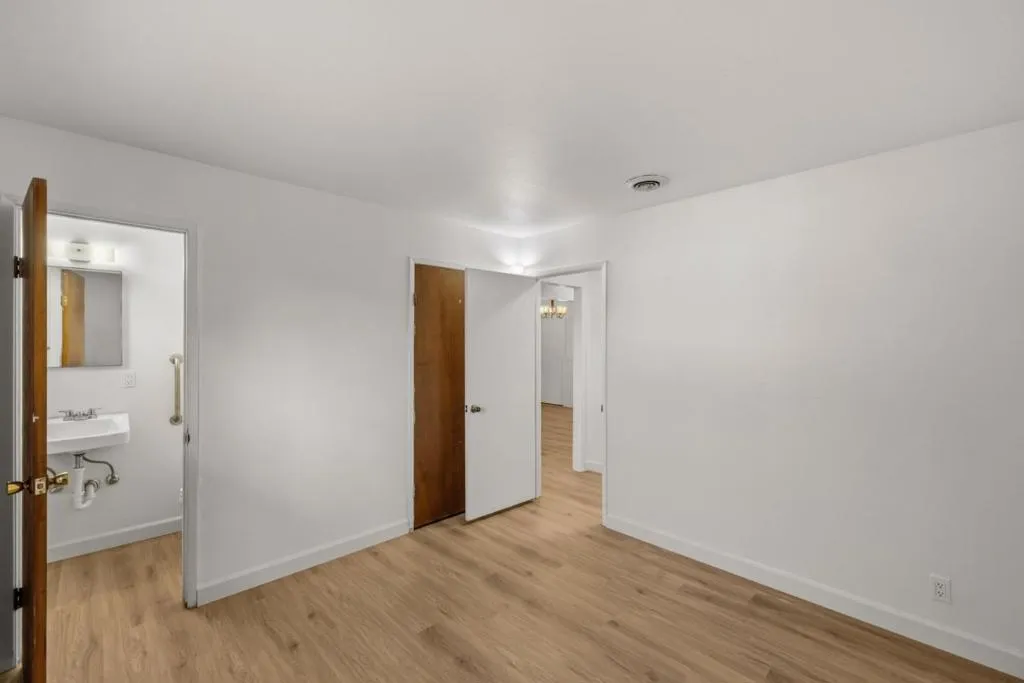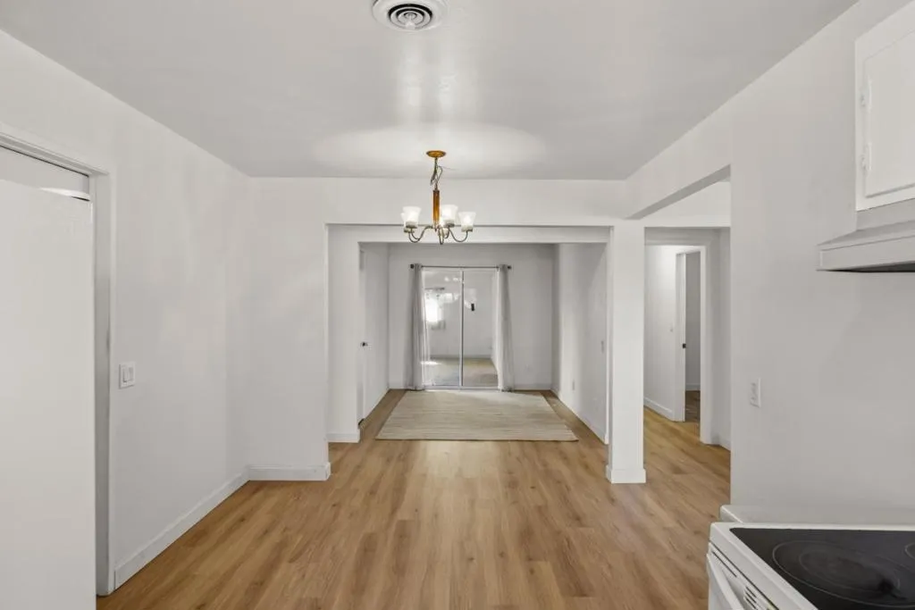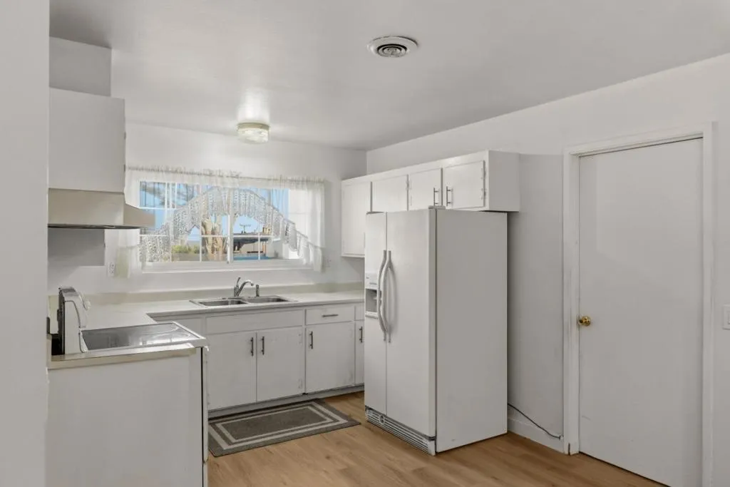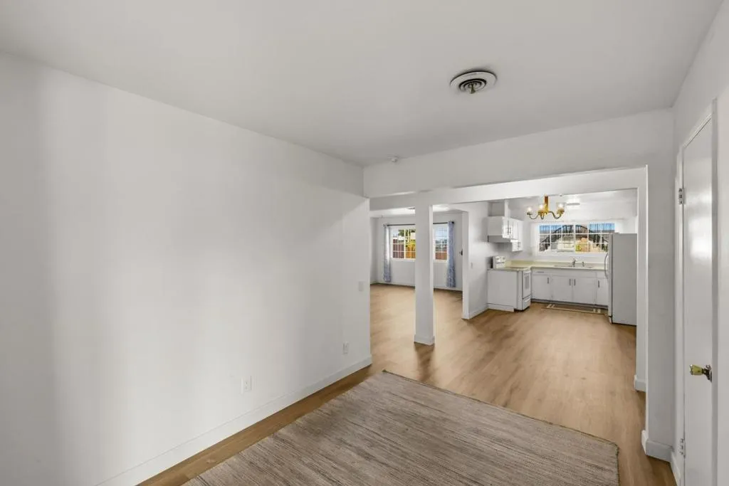 Located in Marina, this 3-bedroom, 2- full bath, 1 half bath home offers 1,482 square feet of living space. The kitchen includes an electric cooktop, electric oven, and refrigerator, complemented by a breakfast nook for casual dining. Flooring features a mix of newly installed carpet and laminate throughout the home. The living room has a wood-burning fireplace, adding a cozy focal point. Bathrooms include one with marble finishes, a shower over tub, and a stall shower in the other. Laundry facilities with 110V and 220V electric hookups are conveniently located in the garage area. Heating is provided by central forced air fueled by gas, and there is no cooling system installed. This home is part of the Monterey Peninsula Unified elementary school district.