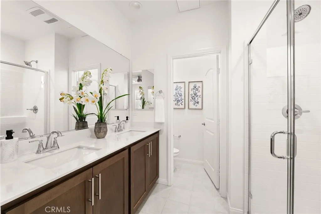 This thoughtfully upgraded home blends comfort, functionality, and modern style in all the right ways. The home is completely detached and enjoy a private backyard space beautifully landscaped. Only the garages are attached. The home features a highly desirable layout with a primary bedroom on the main floor, the home offers both privacy and flexibility for multi-generational living or guest accommodations. Step inside to a bright, inviting interior enhanced by recessed lighting throughout and ceiling fans that create a comfortable and airy atmosphere. The spacious living area flows seamlessly into the upgraded kitchen, complete with polished granite countertops and a sleek touchless faucet—perfect for both everyday living and entertaining. Upstairs, an additional primary suite provides generous space, dual closets, and the same modern comforts found throughout the home. Storage is abundant with walk-in closets in most bedrooms, while all bathrooms are equipped with double vanities to support busy households. With stylish roller shades on all windows and thoughtful upgrades at every turn, this home is move-in ready and designed for modern living.