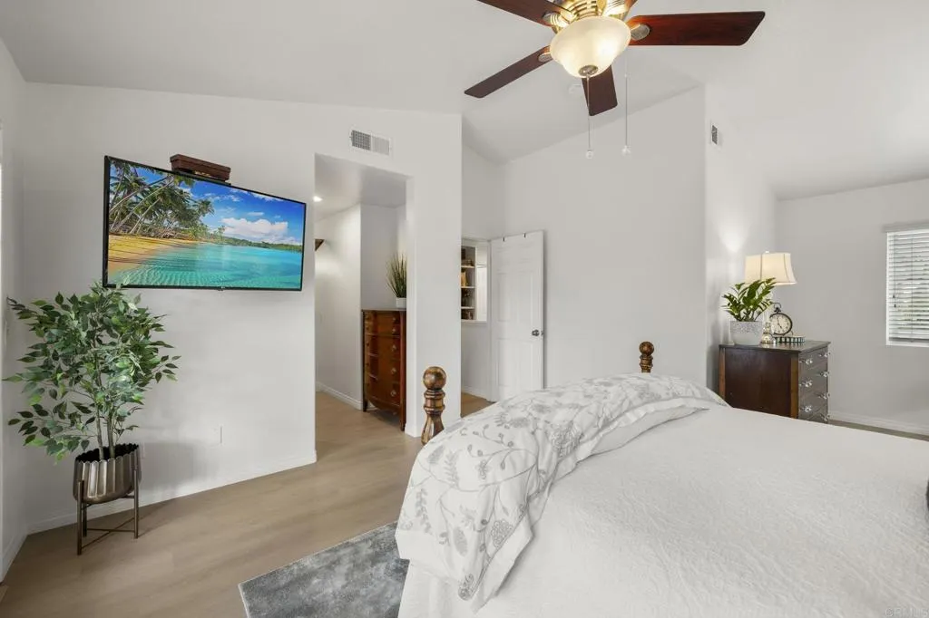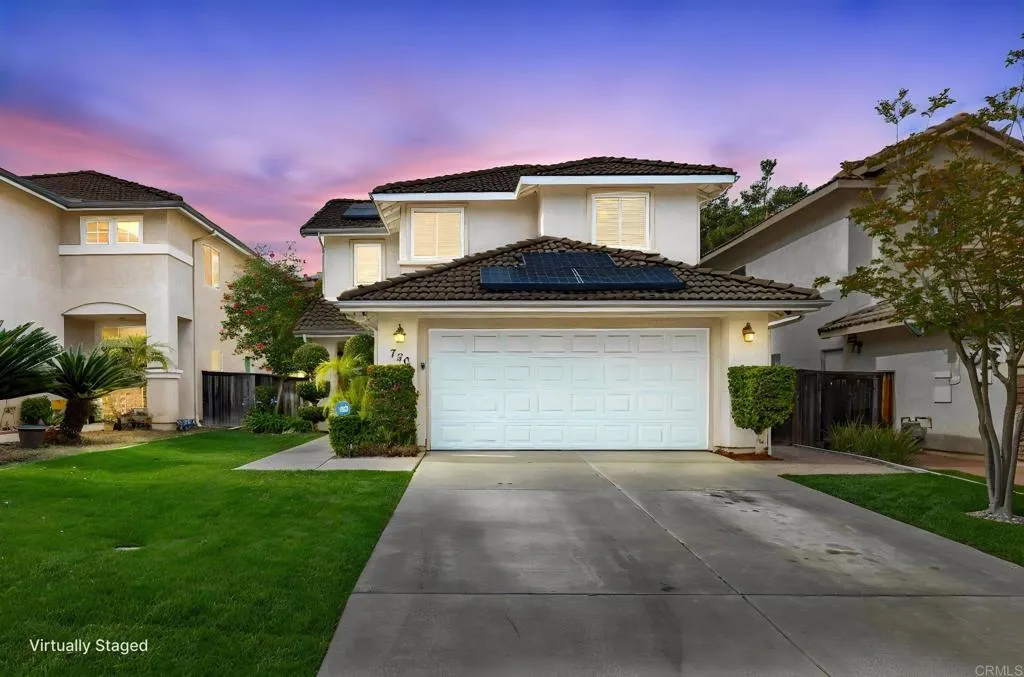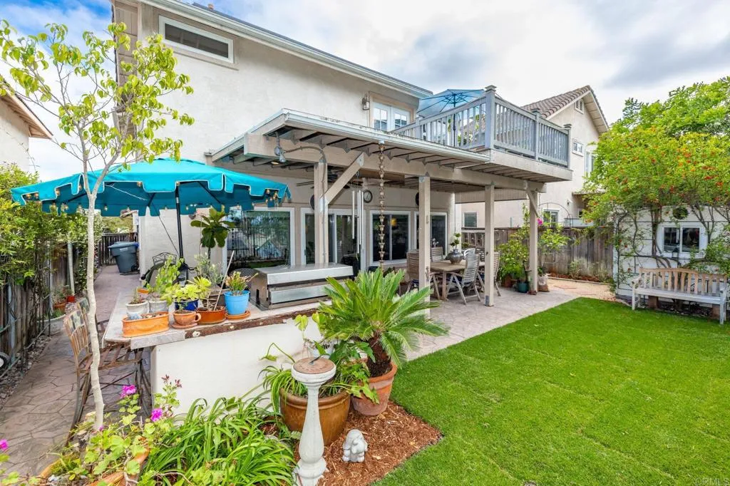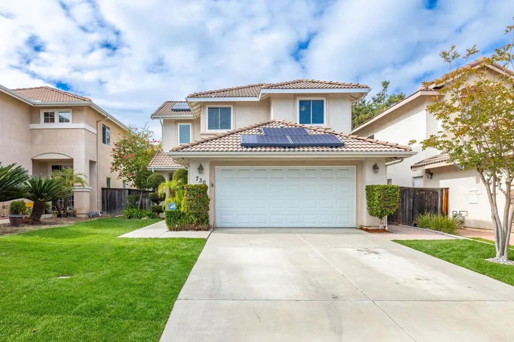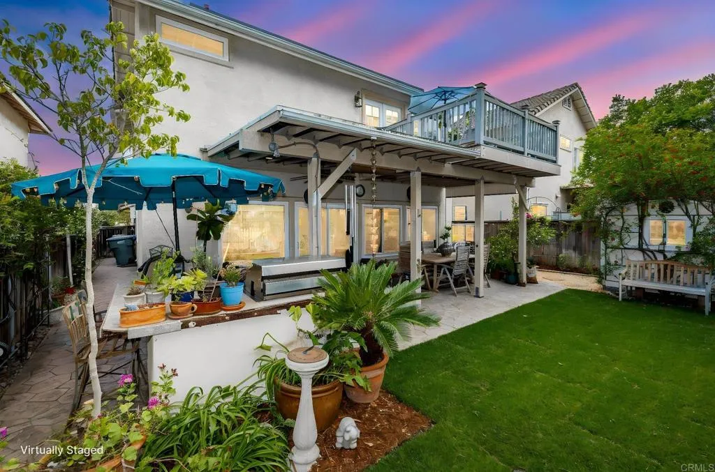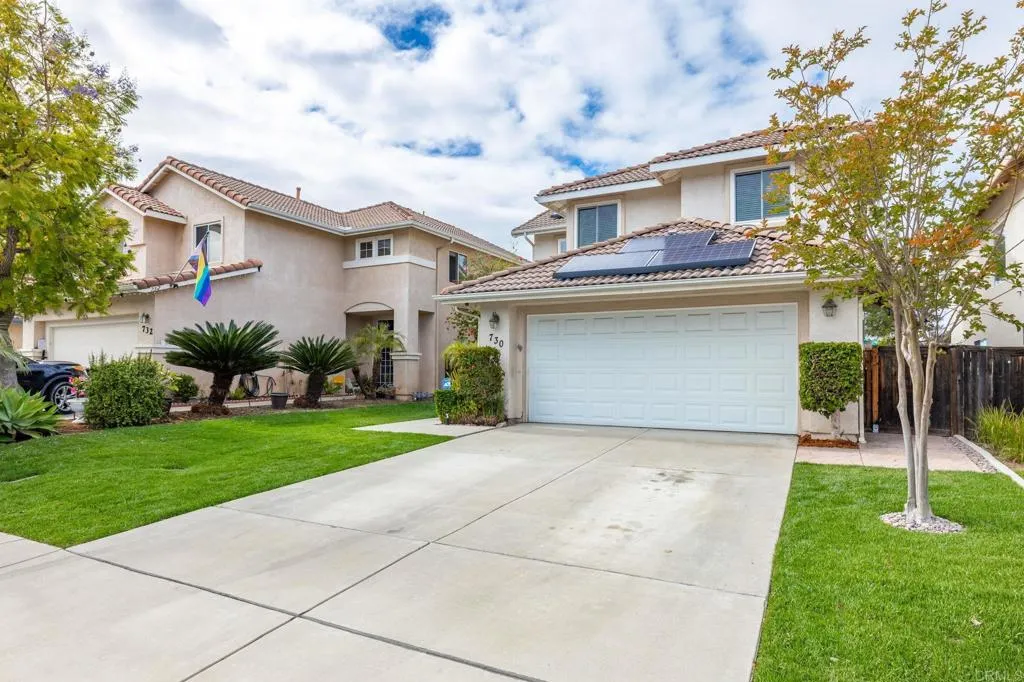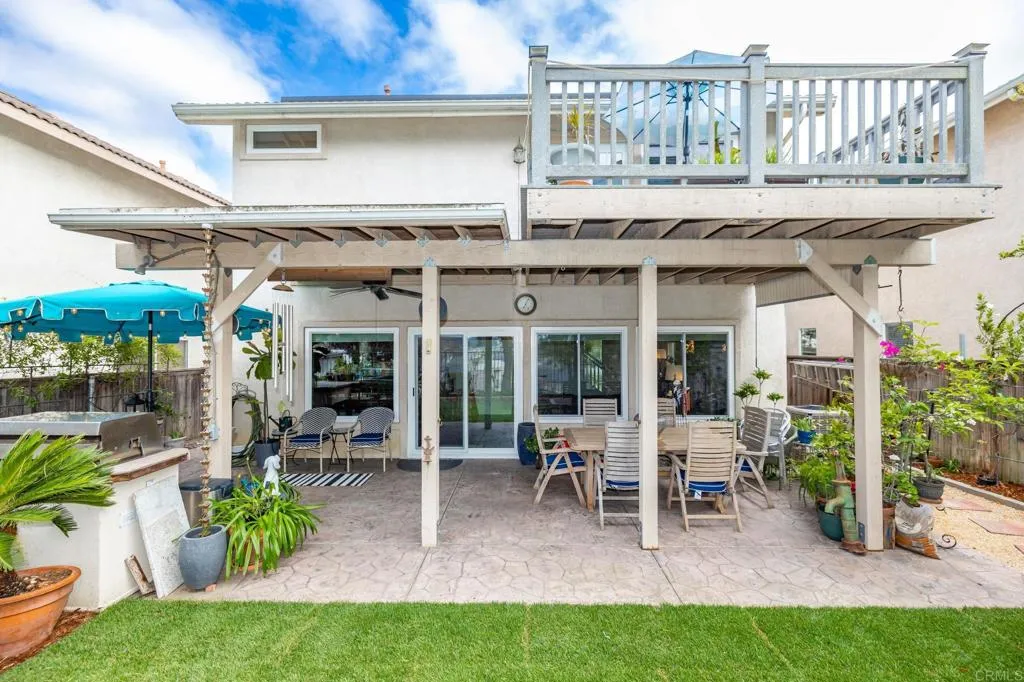 Tucked away on a quiet cul-de-sac in Discovery Hills, this beautifully updated 3-bedroom, 2.5-bath home blends modern upgrades with comfortable, everyday living. Step inside to find warm hardwood flooring on the main level and an inviting, light-filled living space that flows seamlessly into the kitchen and dining area. The kitchen features a versatile movable island, ideal for both daily living and entertaining. Upstairs, enjoy durable LVP flooring and newly installed stair carpet (2026), adding a fresh, cohesive feel. The spacious primary suite is a true retreat, complete with a Trex deck—perfect for morning coffee or evening unwinding—along with a bonus flex space ideal for a home office, gym, or lounge. Custom closets provide thoughtful organization, while the en-suite bath enhances everyday comfort. Two additional bedrooms offer flexibility for guests or family. Major upgrades include newer dual-pane windows throughout (2025) and a newer water heater (2026). The home is equipped with solar (PPA), offering energy efficiency and potential utility savings. The backyard features newly installed grass (2026), along with a stamped concrete patio and built-in barbecue—perfect for relaxing or entertaining. Located in desirable San Marcos community, close to parks, shopping, dining, and convenient freeway access. Also in very close proximity to Cal State San Marcos, and just 20 minutes from the beach! A move-in-ready home with thoughtful updates and inviting spaces throughout.