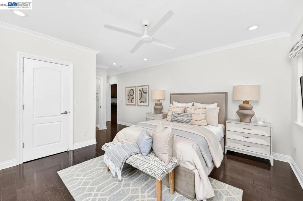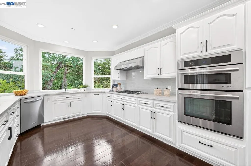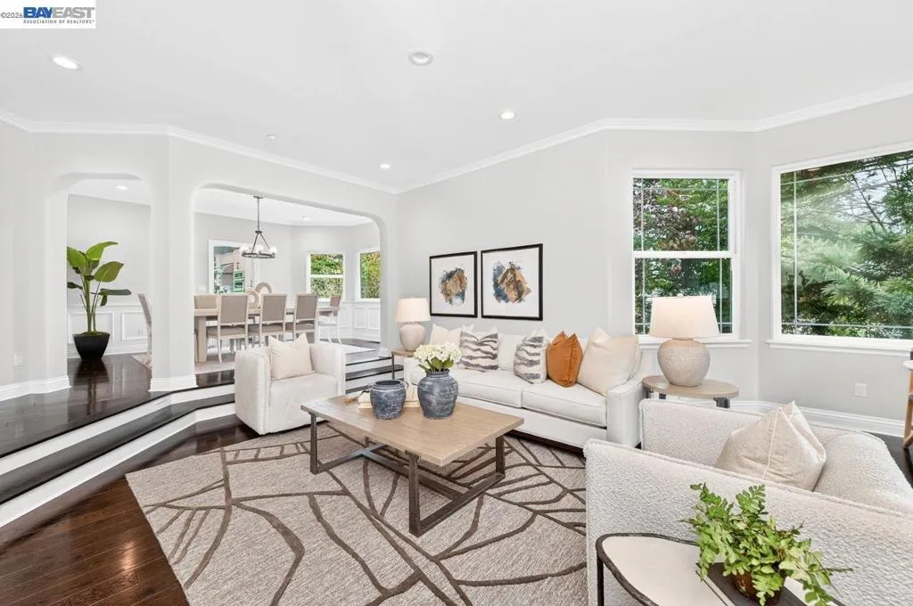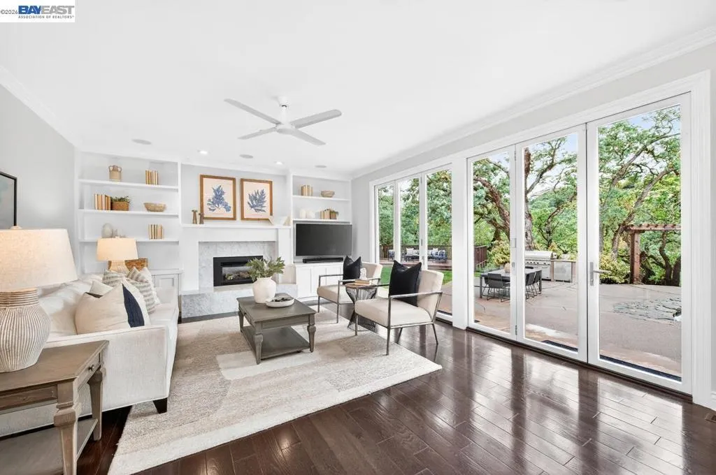 Perched among Kottinger Ranch’s iconic oak-studded hills, this custom home captures sweeping views and effortless California living at every turn. Wide plank hardwood floors, a sweeping iron staircase and recessed lighting flow throughout. The chef’s kitchen features soft honed Carrara marble counters, breakfast bar and sun-filled dining area, opening to a warm and inviting family room with gas fireplace and wine bar. Expansive retractable glass wall doors create a seamless indoor-outdoor experience, extending living space to the backyard—ideal for entertaining. A main-level bedroom and full bath provide ideal guest or multigenerational living. Upstairs, the expansive primary suite offers a fireplace insert, private balcony, and serene views. A spacious bonus room (optional 6th bedroom) and upstairs laundry add flexibility and convenience. Fresh exterior paint and lush landscaping enhance curb appeal. The backyard is a true retreat with a lagoon-style pool, outdoor BBQ island, generous patio space, and direct access to scenic hiking trails among heritage oaks. Additional highlights include a three-car finished garage with epoxy floors and built-in cabinetry. Enjoy a prime location with the ability to walk to historic downtown Pleasanton and nearby Vintage Hills school, with quick access to wineries, hiking trails, parks, and highways. Community amenities include pool, park, tennis, and pickleball.