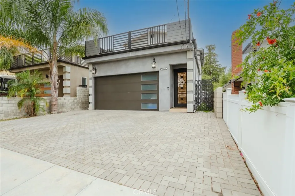 Welcome to 10247 Floralita Avenue an upscale, modern home built in 2018, thoughtfully designed with style and functionality in mind. Offering 1945 sq ft of living space, this 3 bedroom, 2.5 bath residence features a well designed floor plan and a 2 car garage with a beautifully crafted door. Enter through the custom entry and experience impressive flooring, detailed baseboard moldings, and soaring ceilings enhanced with recessed lighting. The kitchen, highlighted by a tray ceiling, showcases sleek countertops and top of the line stainless steel appliances. It opens seamlessly to the dining area and family room, creating an ideal space for everyday living and entertaining, with direct access to the backyard. The outdoor space is finished with pavers, offering a clean, low maintenance setting with a cozy patio area, perfect for relaxing or hosting gatherings. Upstairs, the home offers spacious, well lit bedrooms with ample closet space and beautifully finished bathrooms featuring thoughtful design details throughout. The primary suite stands out with its walk in closet, ensuite bath, and a large wraparound balcony that extends to the additional bedrooms, creating a unique and inviting indoor outdoor feel. A move in ready home that combines modern design, comfort, and quality craftsmanship.