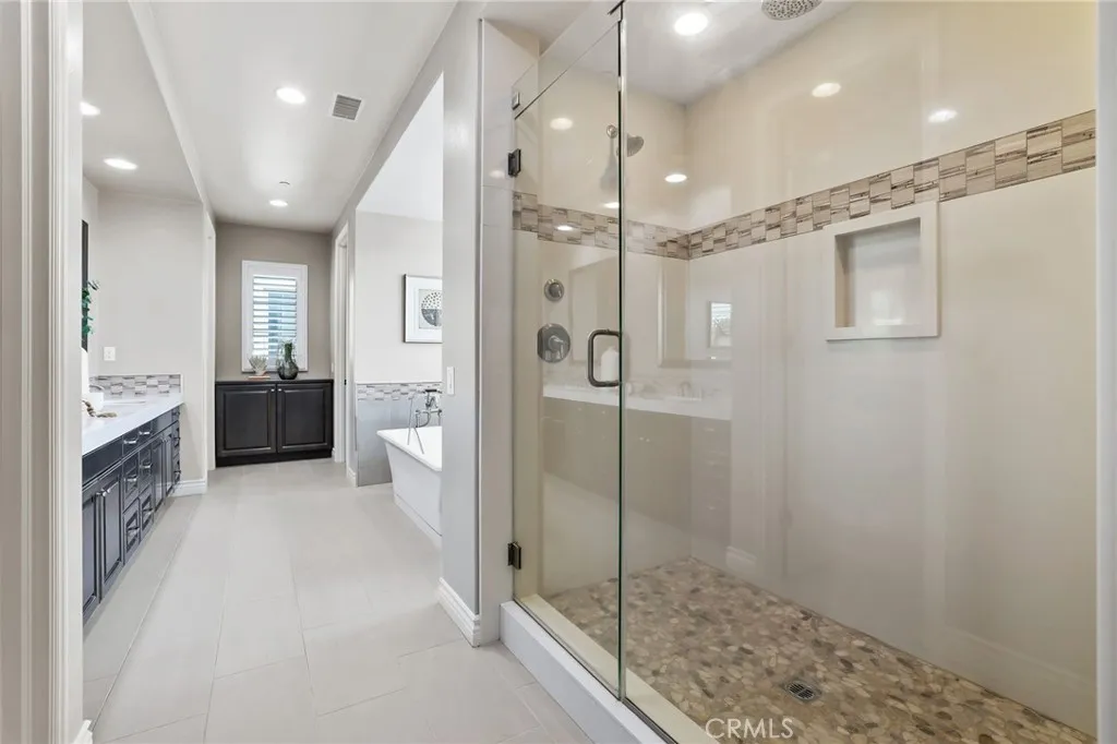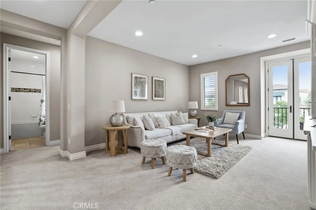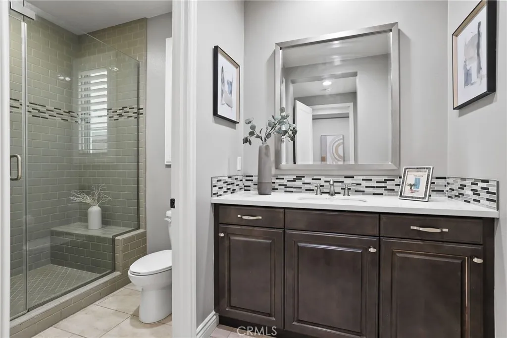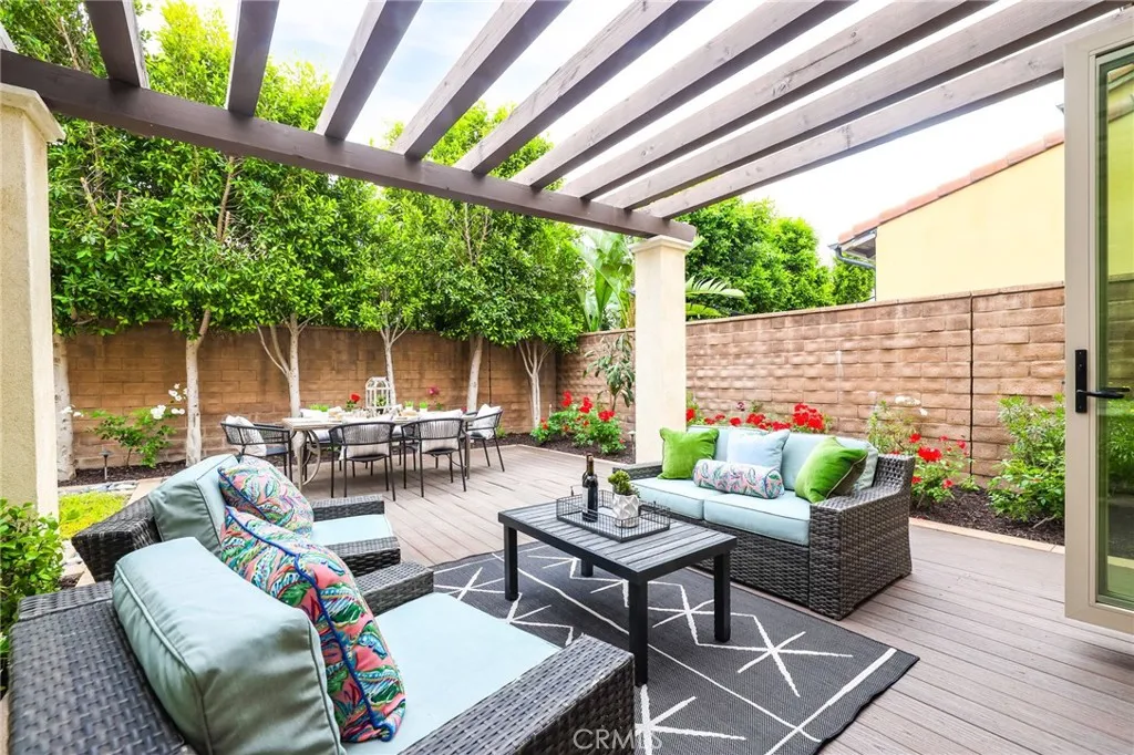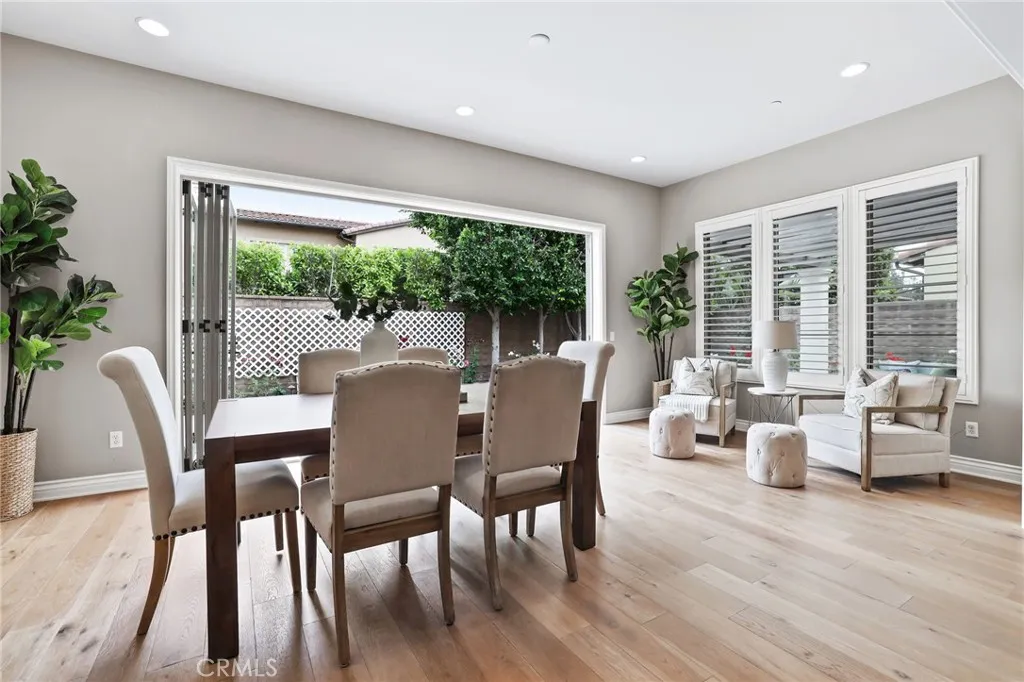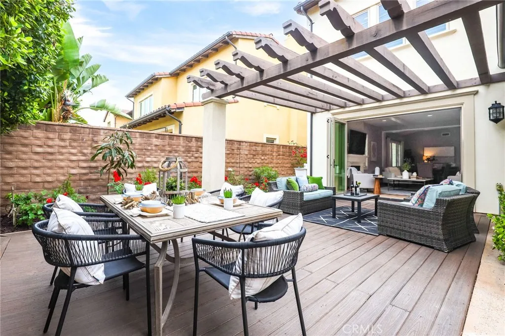 Located in the prestigious guard-gated community of The Groves at Orchard Hills, this stunning Modern Mediterranean residence offers 4 ensuite bedrooms, including a highly desirable main-level guest suite, plus an upstairs loft across approximately 4,191 square feet of thoughtfully designed living space. Enter through the solid wood front door to rich hardwood flooring and an open-concept great room showcasing soaring ceilings and elegant wood beam details. The spacious family room flows seamlessly into the dining area and gourmet kitchen, appointed with upgraded cabinetry, quartz countertops, oversized center island accented by designer RH pendant lights, walk-in pantry, stainless steel appliances, and a separate prep kitchen that provides additional cabinetry, counter space, secondary sink, and enhanced functionality for entertaining, everyday cooking, or keeping the main kitchen beautifully organized. The downstairs guest bedroom with private ensuite bath is ideal for multigenerational living, overnight guests, or a private home office. Upstairs, a generous loft provides flexible living space ideal for a media room, office, or play area. The luxurious primary suite features a spa-inspired bath and dual walk-in closets with custom built-in shelving. Two additional secondary bedrooms are generously sized, each with their own private full baths. Designed for exceptional indoor-outdoor living, the backyard offers a spacious covered patio with pergola, perfect for entertaining or everyday relaxation, with stylish seating and dining areas framed by mature landscaping for enhanced privacy. Additional highlights include energy-efficient solar panels, water softening system, epoxy-coated garage floors, and built-in garage cabinetry providing excellent storage and organization. Residents enjoy resort-style Orchard Hills amenities including pools, spas, clubhouse, tennis and basketball courts, tot lot, picnic areas, and scenic greenbelts. Ideally located within walking distance to top-ranked elementary & middle schools and shopping centers.