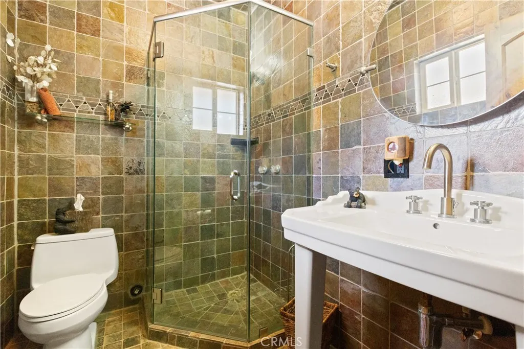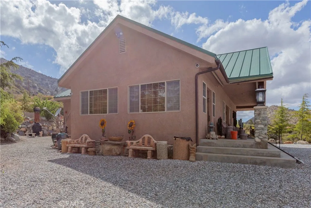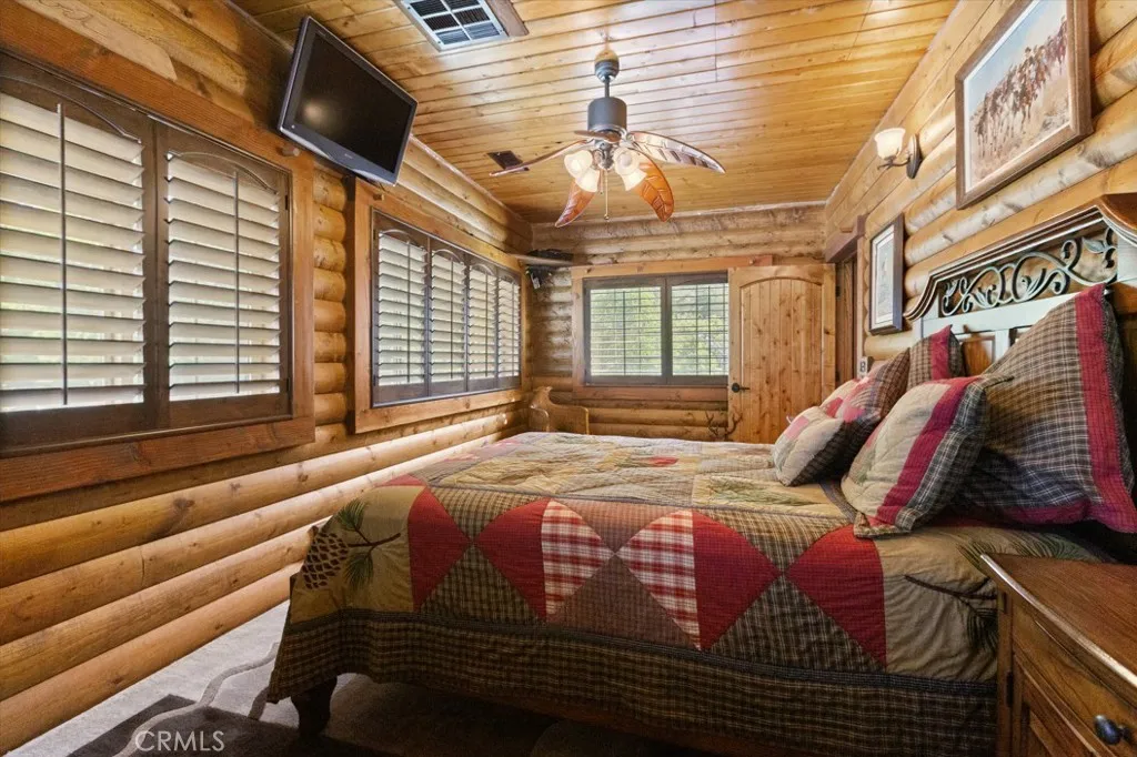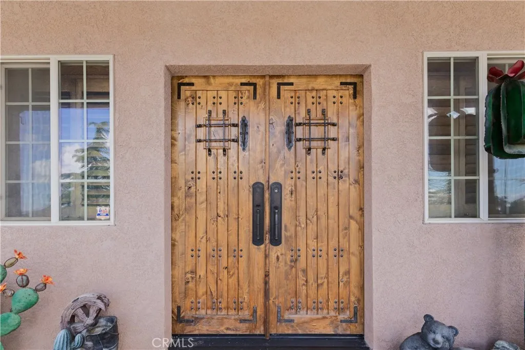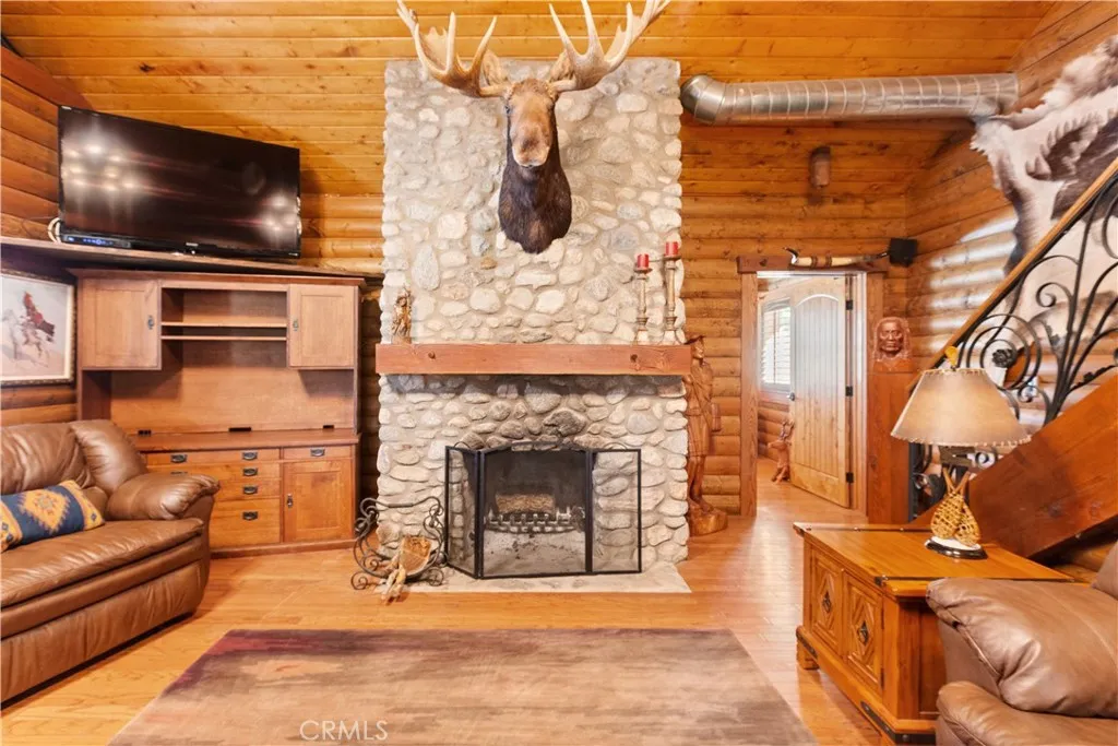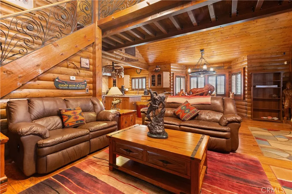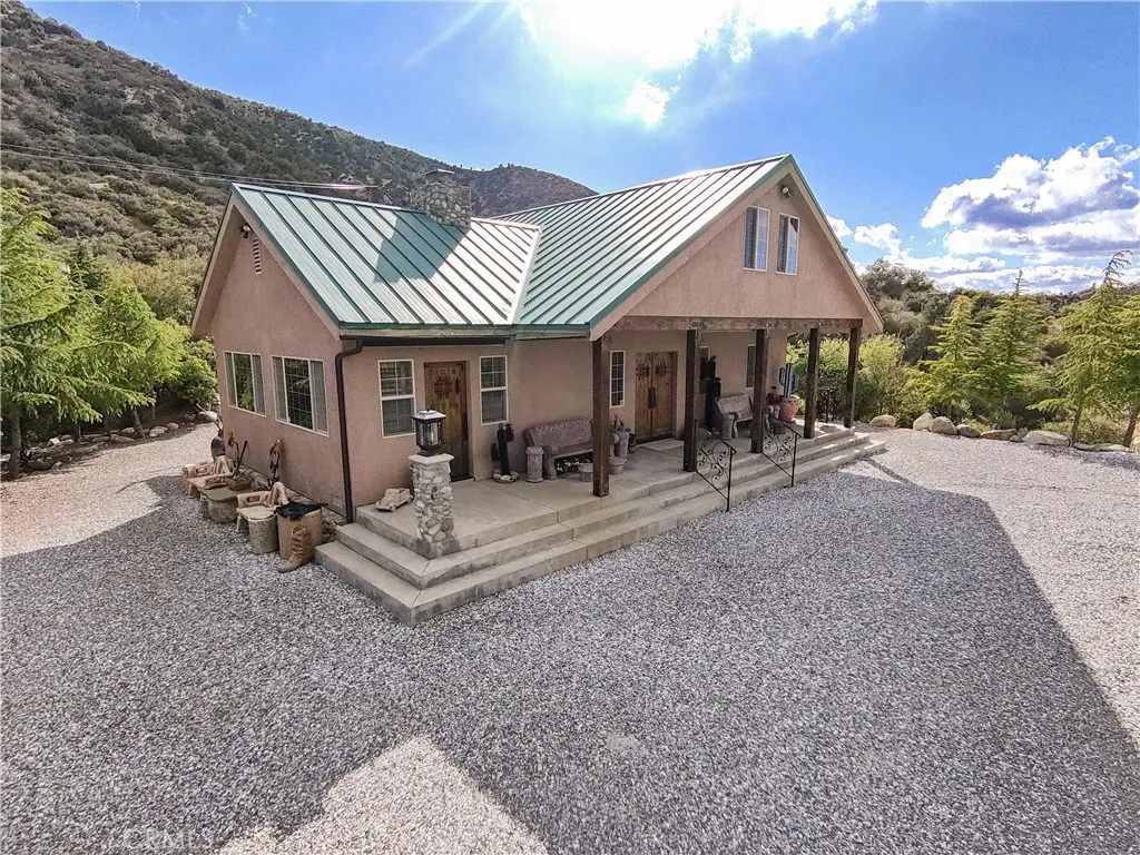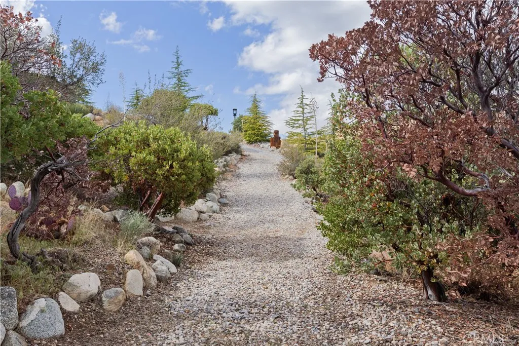BACK ON THE MARKET! Discover a truly awe-inspiring mountain retreat meticulously crafted by its original owners. This exceptional property, perched near the peak of Desert Front Road in Wrightwood, offers breathtaking 360-degree views and an unparalleled mountain living experience. As you approach via Oak Valley Springs Rd, an impressive double swinging wrought iron fence welcomes you to this 2.4-acre haven. Step inside to find a luxurious log cabin-style interior spanning 1,458 sq ft, with an additional upstairs loft for extra sleeping quarters. The gourmet kitchen is a chef's dream, featuring a commercial-style cooktop, eye-catching range hood, and complete stainless steel appliances. Luxurious whole-piece granite counters and backsplash add a touch of elegance. The primary suite includes an ensuite bathroom with a shower for ultimate convenience and privacy. The dramatic living room is highlighted by a floor-to-ceiling stone fireplace adorned with a massive moose head, creating a true mountain ambiance. A versatile downstairs den, perfect as an additional bedroom, opens to the front porch. Upstairs, discover two lofts overlooking the dining area and fireplace, offering a cozy seating area and a potential third bedroom. Step outside to find an outdoor oasis featuring multiple seating areas, a spa, barbecue, and custom outdoor wood-burning stove. Explore the property's rolling trails lined with gravel, mature trees, and indigenous foliage. Enjoy numerous trails and sitting areas throughout the property, including view points and charming outdoor décor. A standout feature is the railway and mine shaft emerging from the hillside, complete with skeleton-themed characters guarding the entrance. Multiple containers on-site cater to all your storage needs, ensuring ample space for your belongings and outdoor equipment. This home truly embodies the pride of its owners, with every detail thoughtfully designed to create an inspiring and comfortable living space. Whether you're seeking a permanent residence or a mountain getaway, this property offers an unmatched blend of luxury, nature, and adventure. Don't miss this once-in-a-lifetime opportunity to own a piece of Wrightwood paradise!