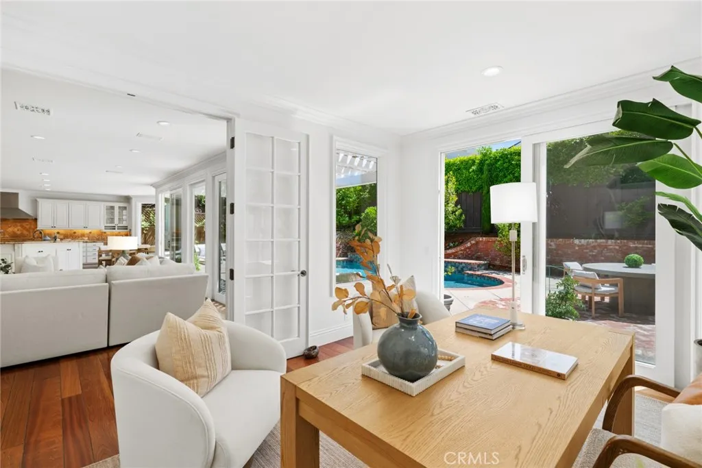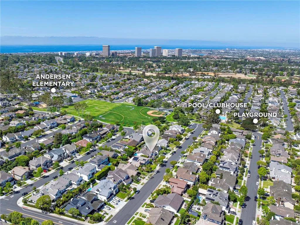 Experience premier coastal living in the heart of Newport Beach’s highly coveted Harbor View Homes, affectionately known as the "Port Streets." Perfectly situated just steps from the community playground, pool, and lush greenbelt, this custom-built residence boasts soaring two-story ceilings and is bathed in brilliant natural light throughout the day. A welcoming front patio invites you into the formal living and dining rooms, offering a wonderful vantage point for morning coffee and greeting neighbors. The heart of the home lies in the open-concept family room and thoughtfully appointed chef's kitchen, which features premium stainless-steel Wolf and Sub-Zero appliances. Two sets of elegant French doors provide a seamless transition to the expansive entertainer’s backyard, complete with a private pool, spa, built-in BBQ, and ample space for outdoor dining and play. Designed with flexibility in mind, the highly desirable floor plan features six spacious bedrooms—five upstairs and one downstairs—alongside a dedicated main-floor office. The luxurious upstairs primary retreat offers a comfortable seating area, a cozy stone fireplace, a massive walk-in closet, and a spa-like en-suite bath with a jetted tub, walk-in shower, and large dual vanity. Additionally, one of the upper bedrooms has been brilliantly reimagined as a versatile teen retreat or bonus room, complete with built-in cabinetry, a lounge area, and dedicated workspace. Zoned for the award-winning Andersen Elementary School, this exceptional property offers unmatched proximity to world-class beaches, upscale shopping at Fashion Island, and convenient access to the 73 freeway.